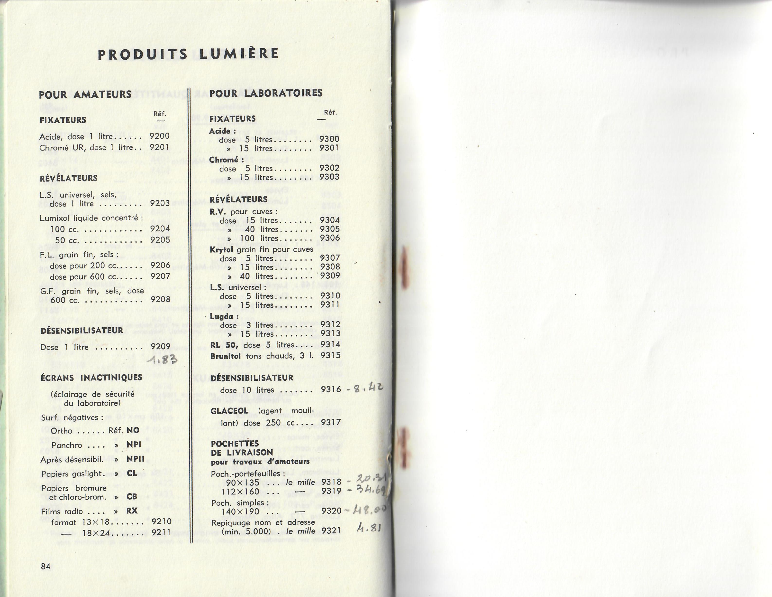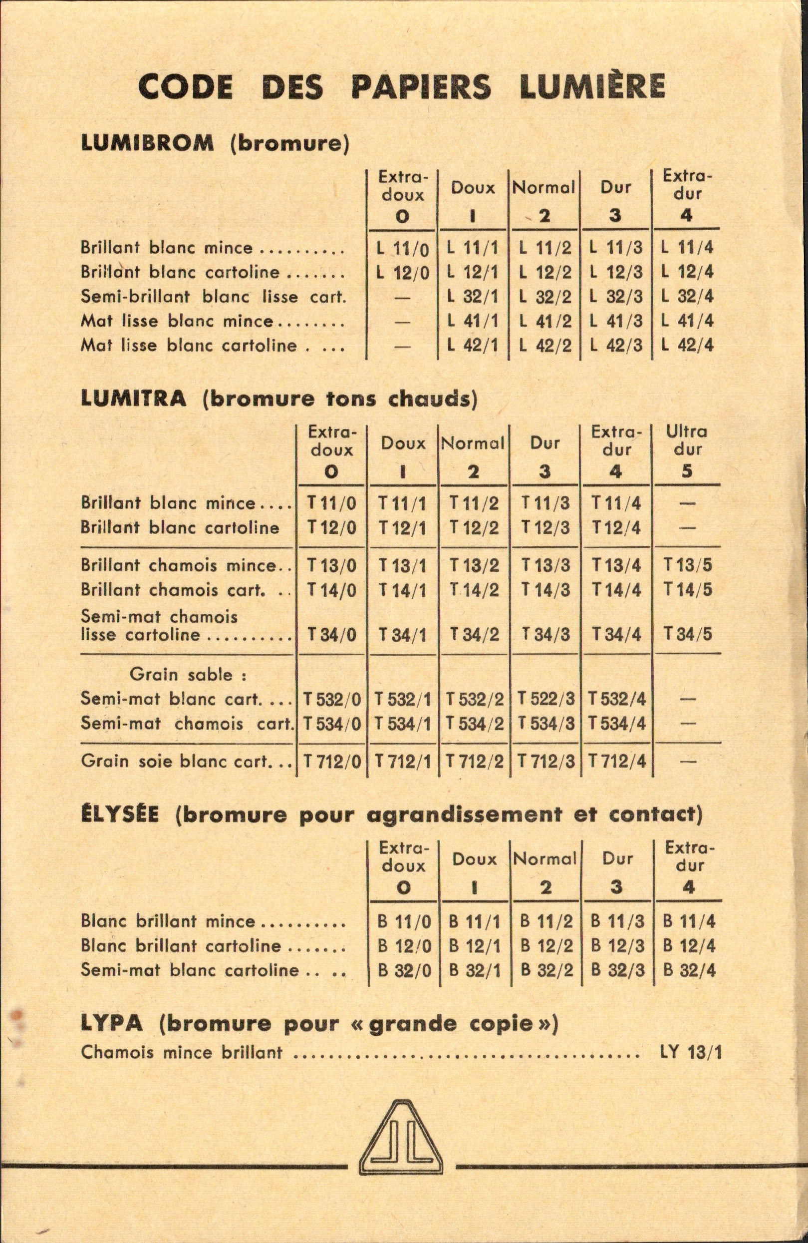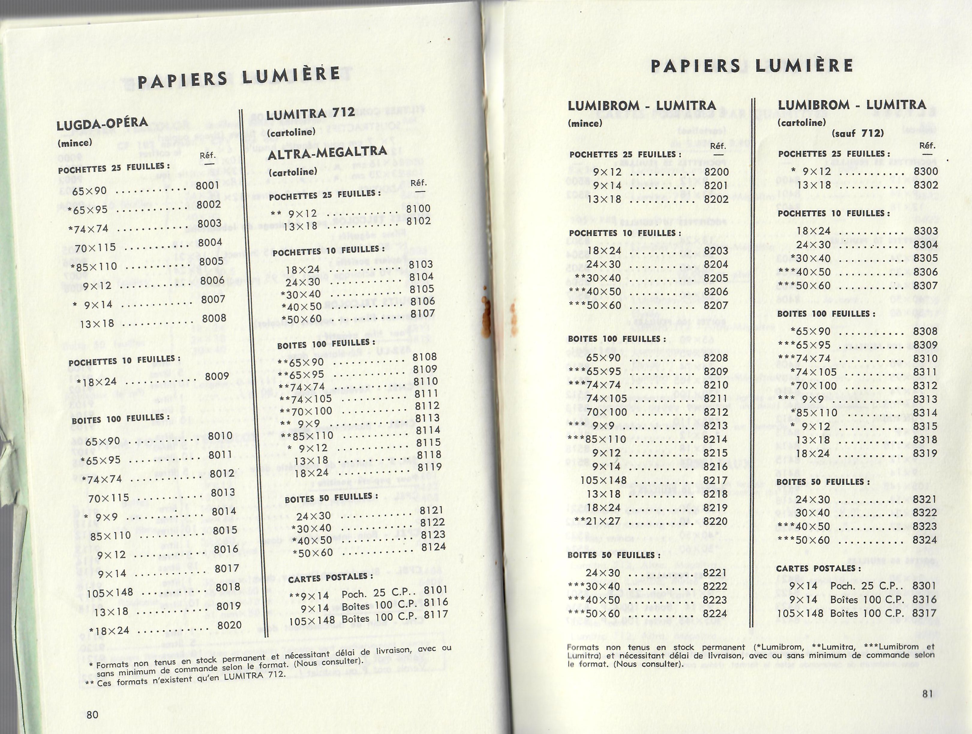 Code des papiers Lumière - décembre 1960
