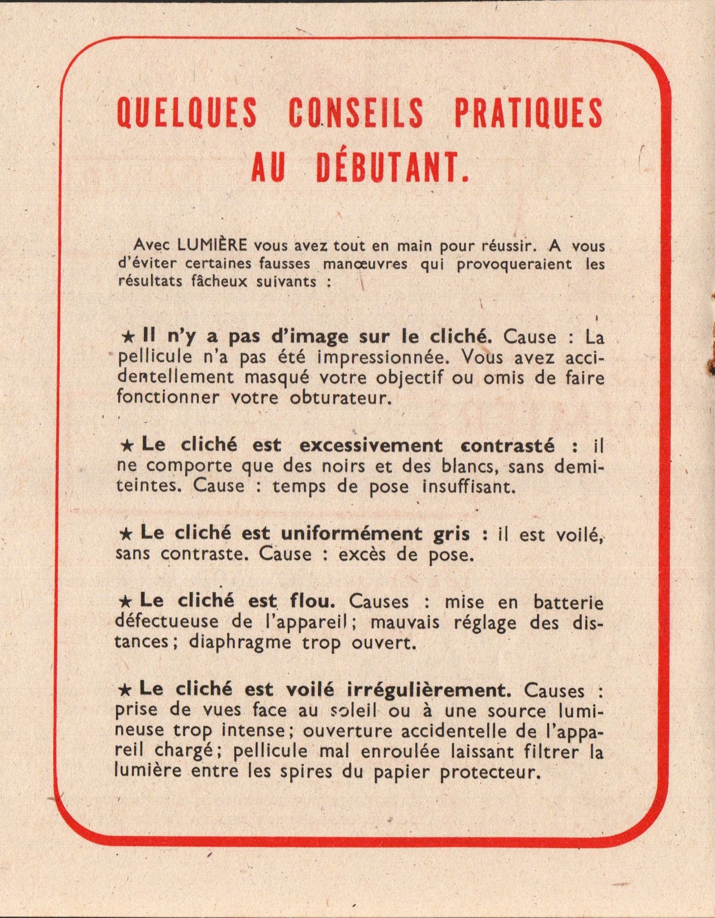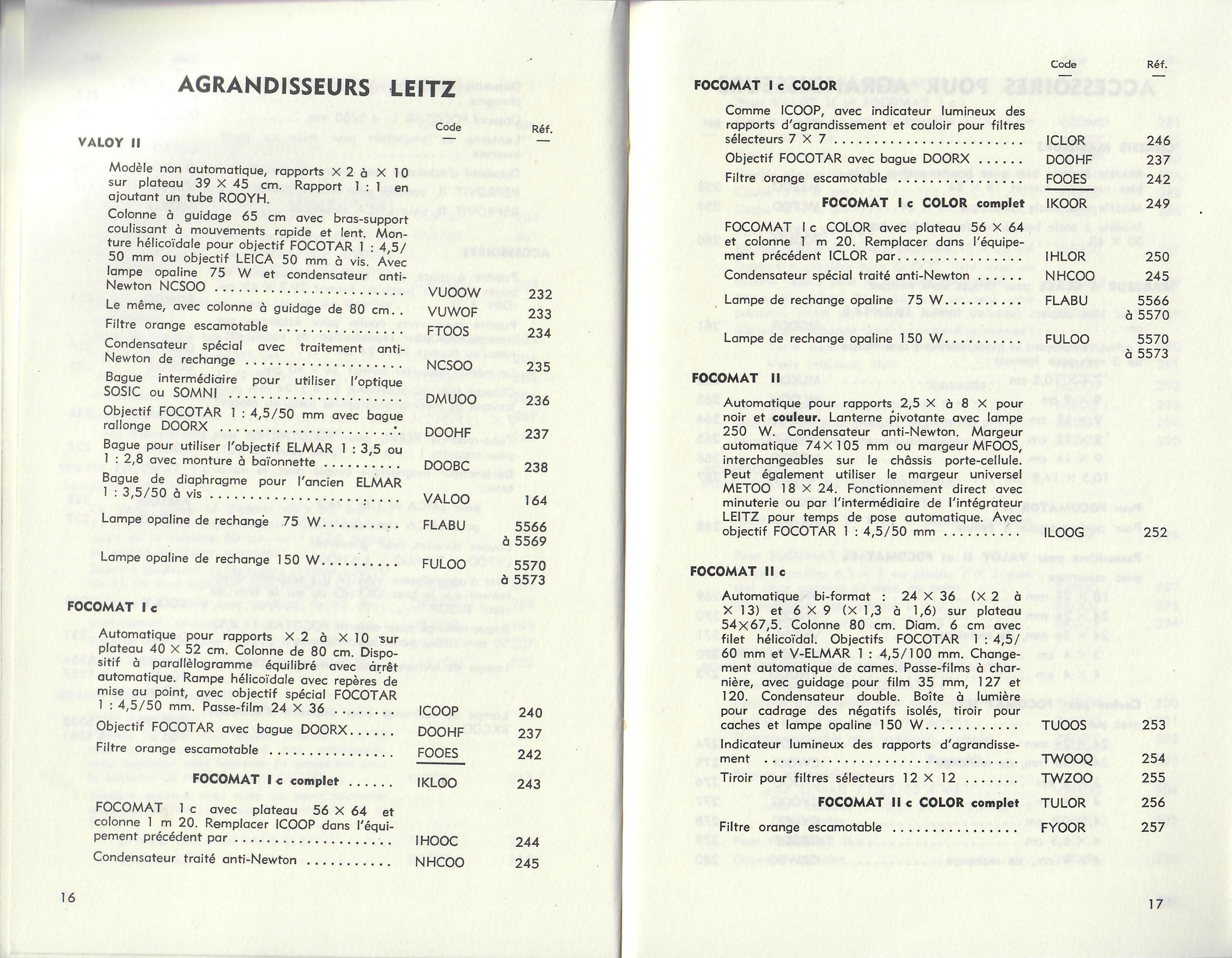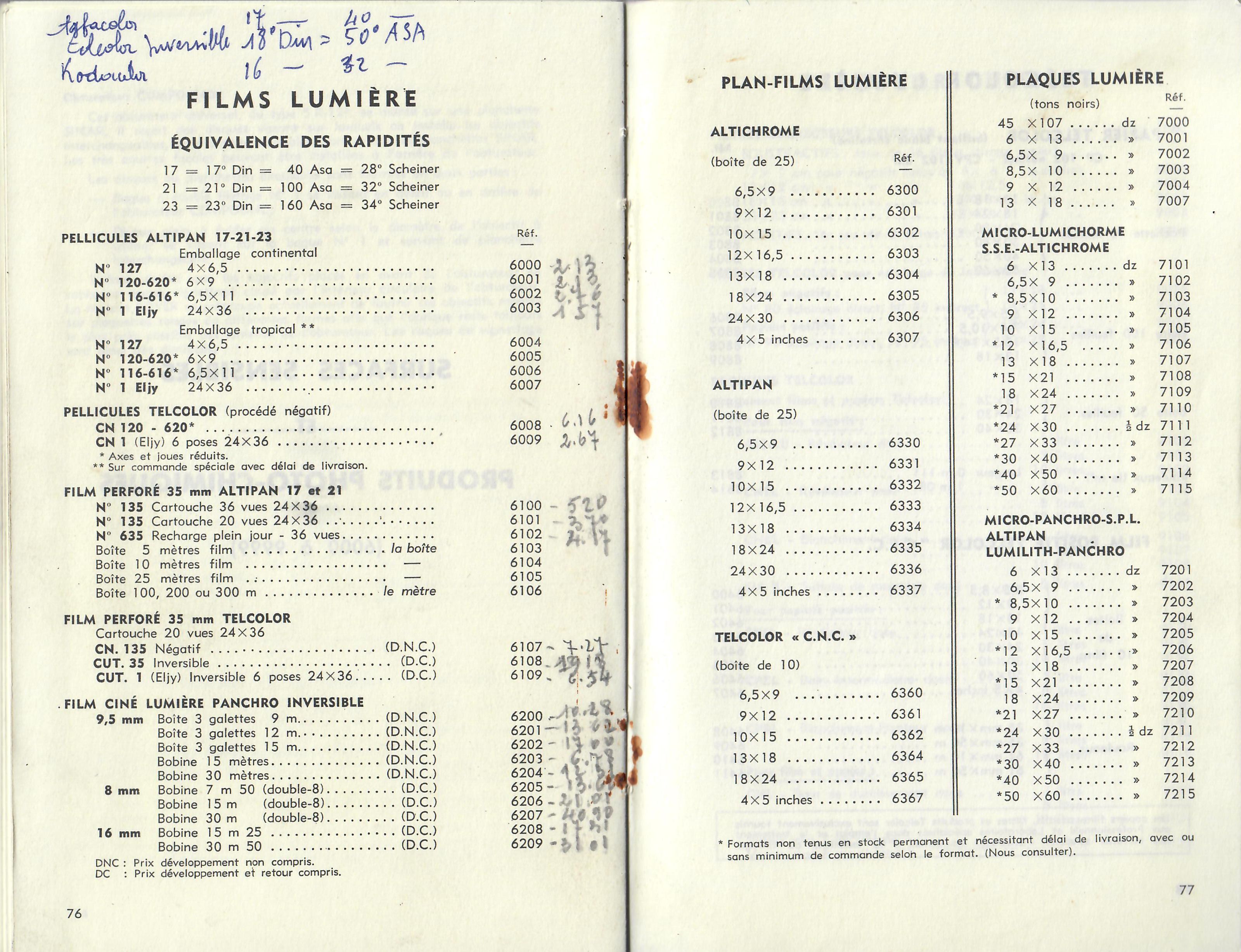 Code des papiers Lumière - décembre 1960