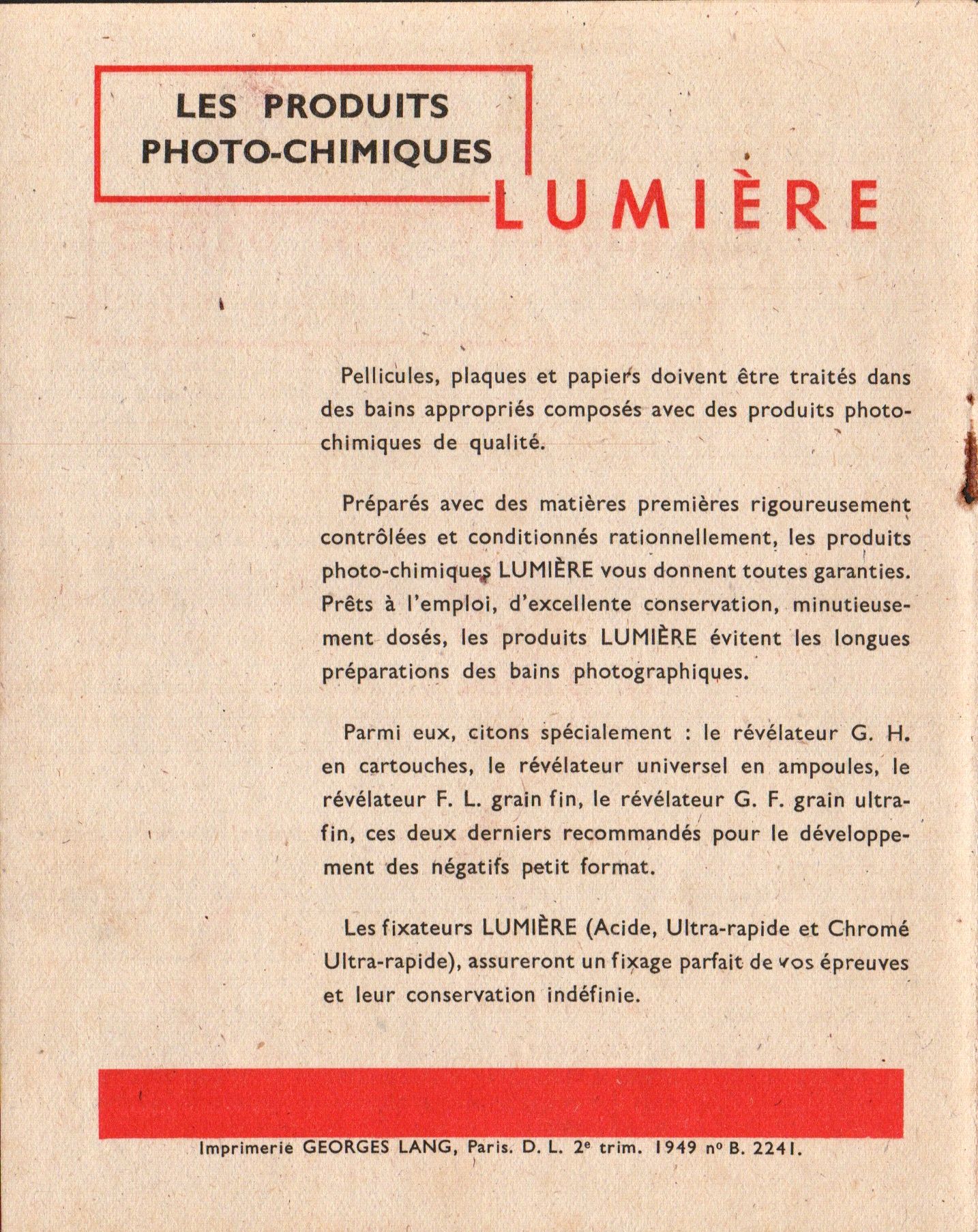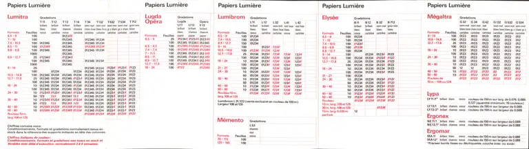 - Catalogue des Papiers photographiques