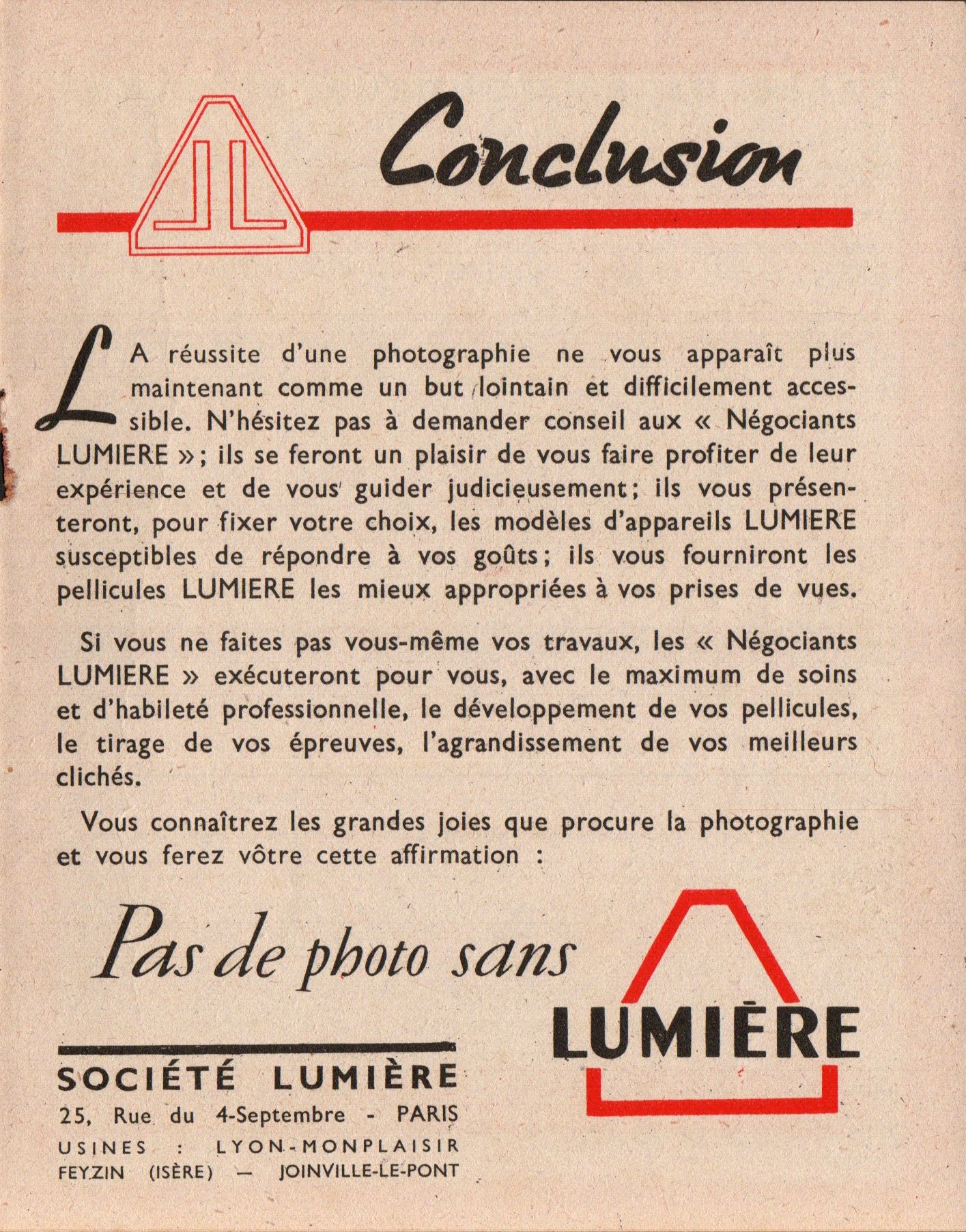 Union Photographique Industrielle - Établissements Lumière & Jougla réunis (1911-1928)
