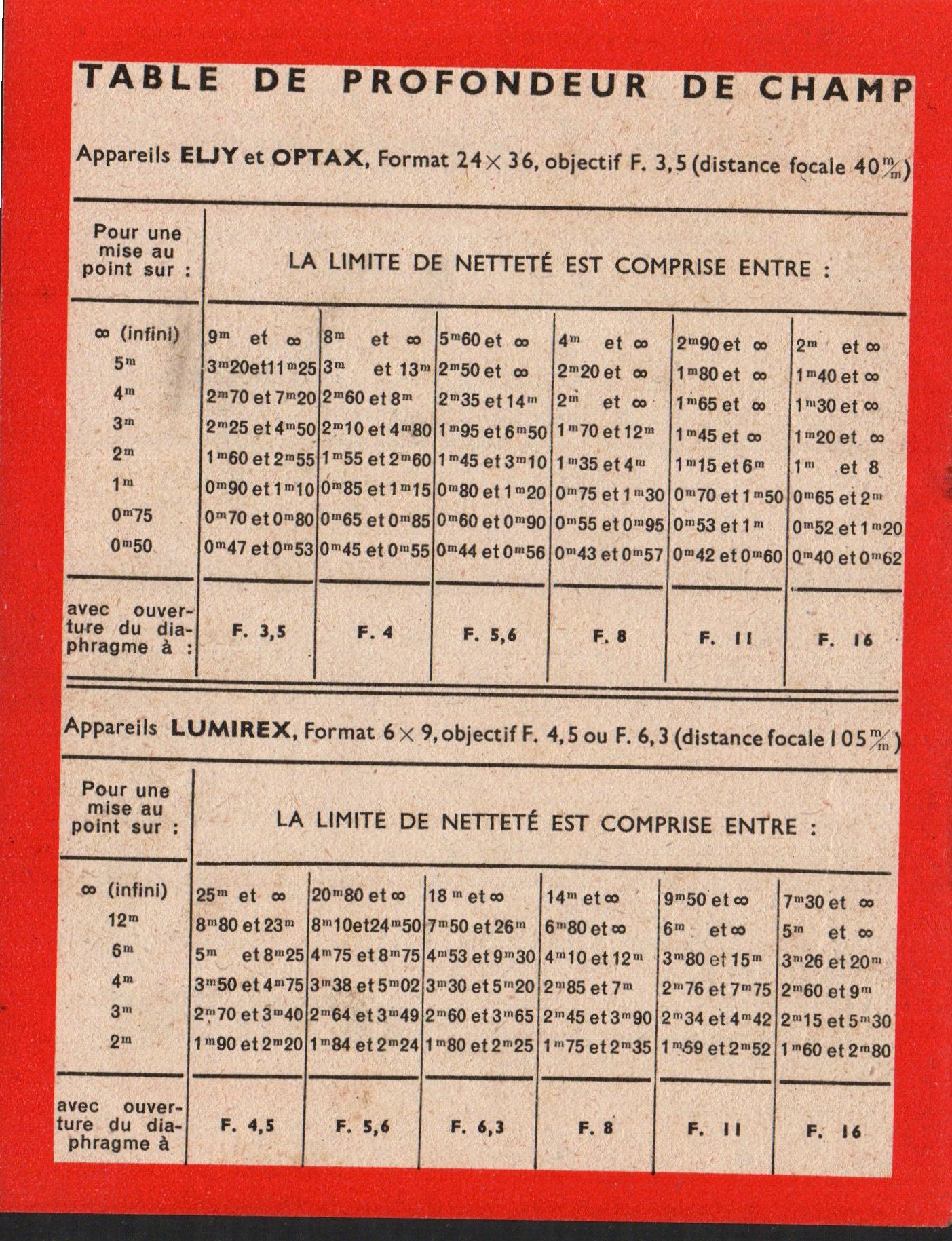Catalogue des surfaces sensibles 1955