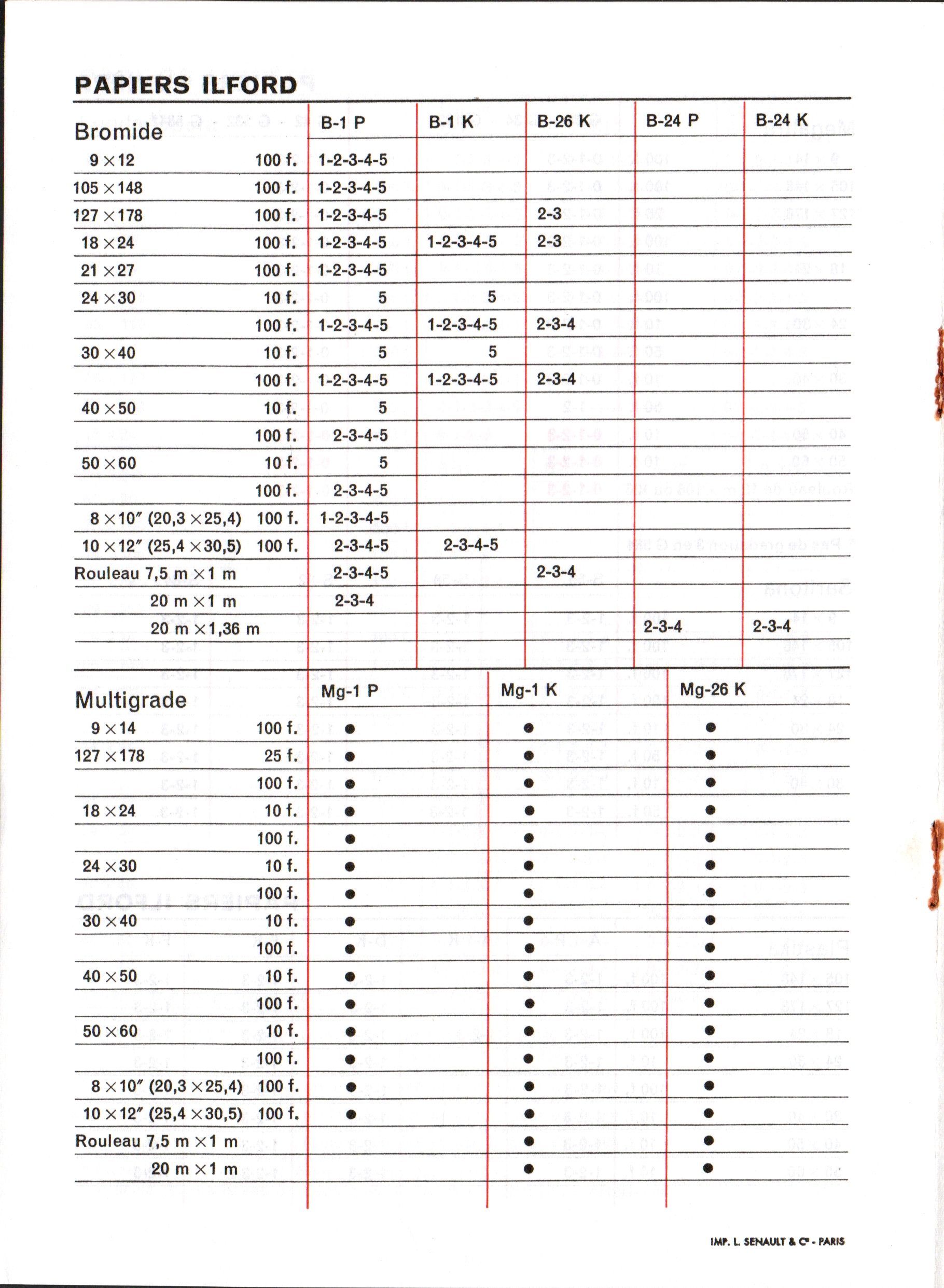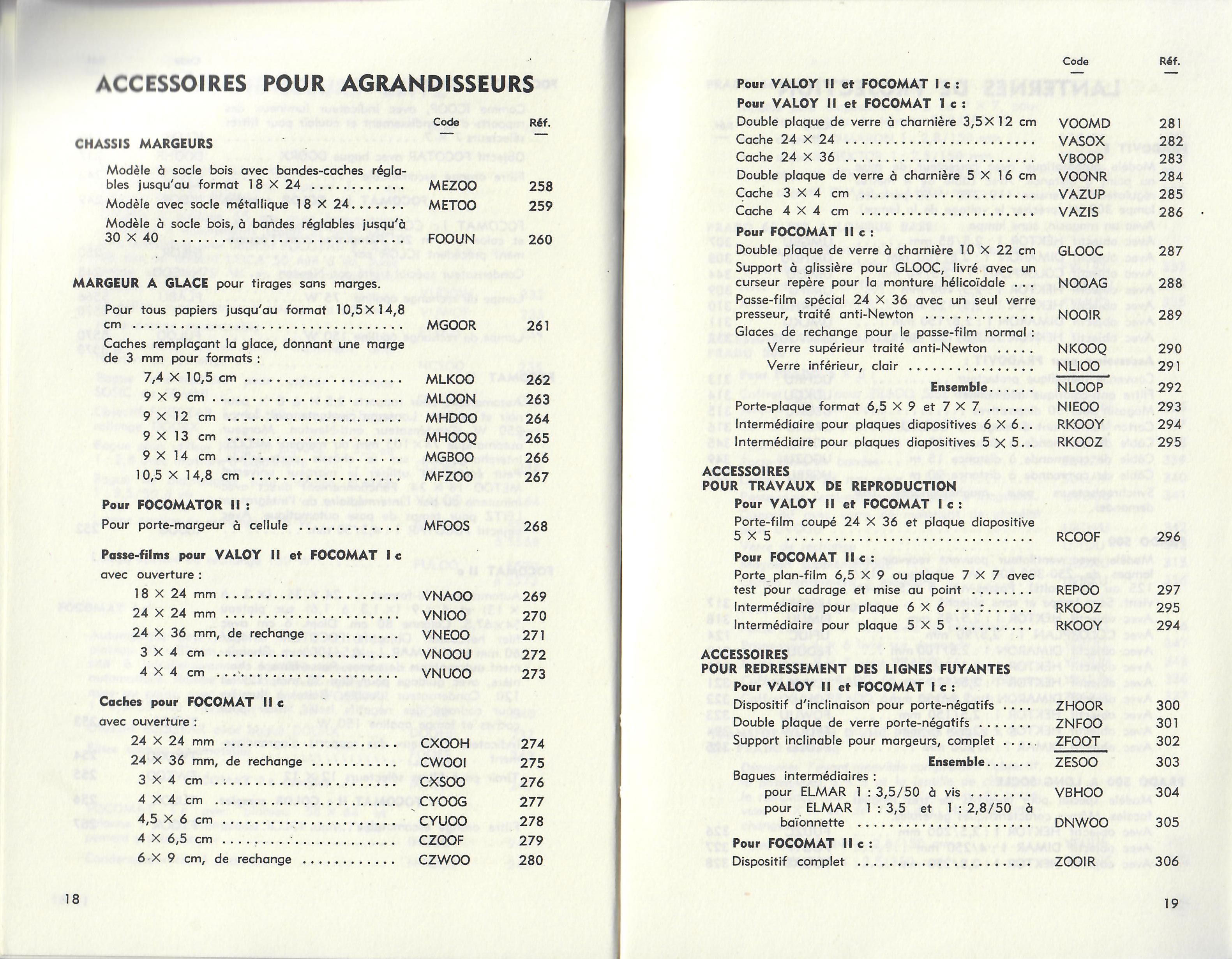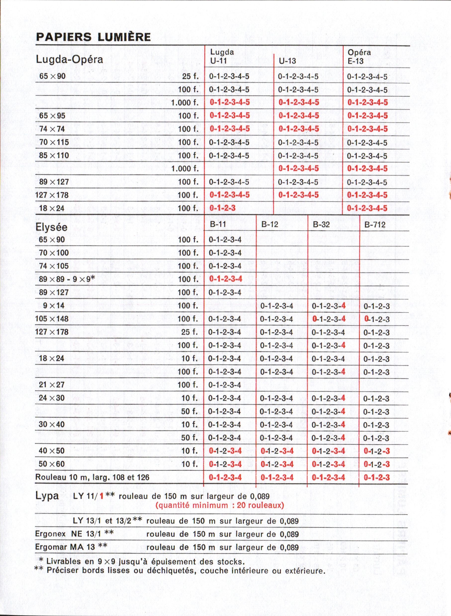 Catalogue des Produits pour la Photographie en lumiere artificielle