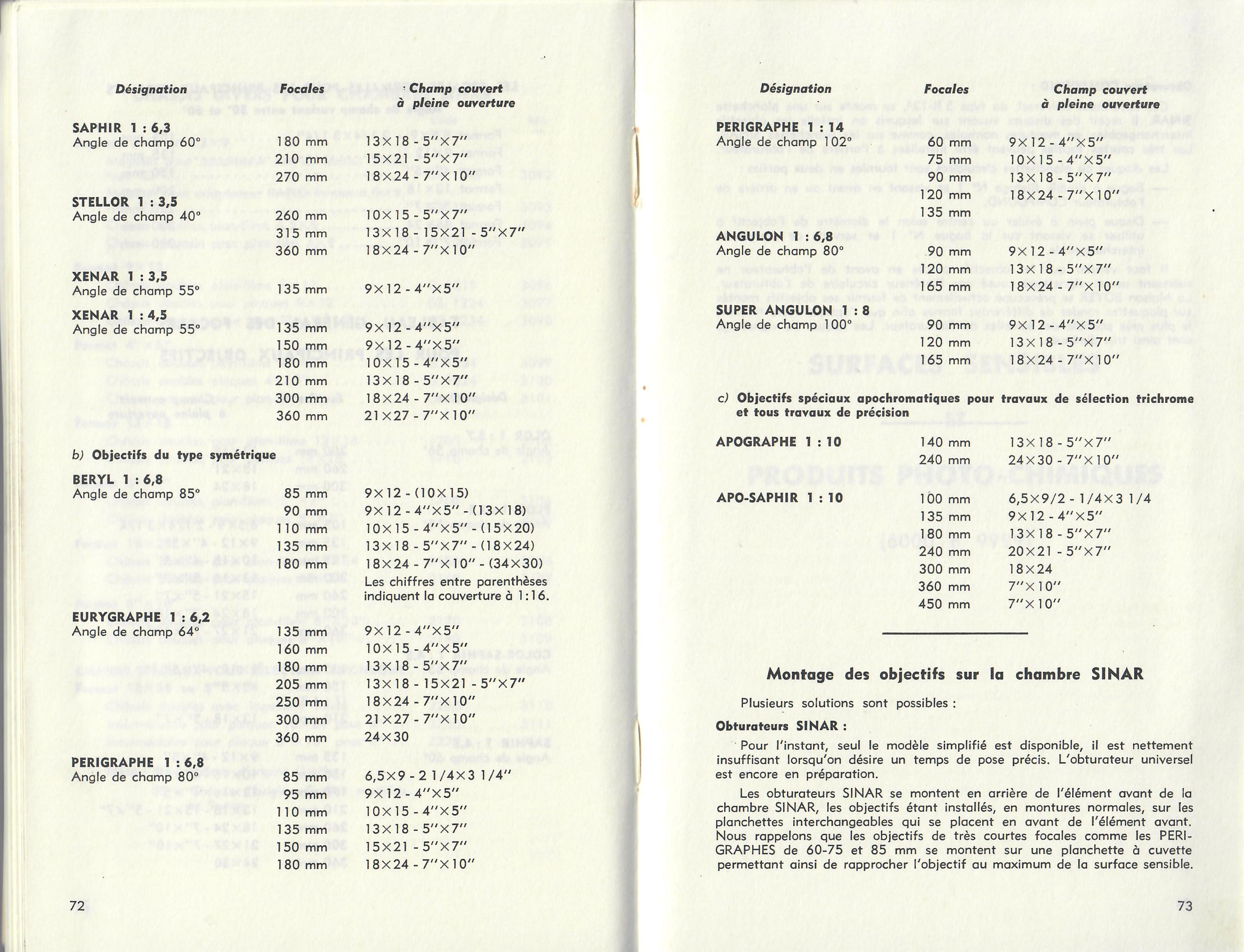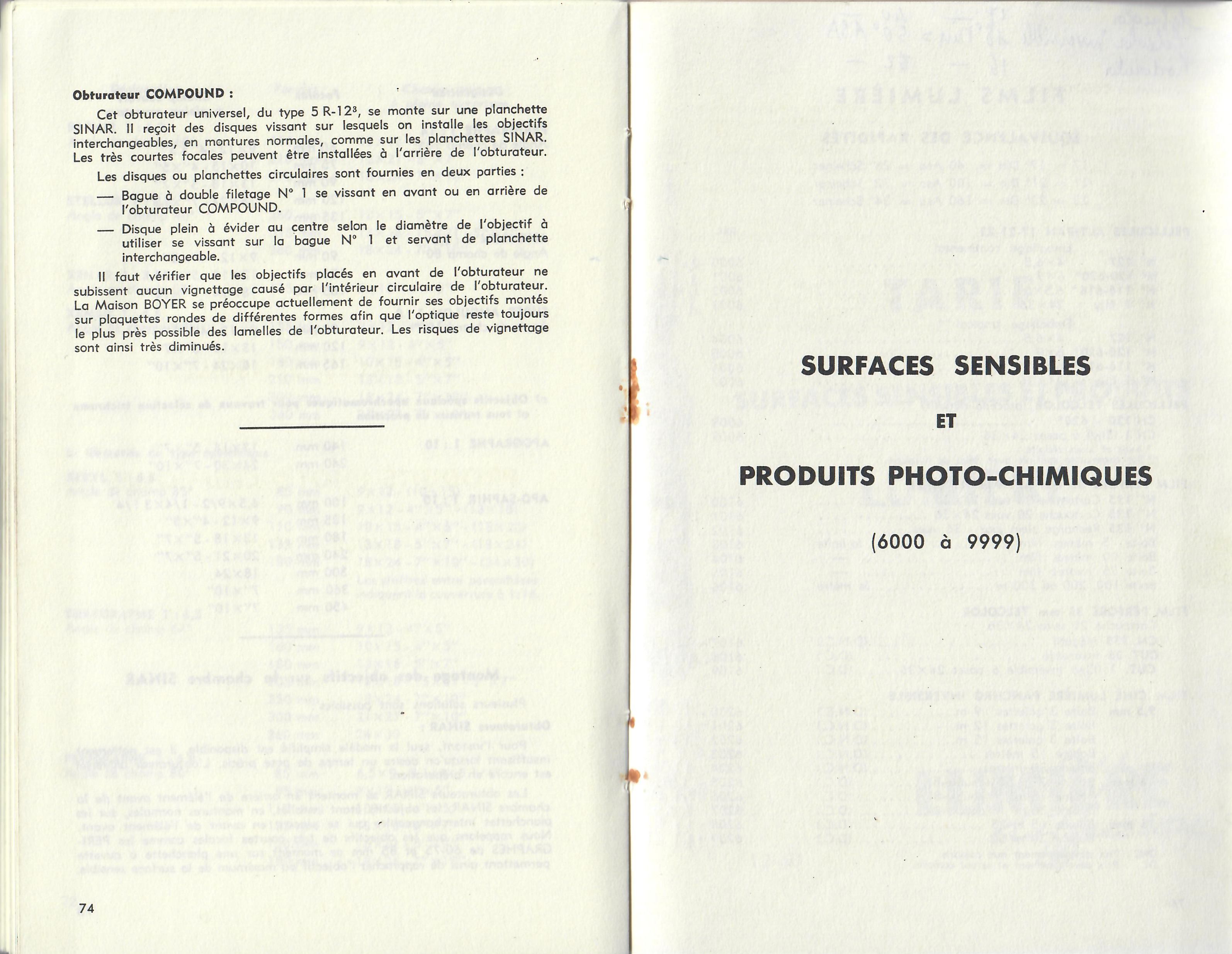 - Catalogue des surfaces sensibles 1955
