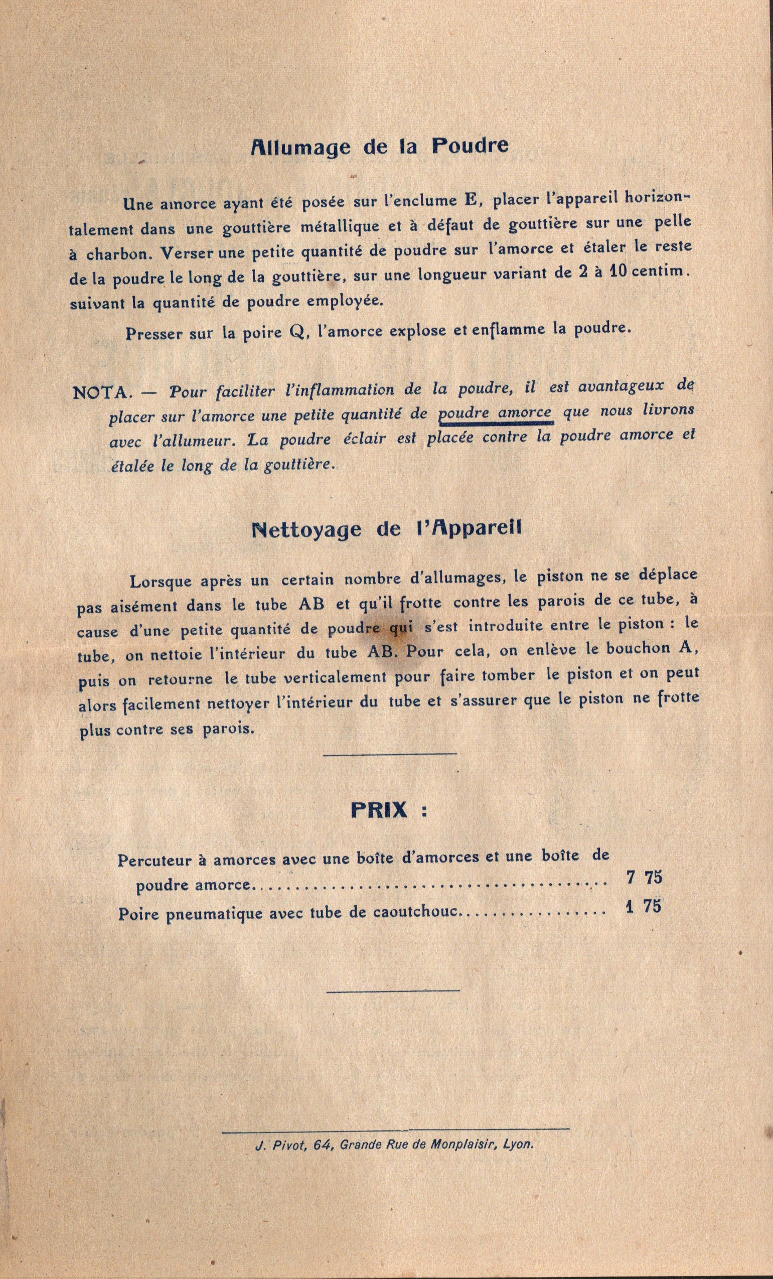 Percuteur à amorce pour l'Allumage instantané des Poudres Eclairs