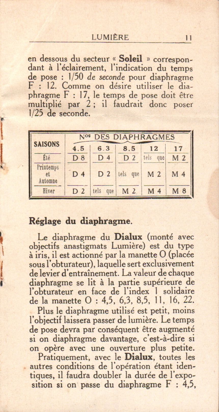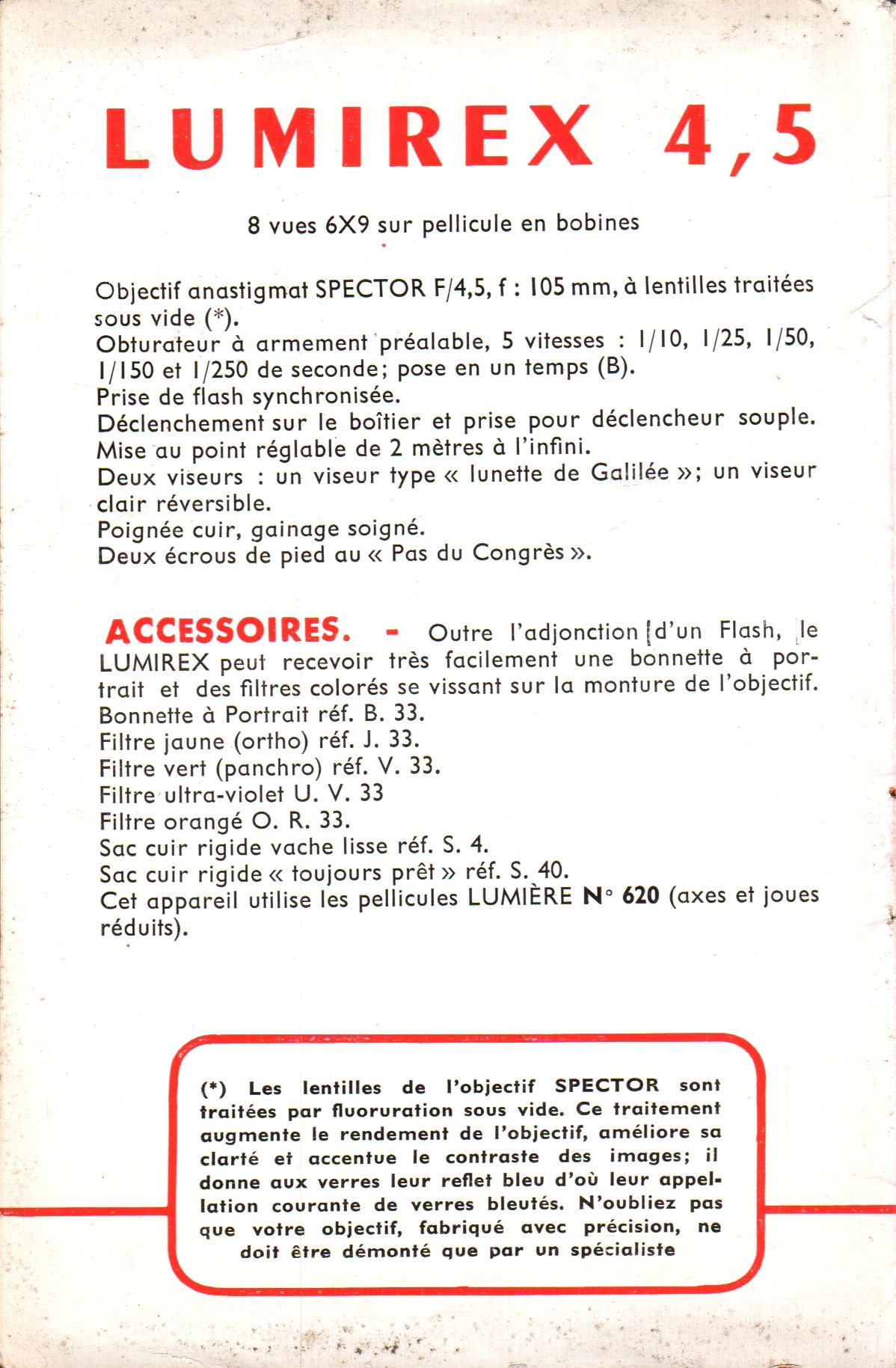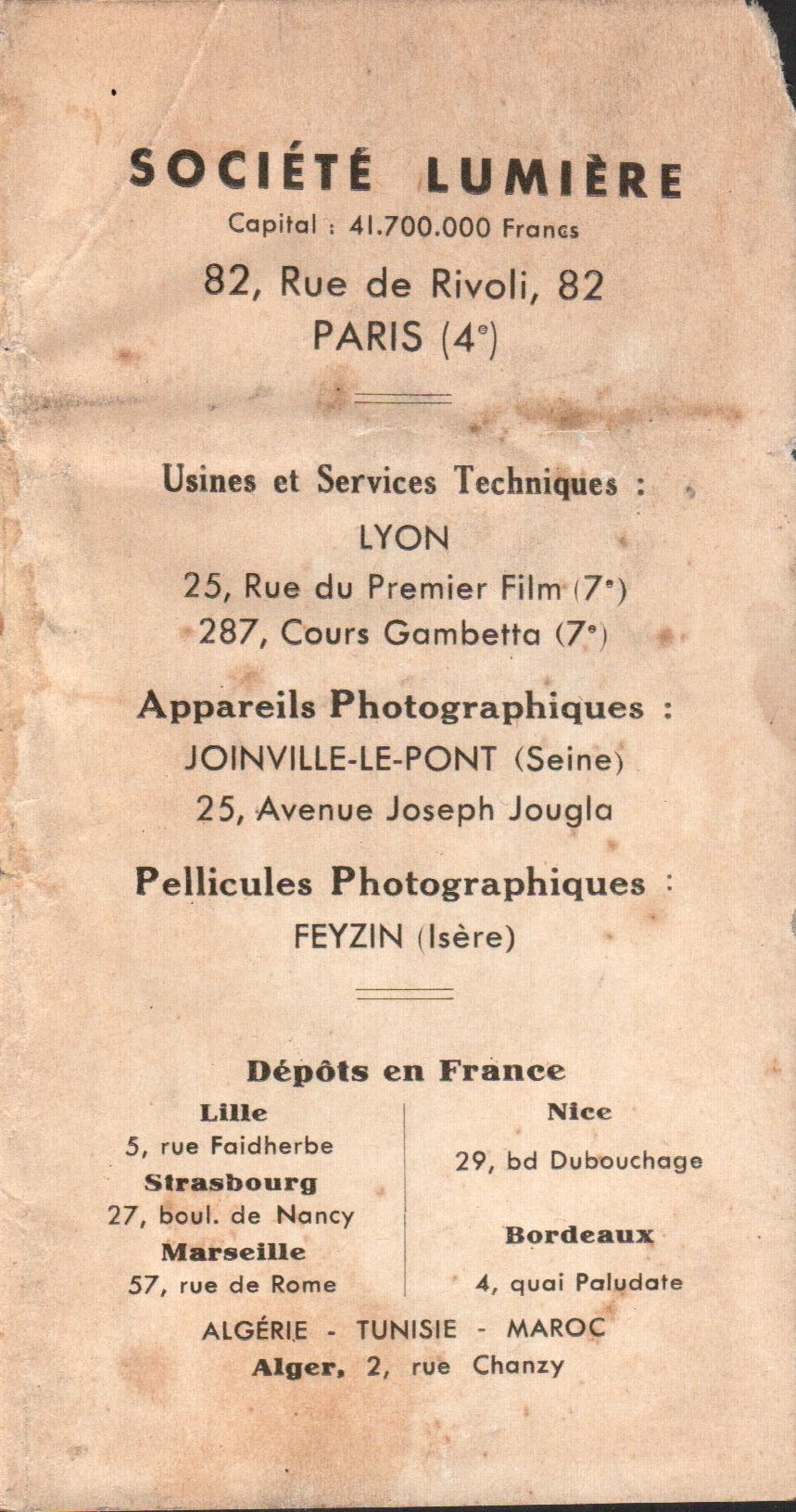 1952 - Notice Lumière 6,5x11 - page 11Lumière 4,5 - 1954