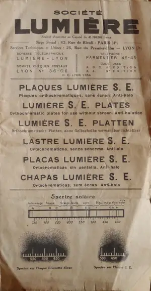 En 1921, l'Agenda Lumière fait mention d'une plaque étiquette verte Lumière qui perdure jusqu'en 1928.