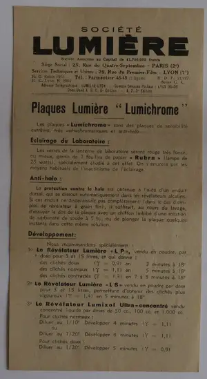 La plaque Lumichrome (de même nom que la pellicule Lumichrome) est commercialisée en 1932 et poursuit sa carrière jusqu'en 1956. Sa sensibilité est de 950° HD à sa création et passe à 1400° en 1936.