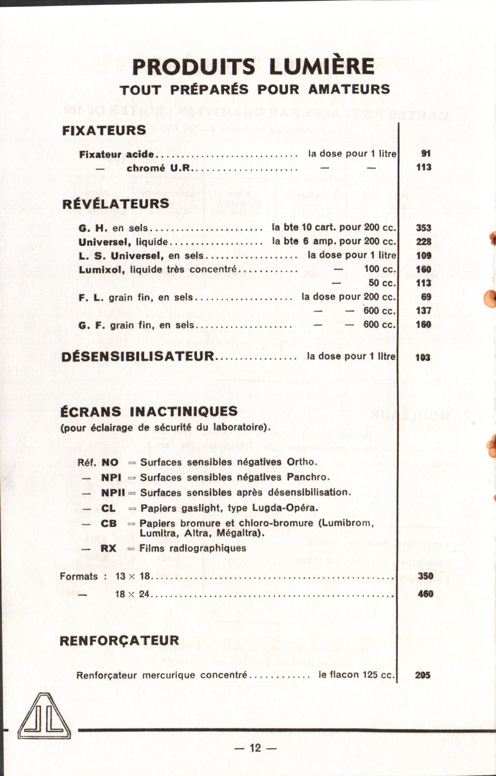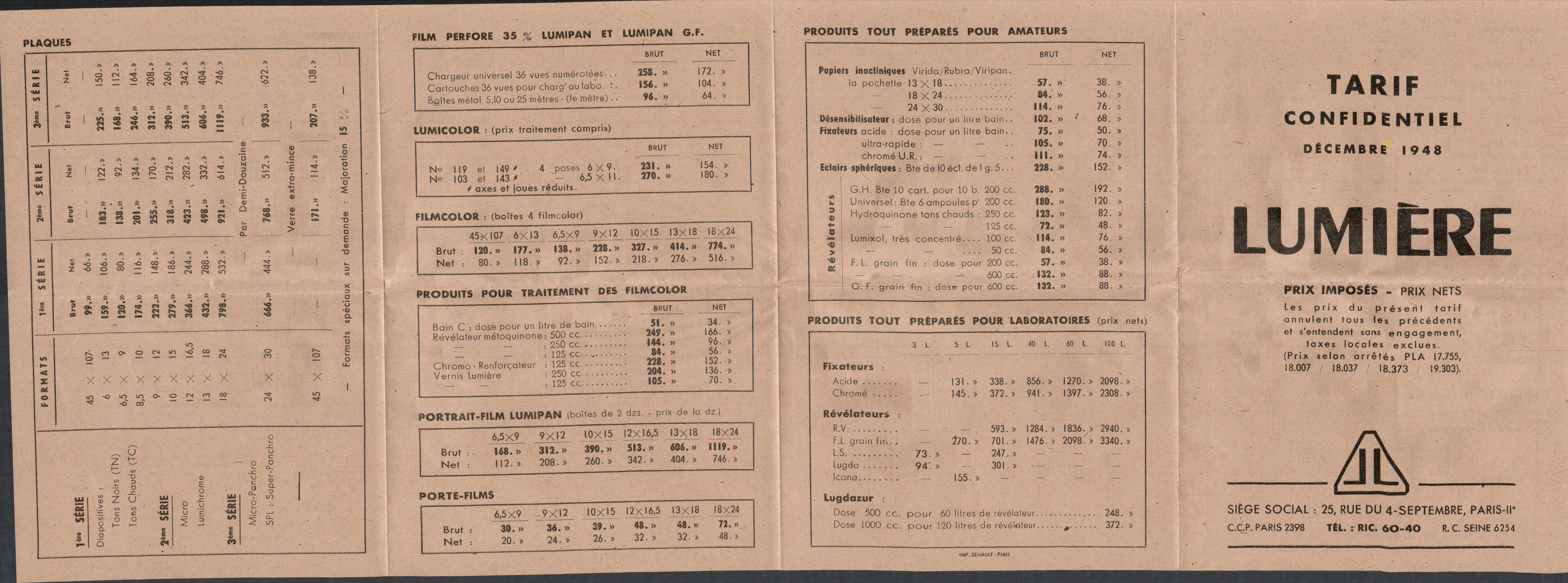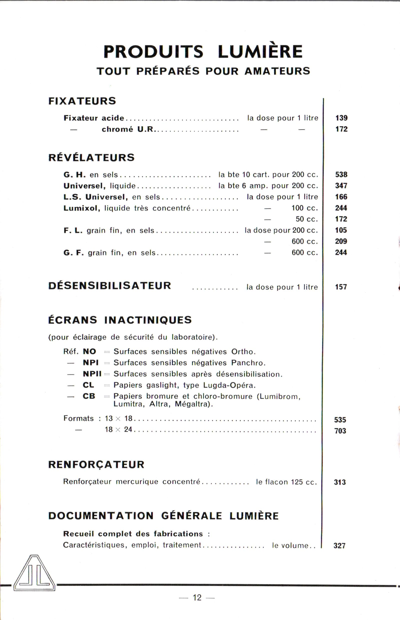 - Prix courant Plaques Papiers Pellicules Produits - 1914