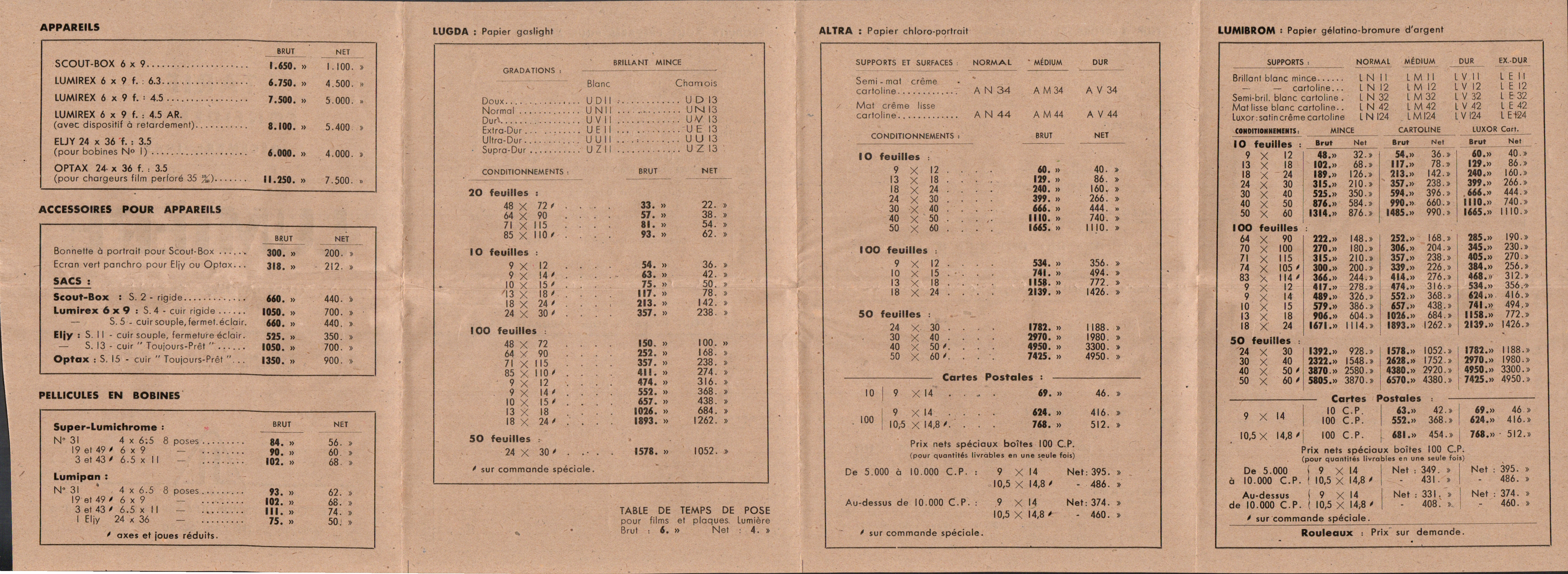 Prix des appareils Lumière - mars 1937
