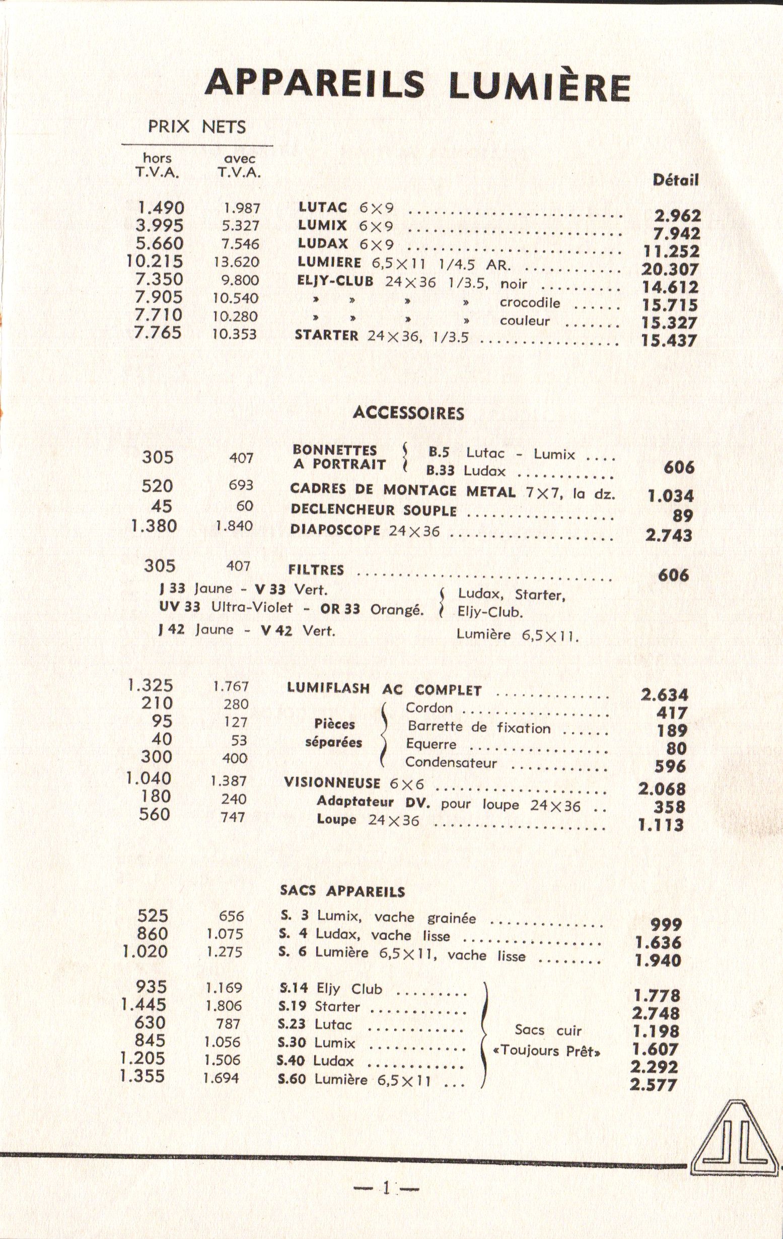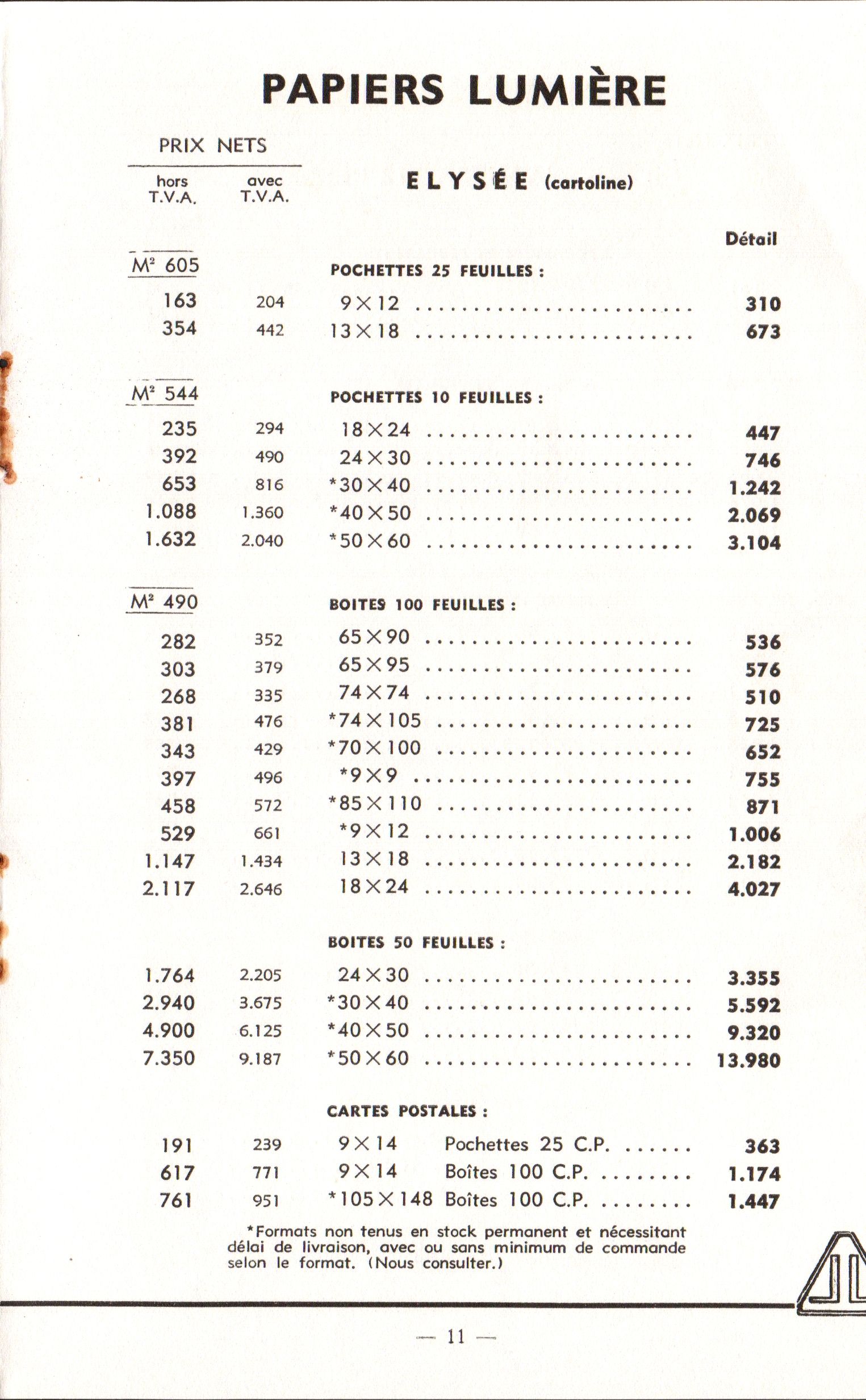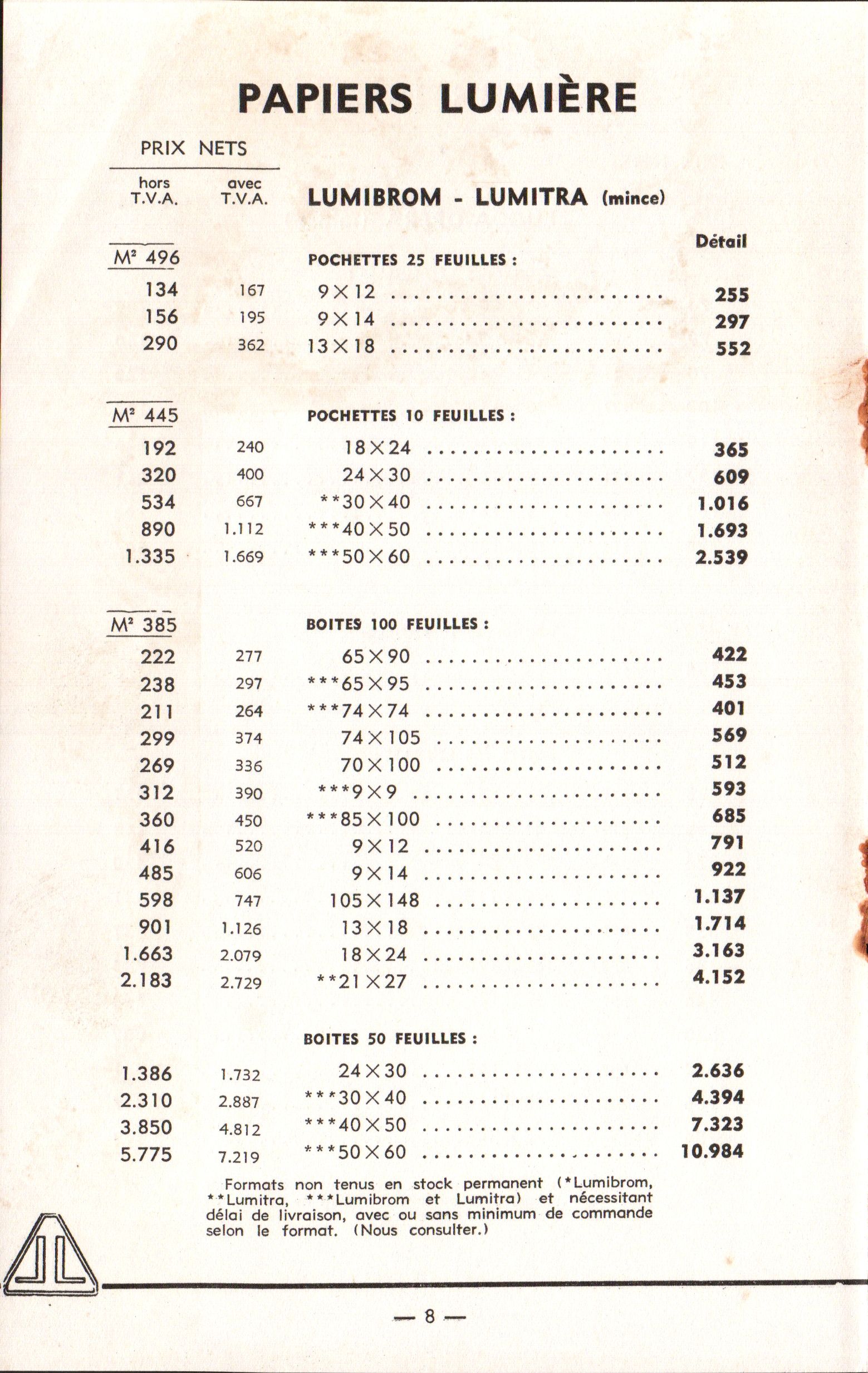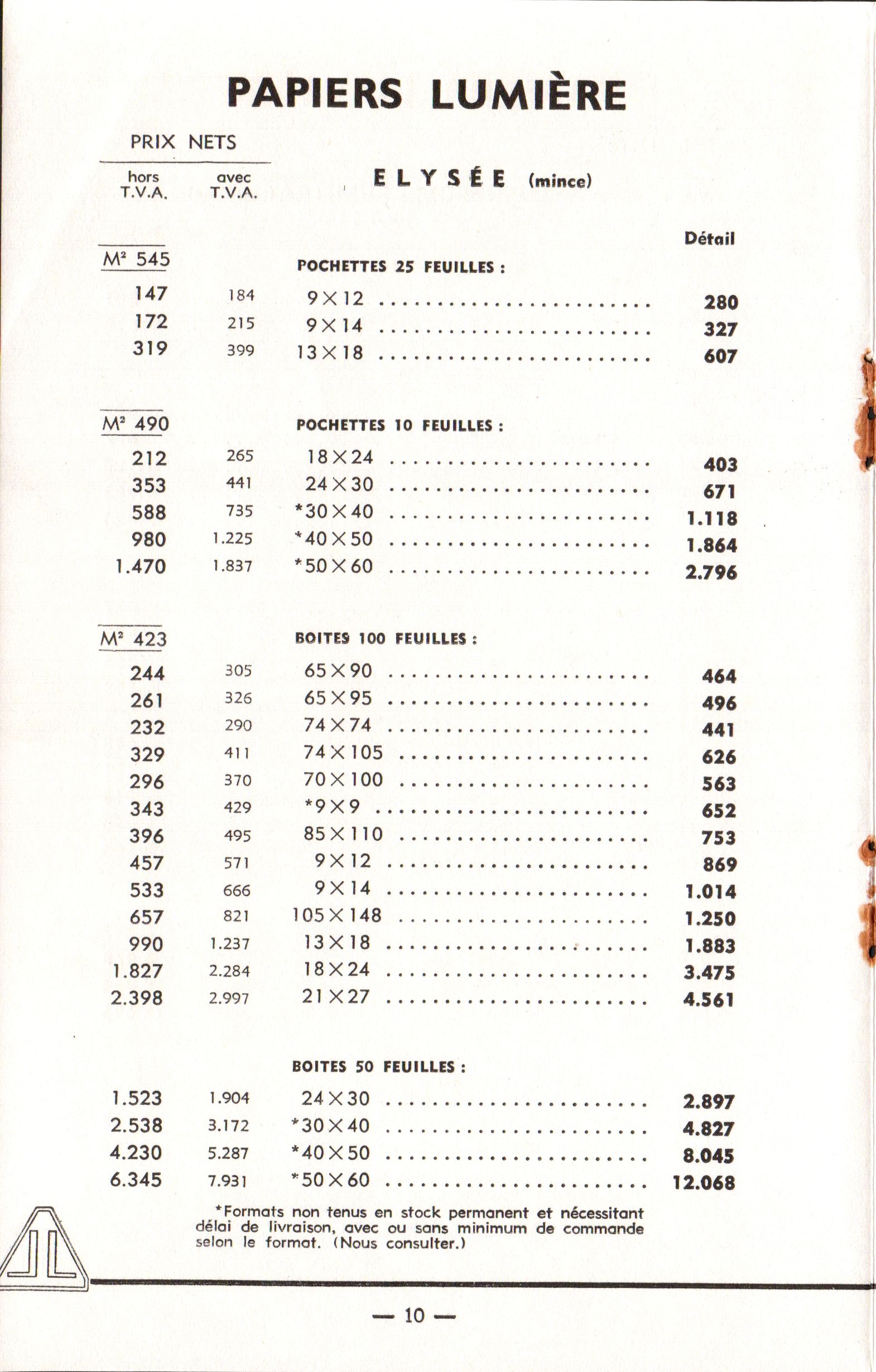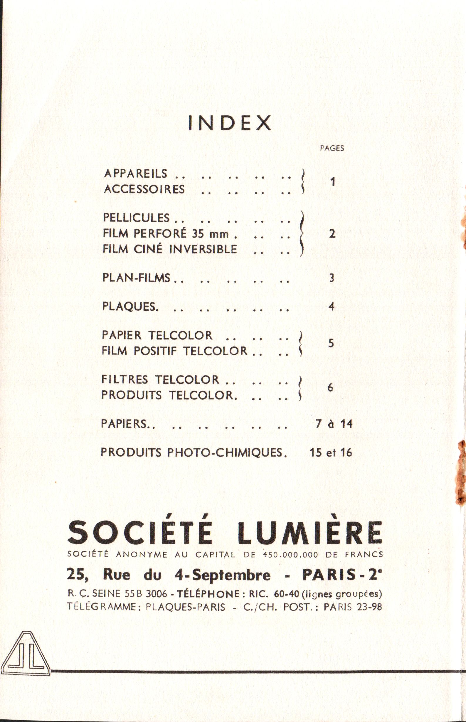 Tarif Films Papiers Filtres Produits Telcolor - mai 1955