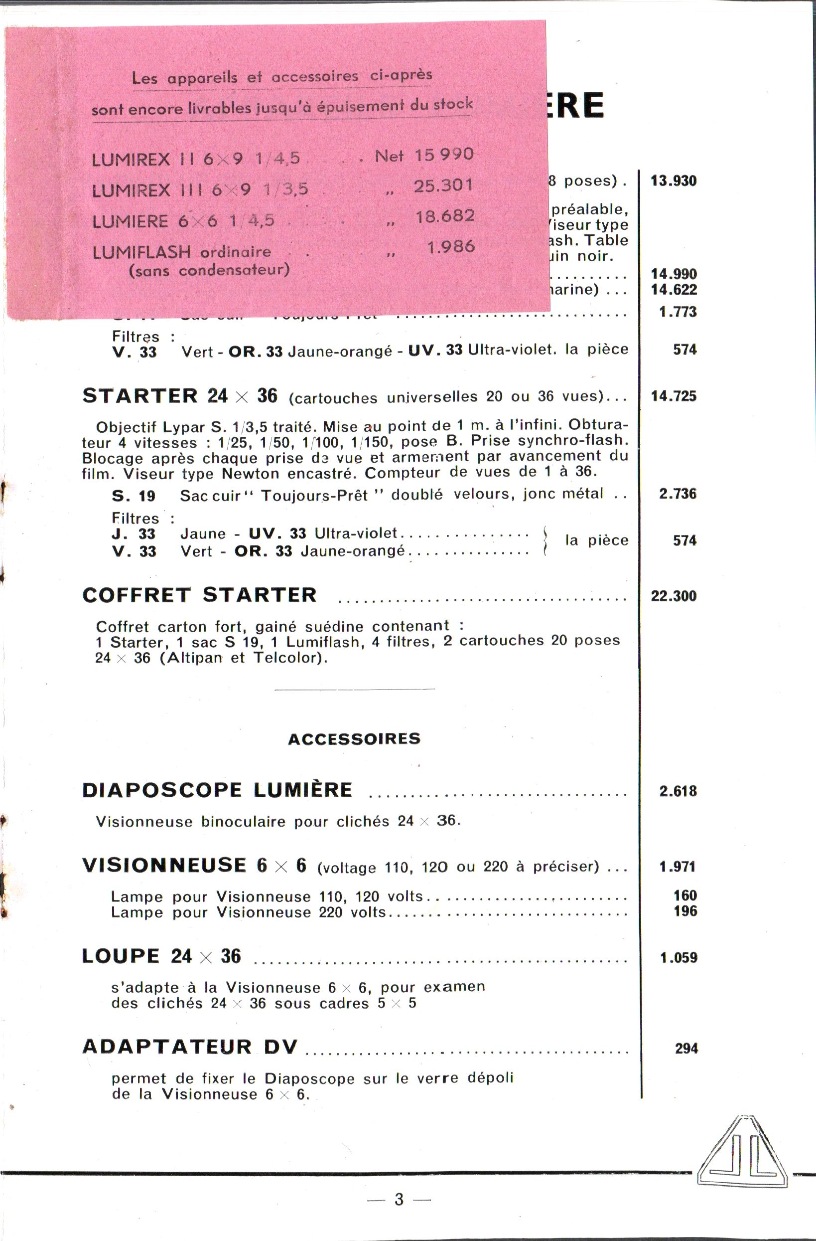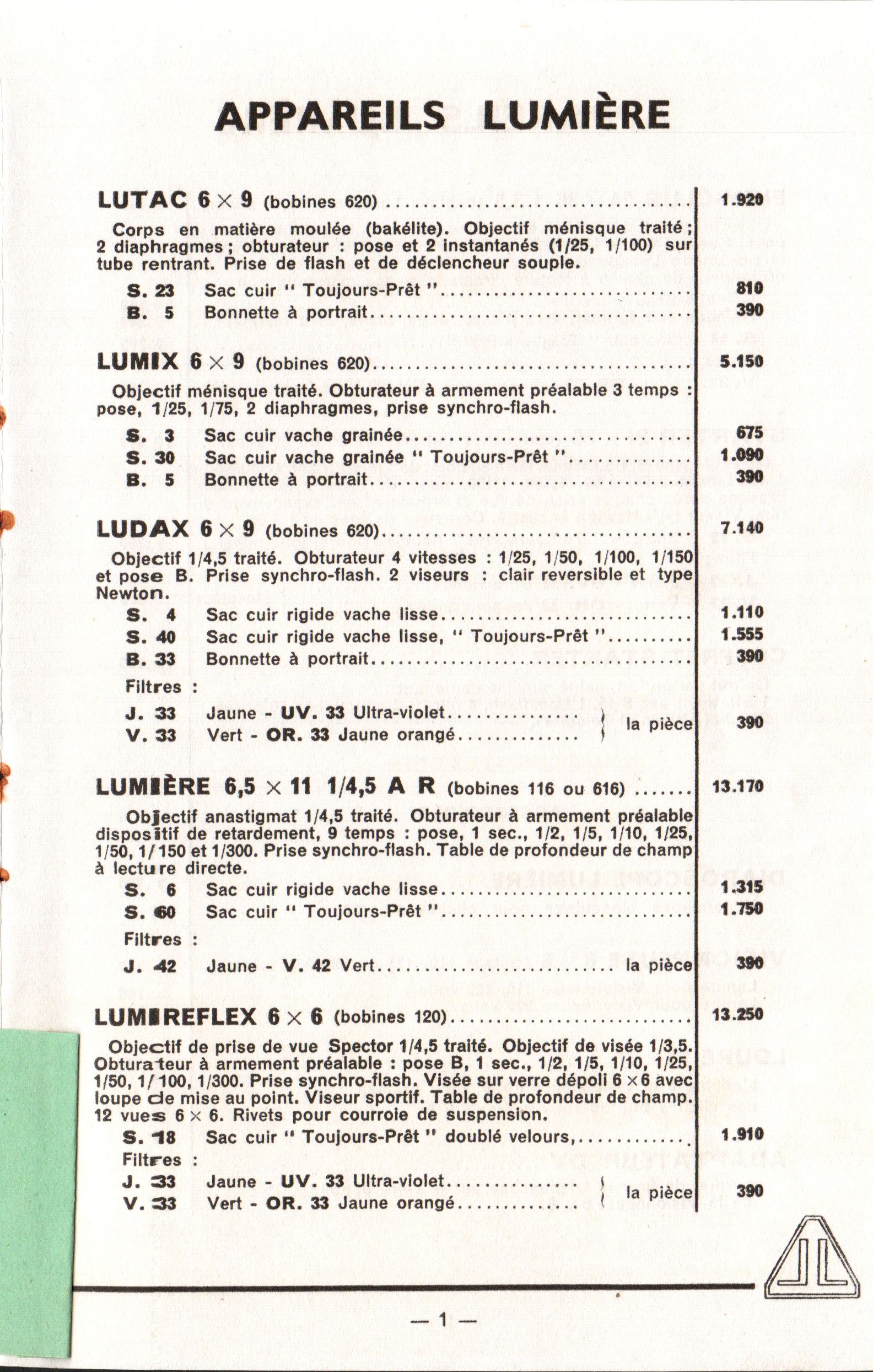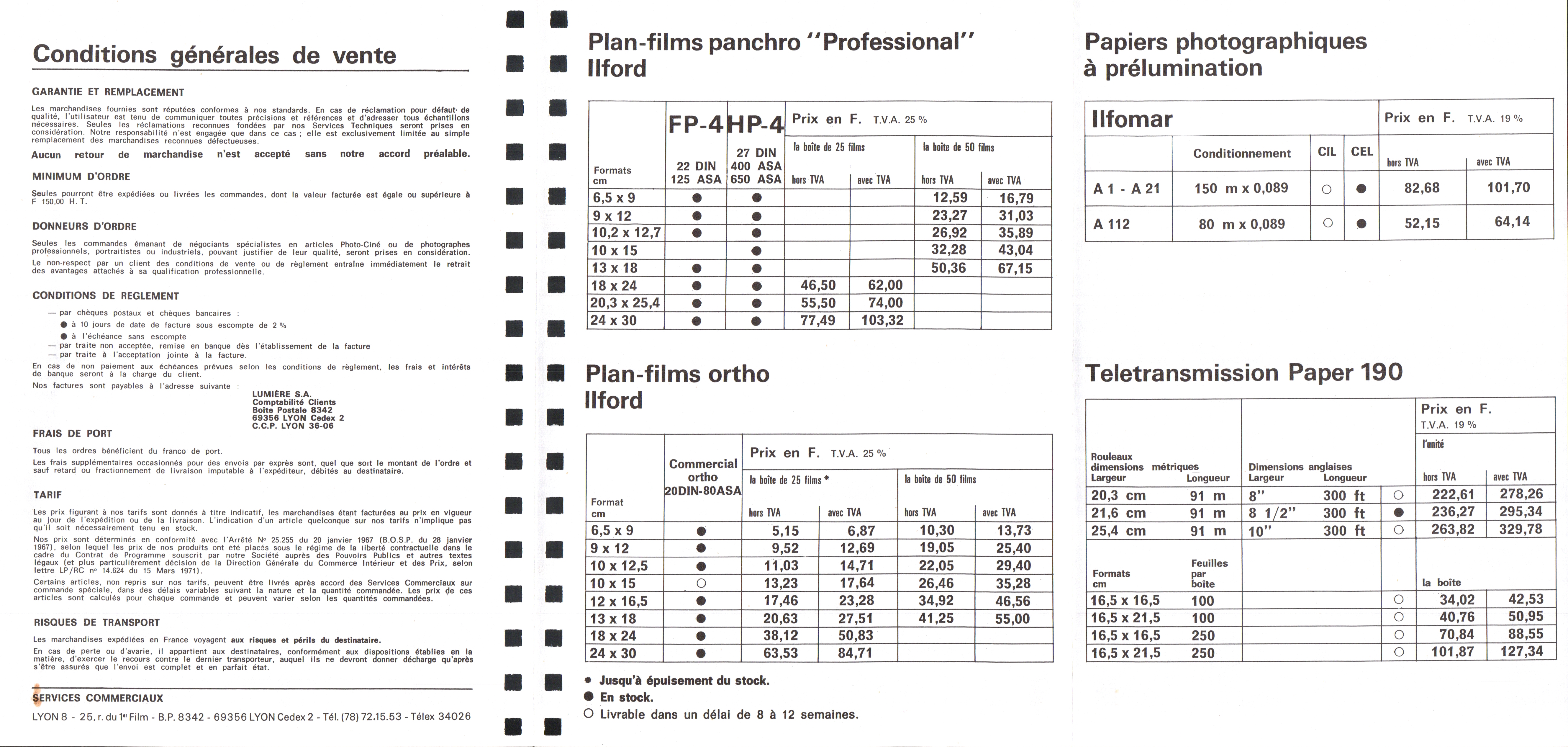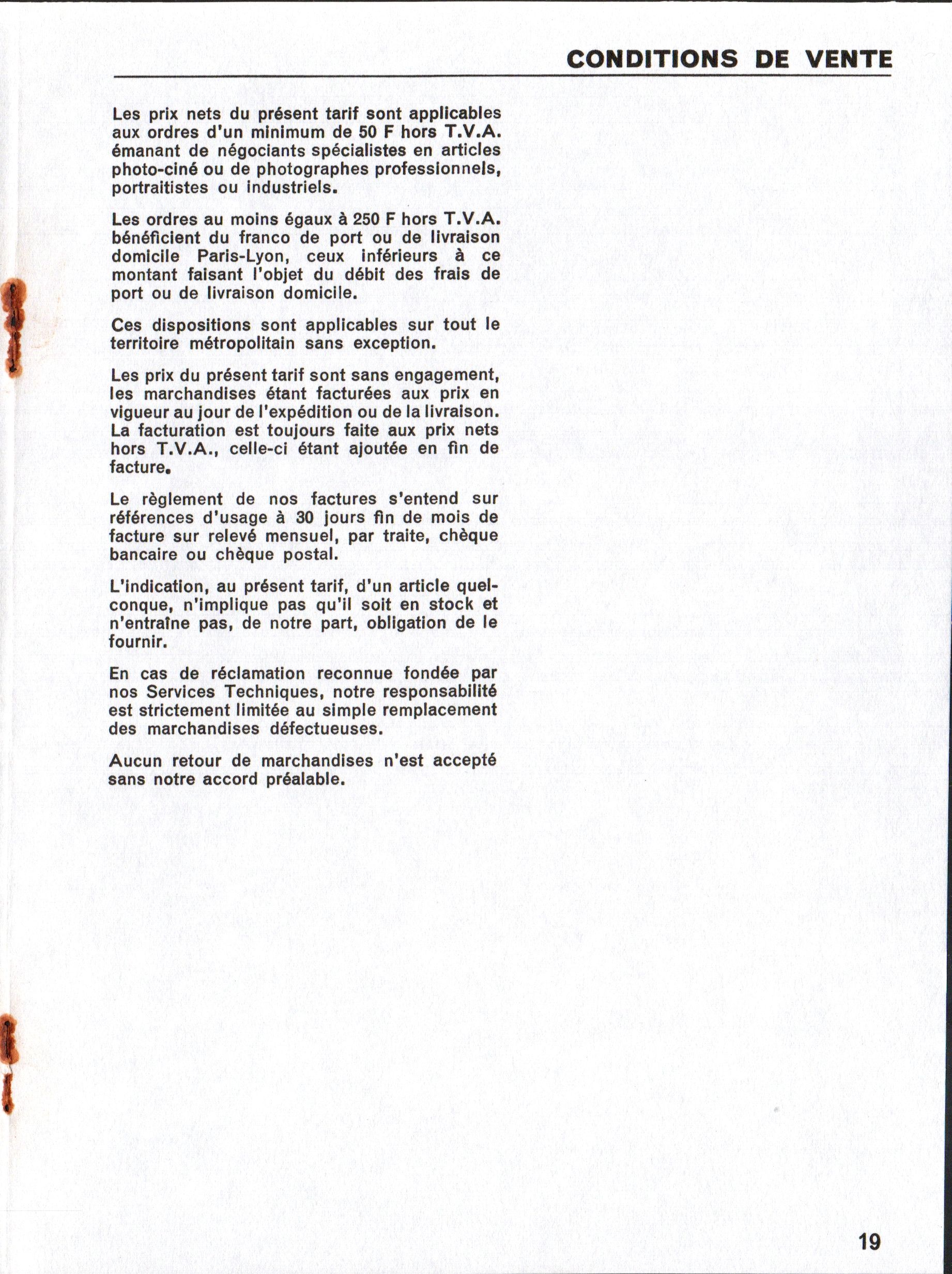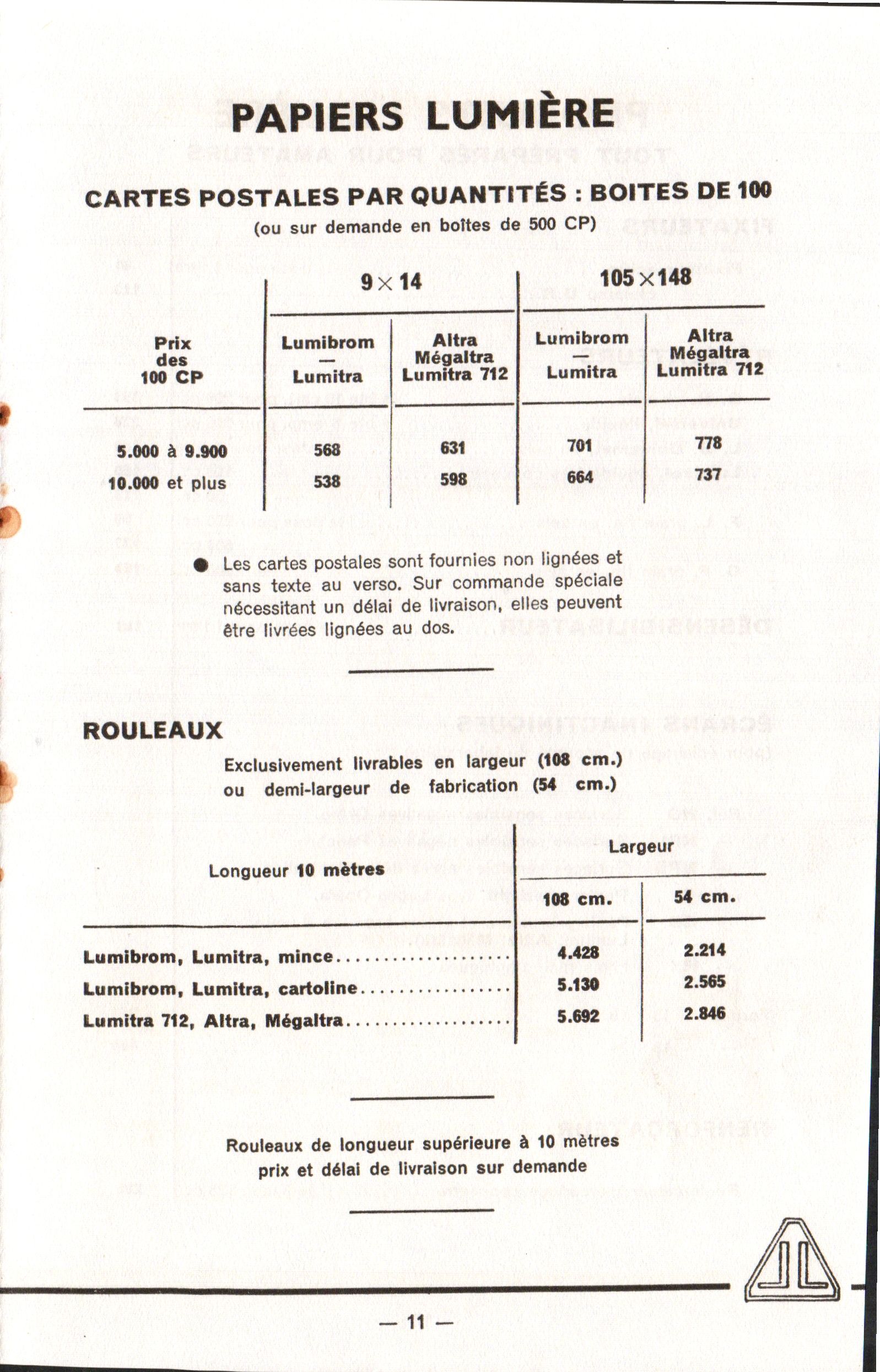 Tarif Films Papiers Filtres Produits Telcolor - mai 1955