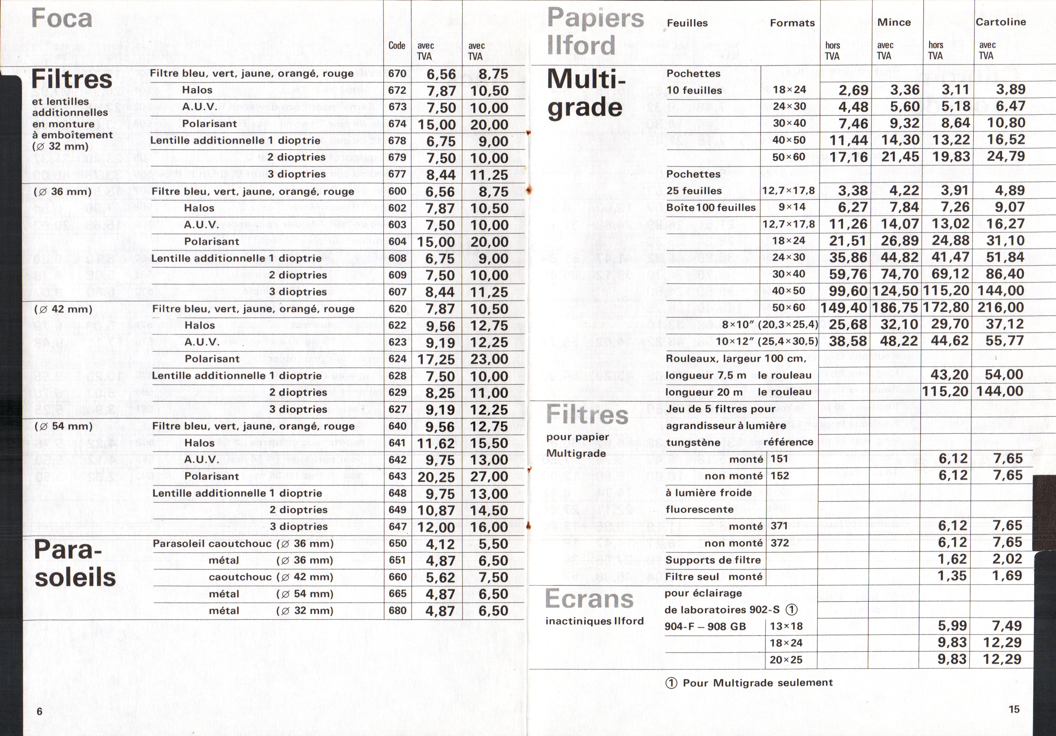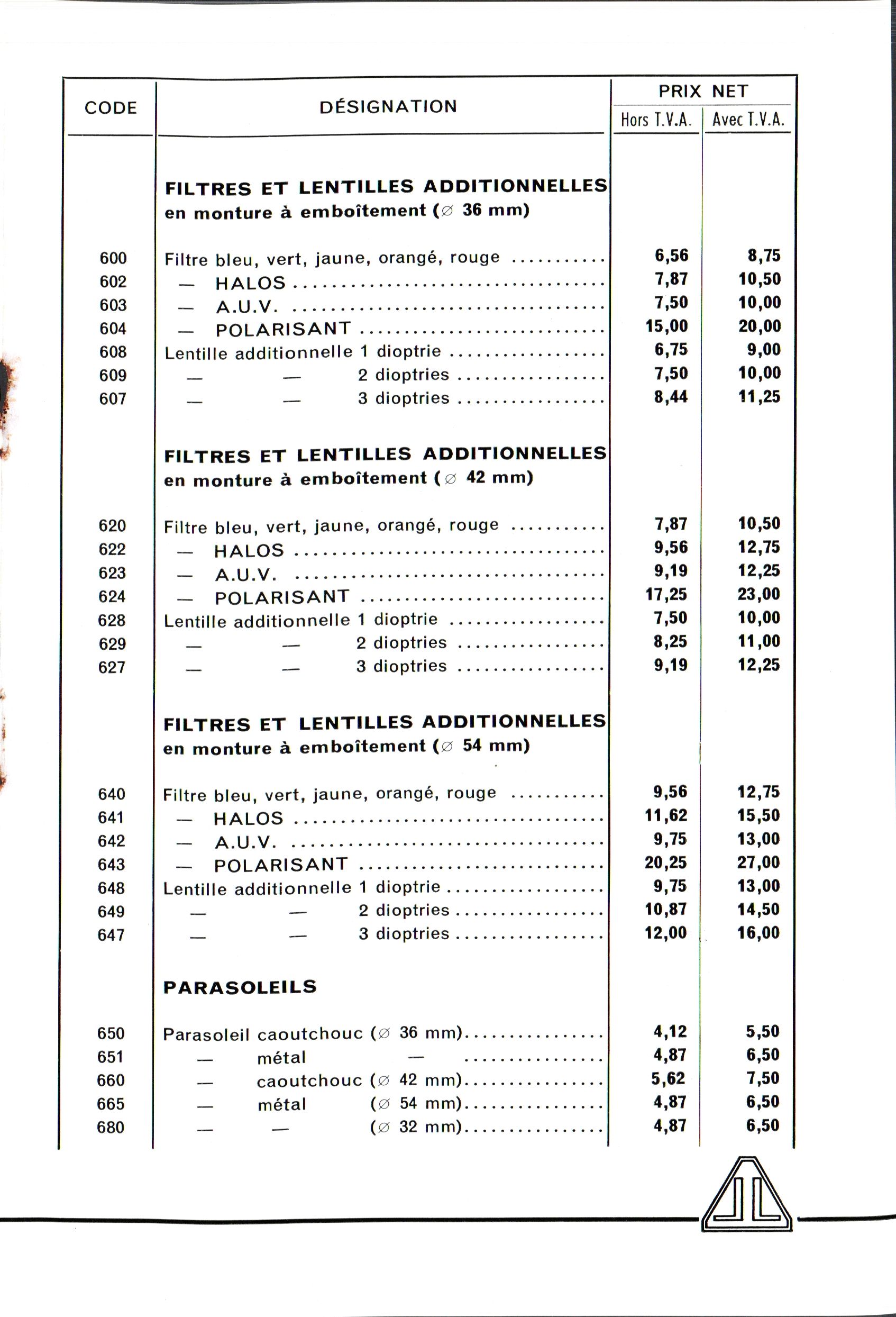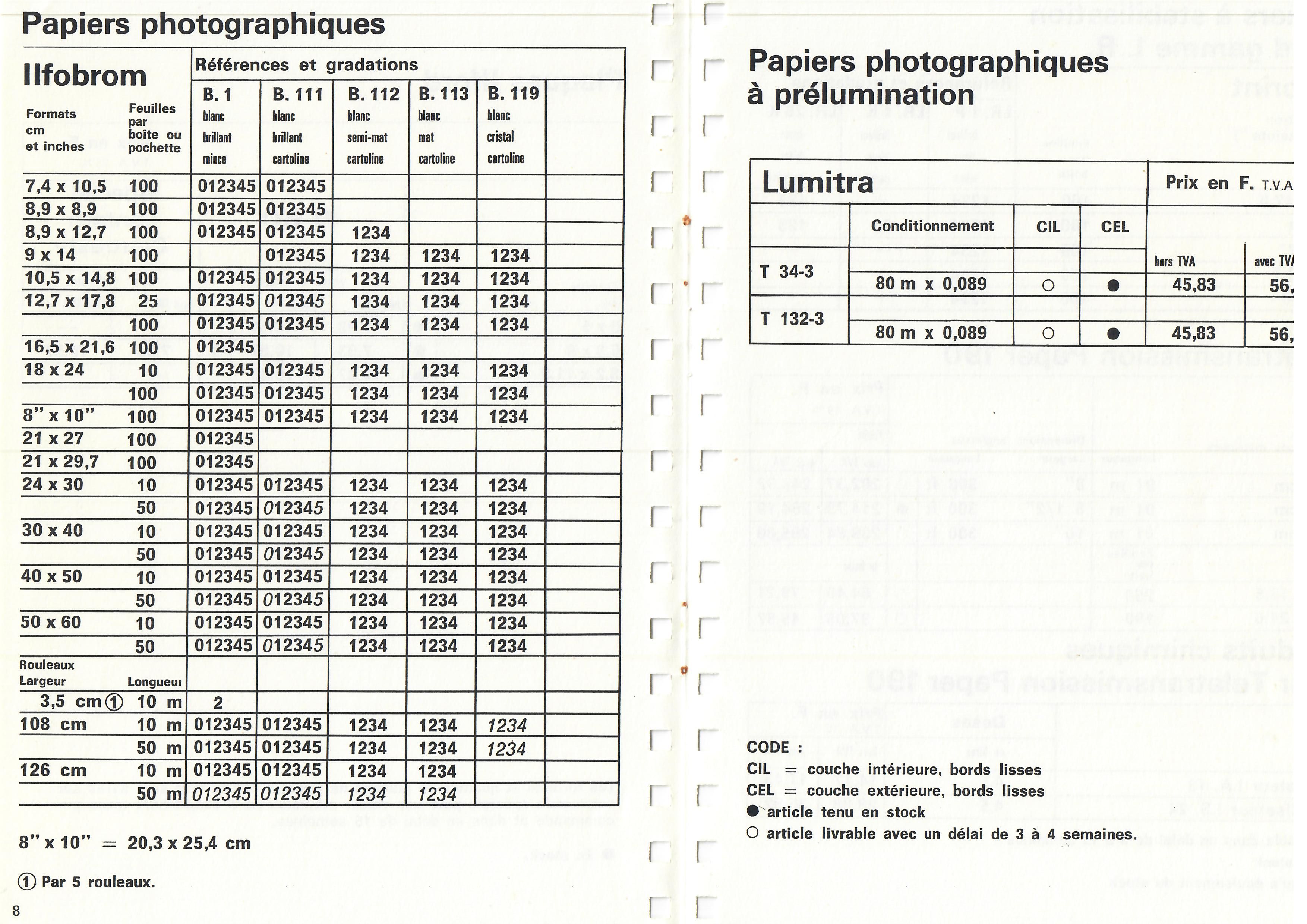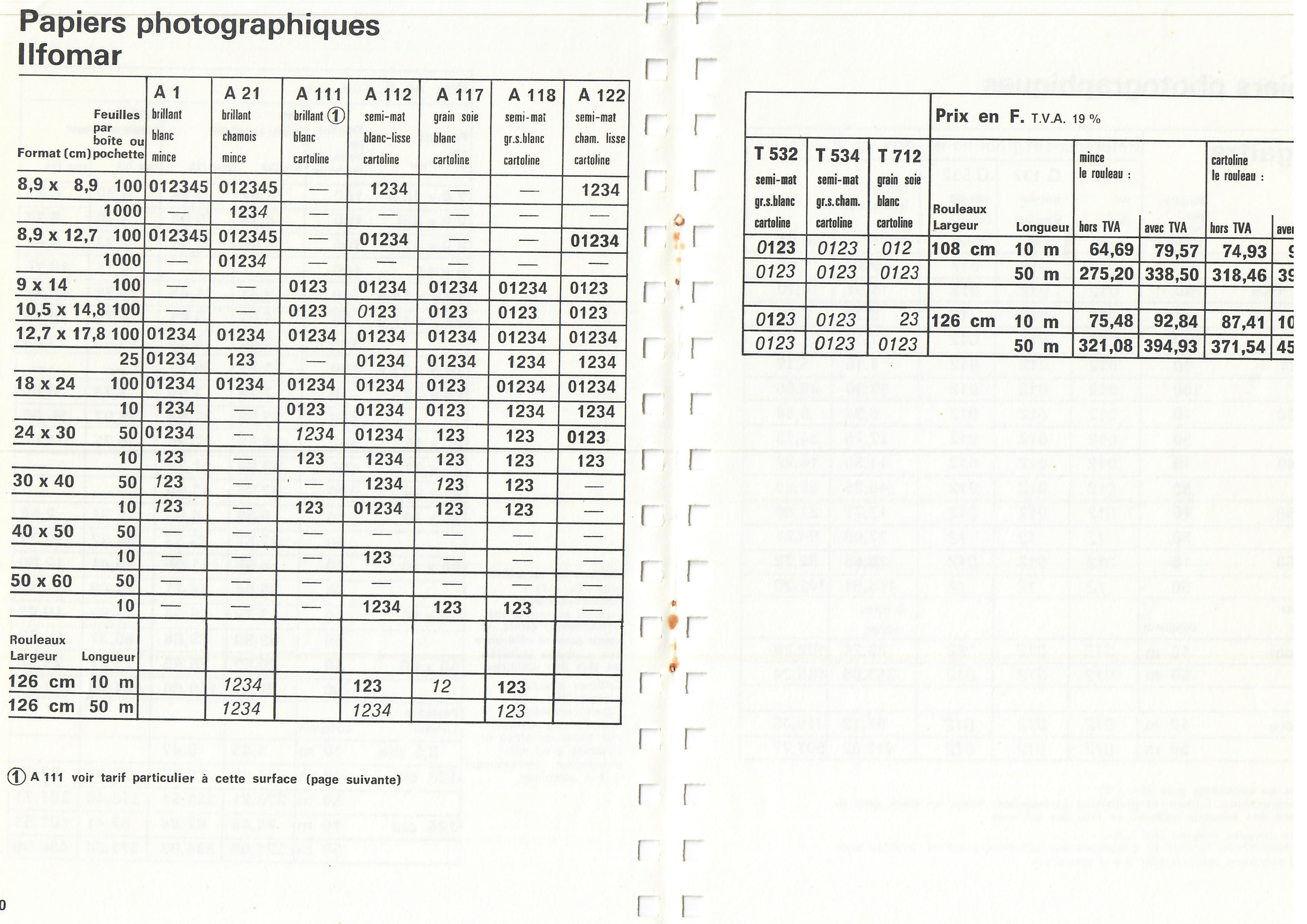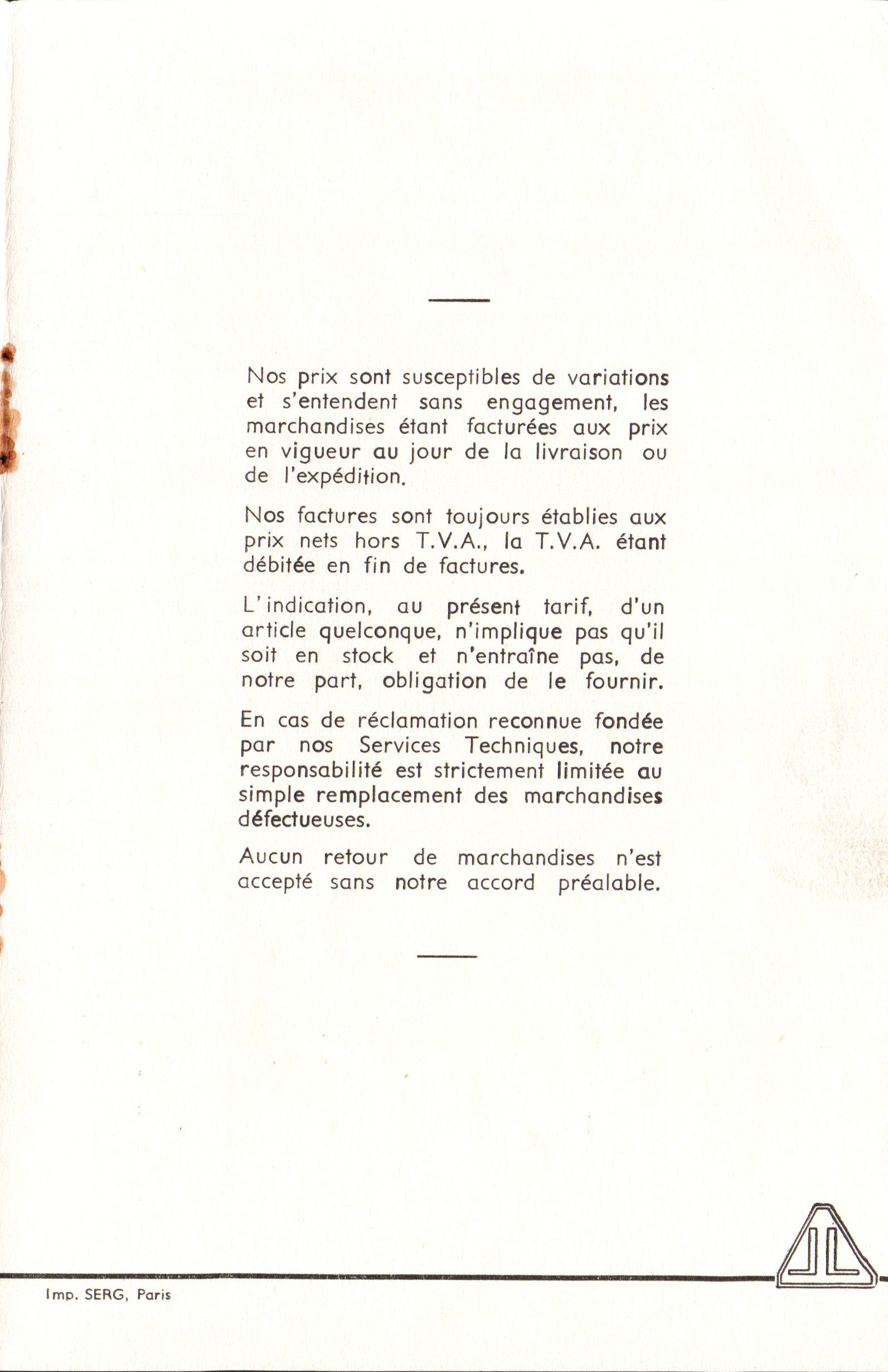 Tarif Films Papiers Filtres Produits Telcolor - mai 1955