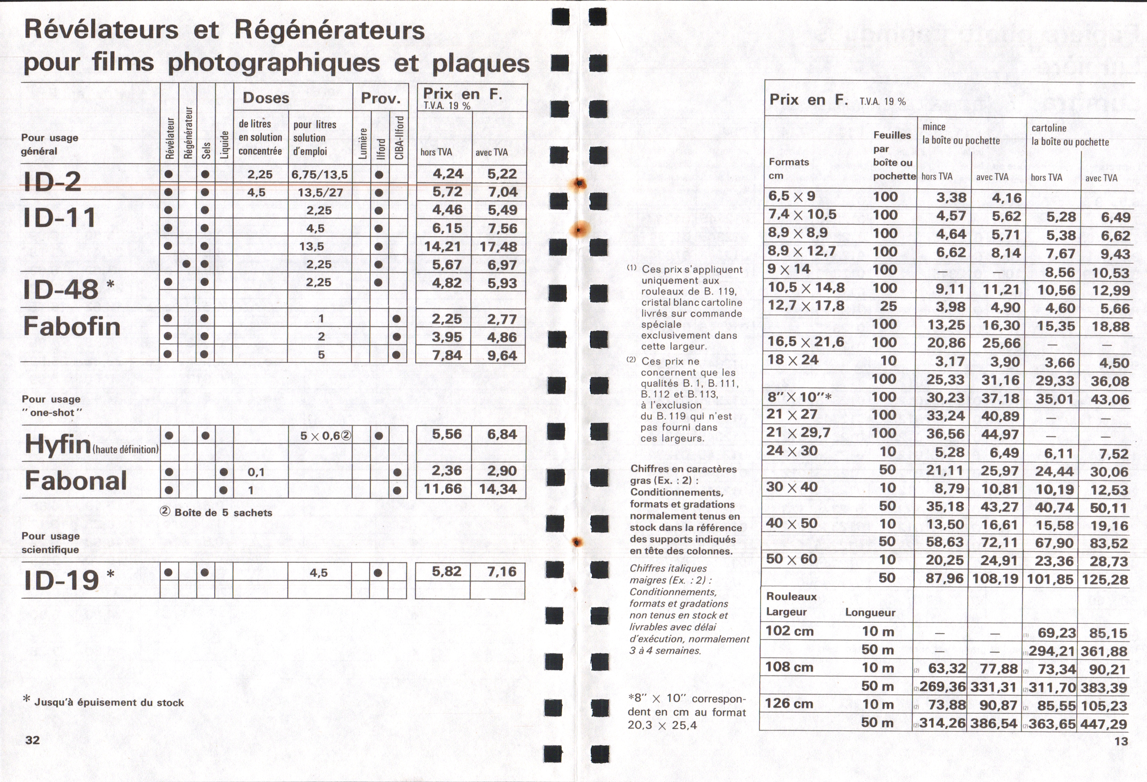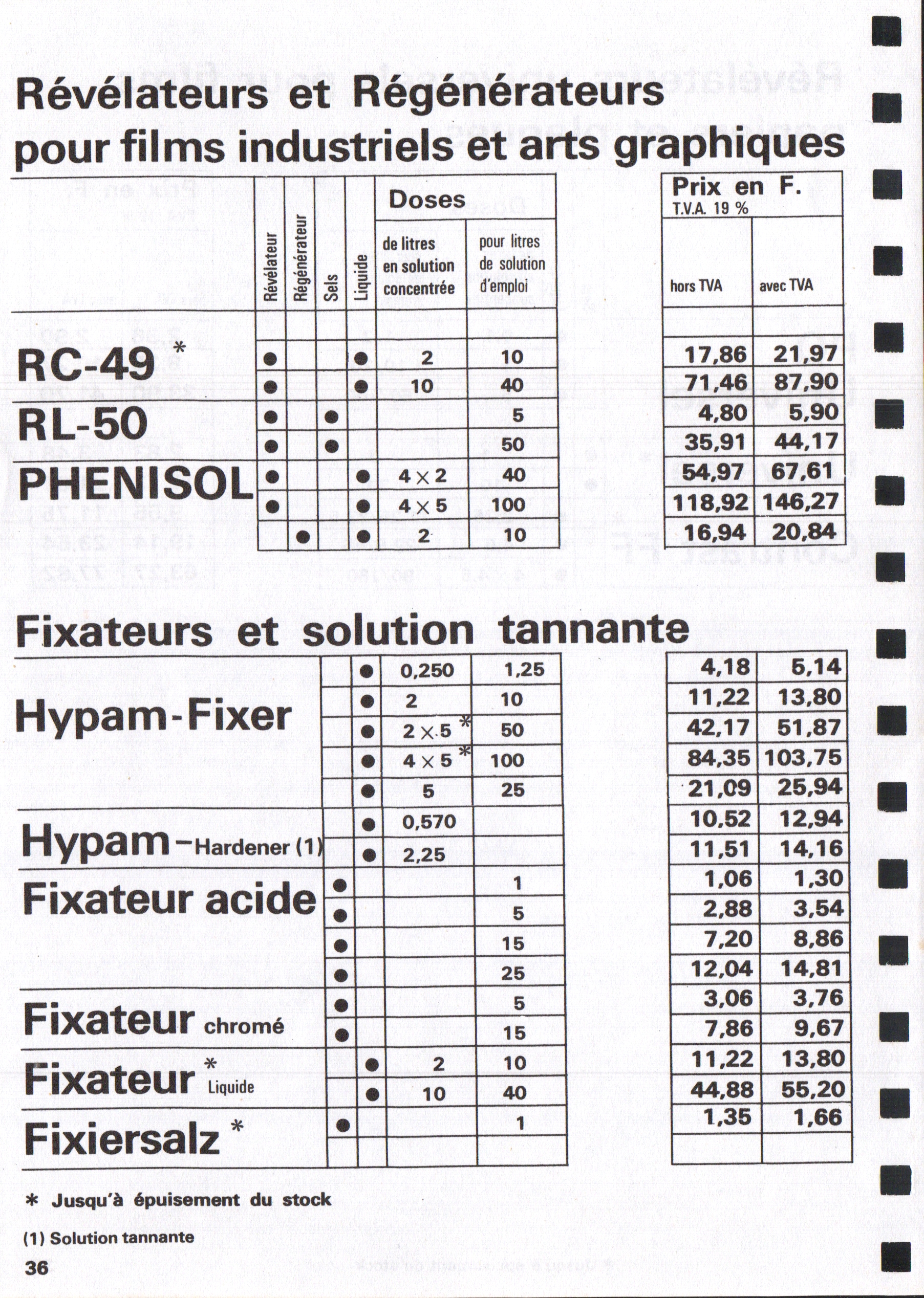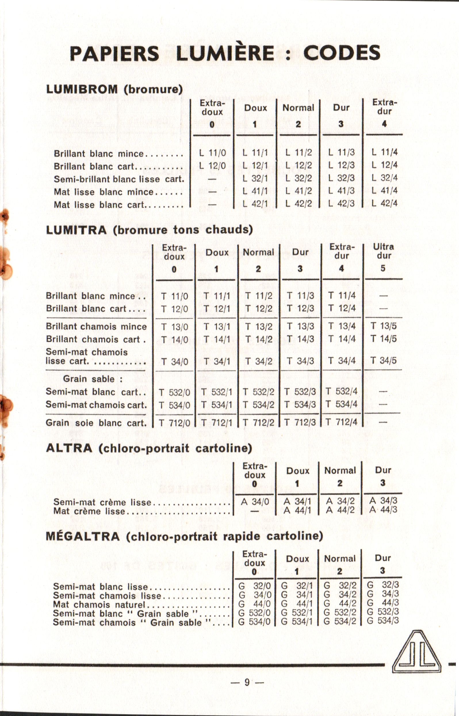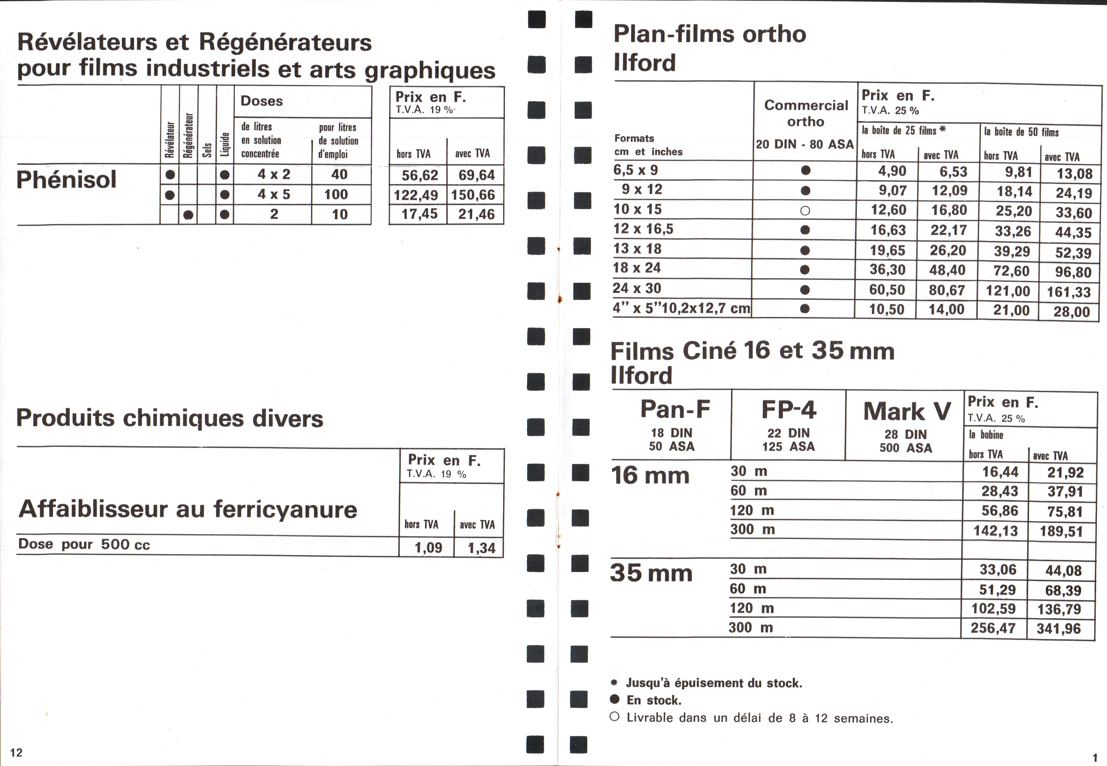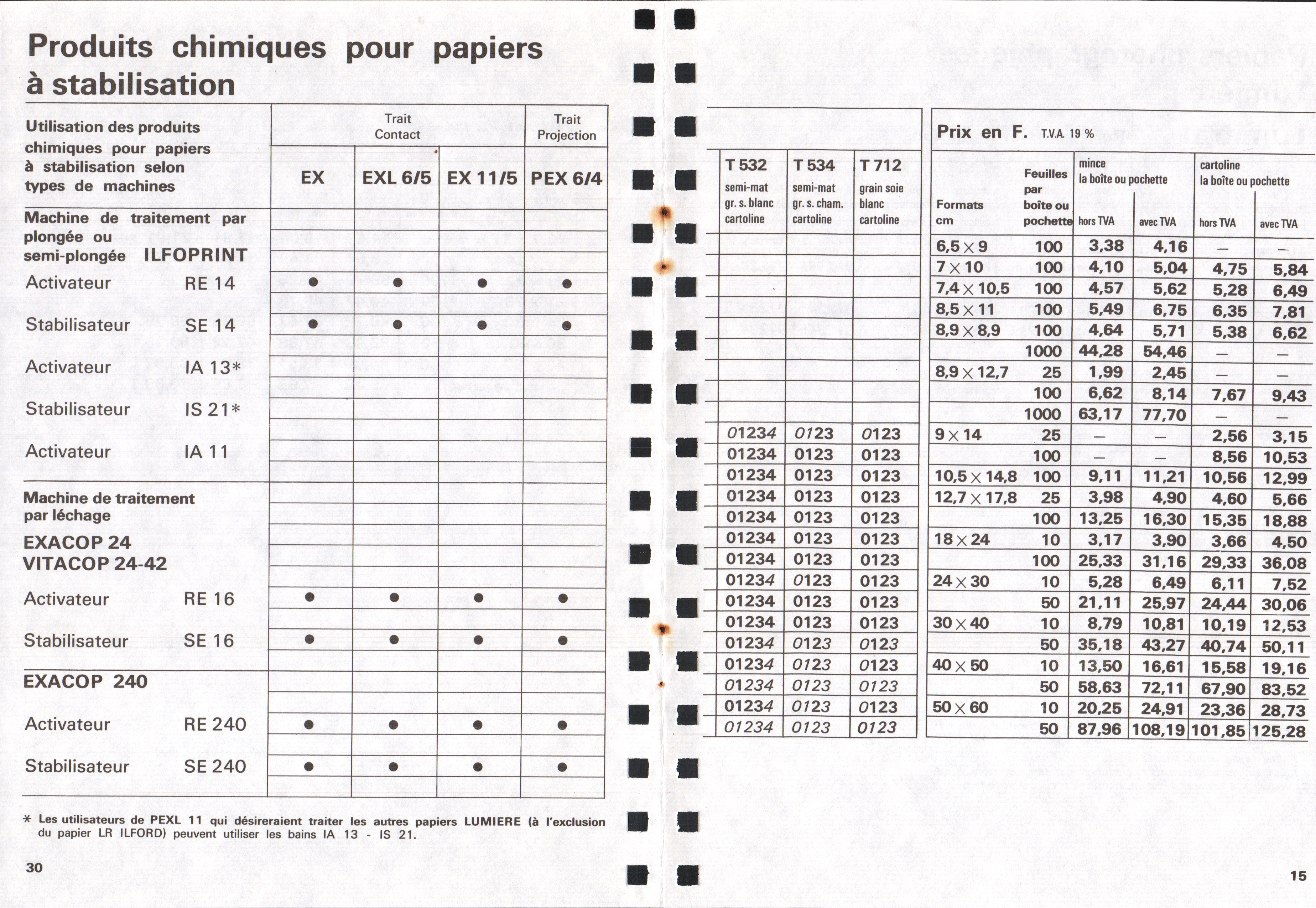 Tarif Films Papiers Filtres Produits Telcolor - mai 1955