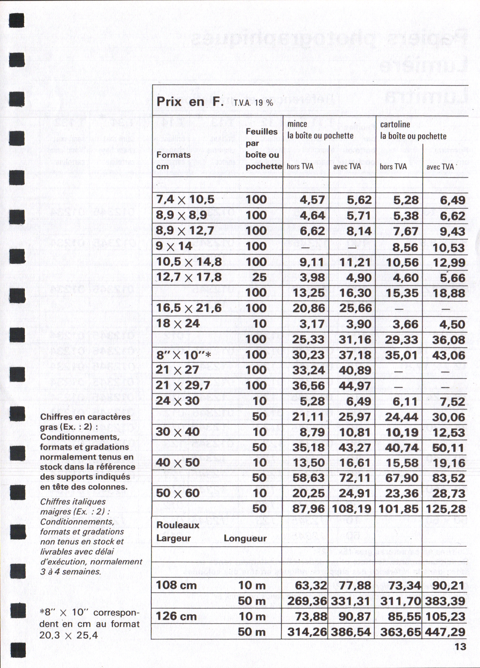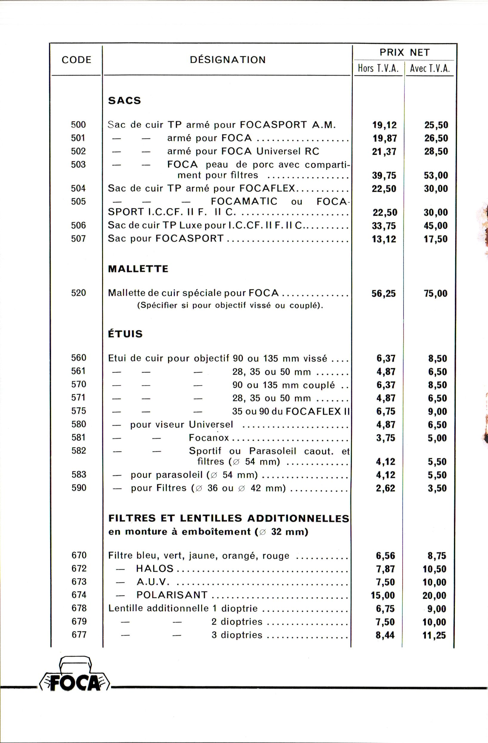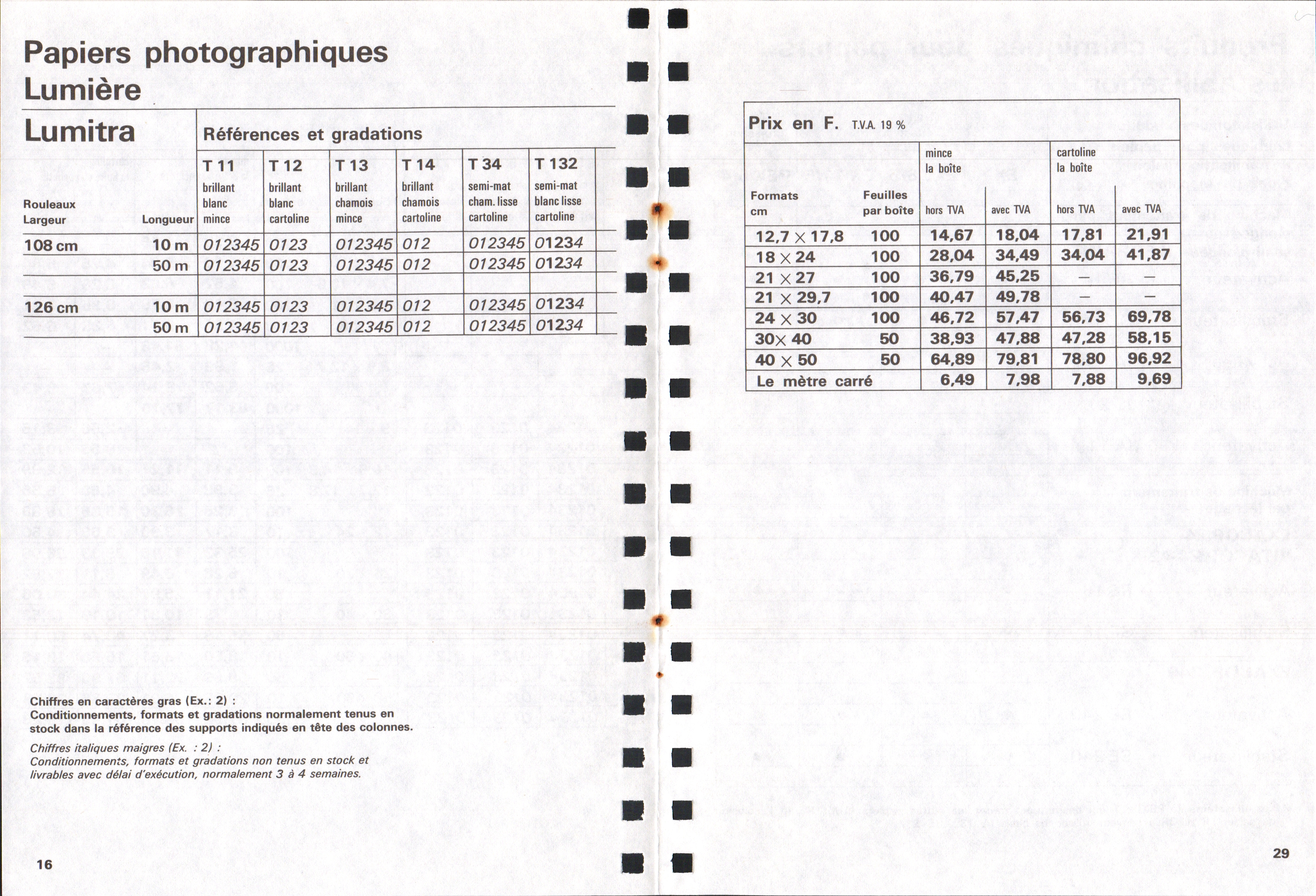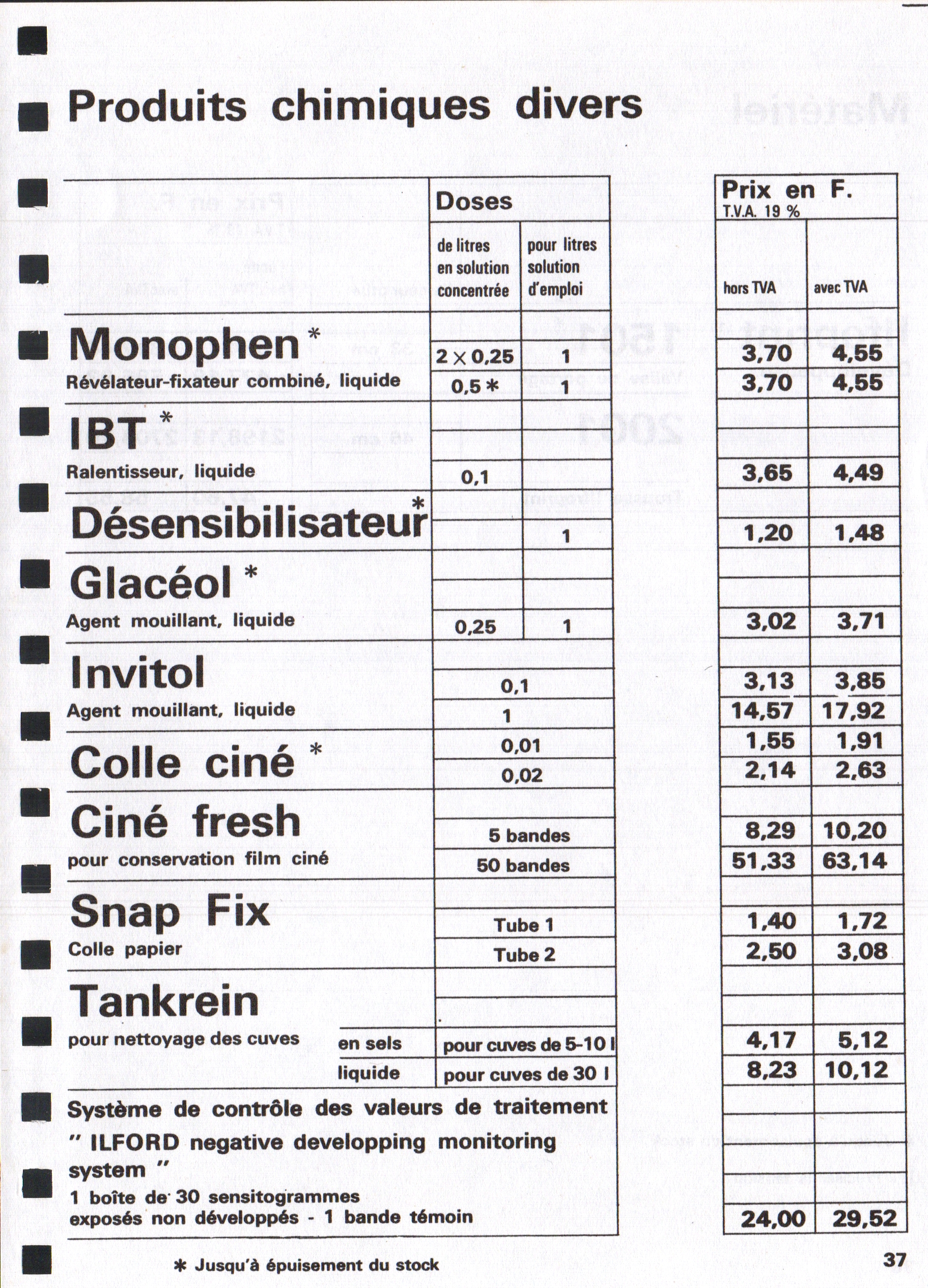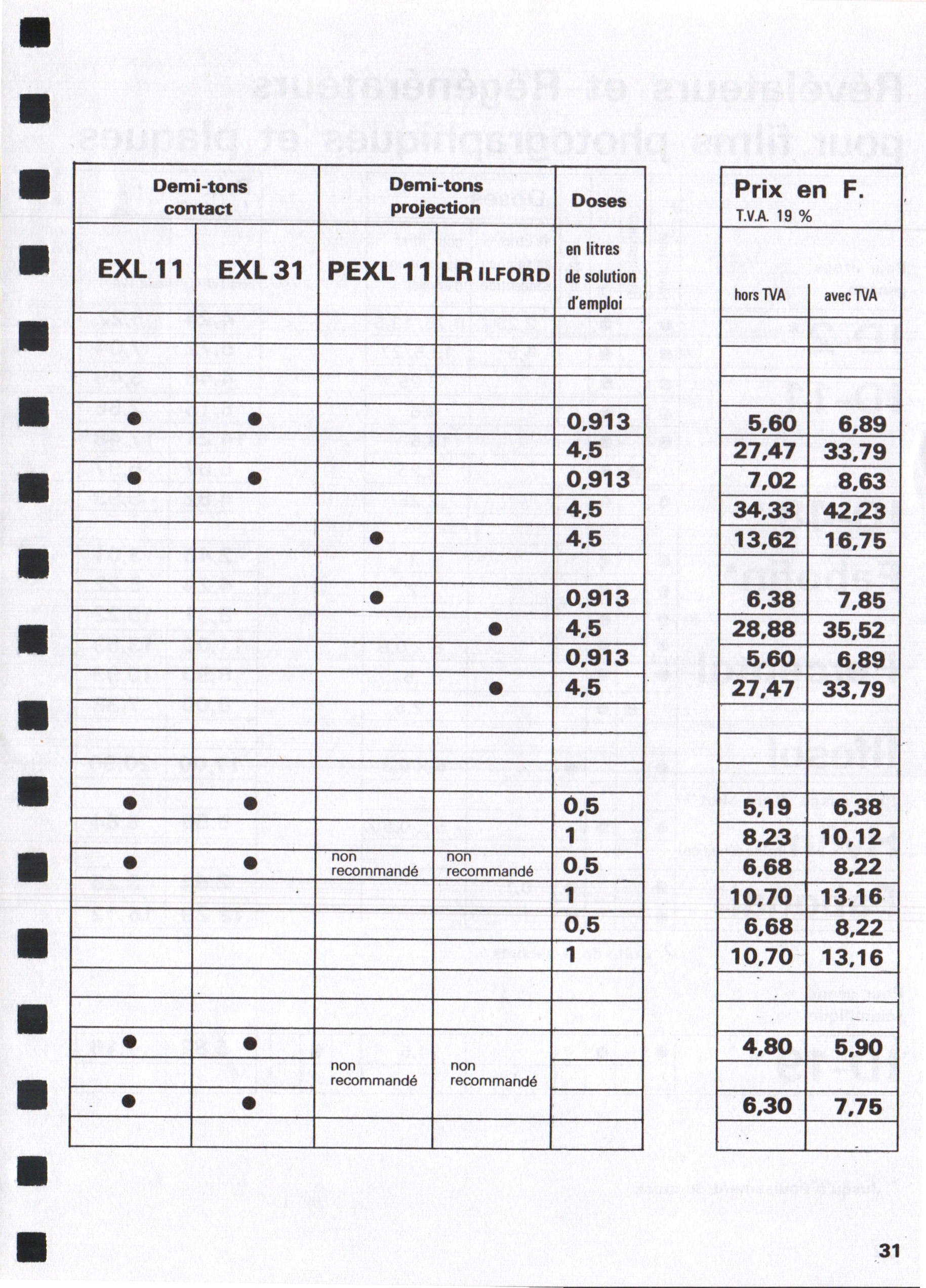 Tarif Films Papiers Filtres Produits Telcolor - mai 1955