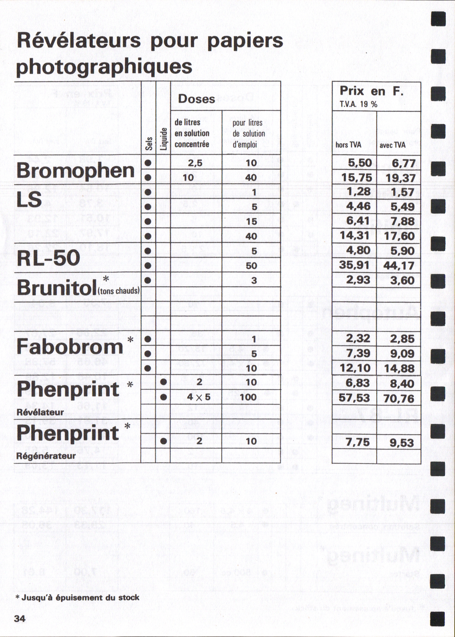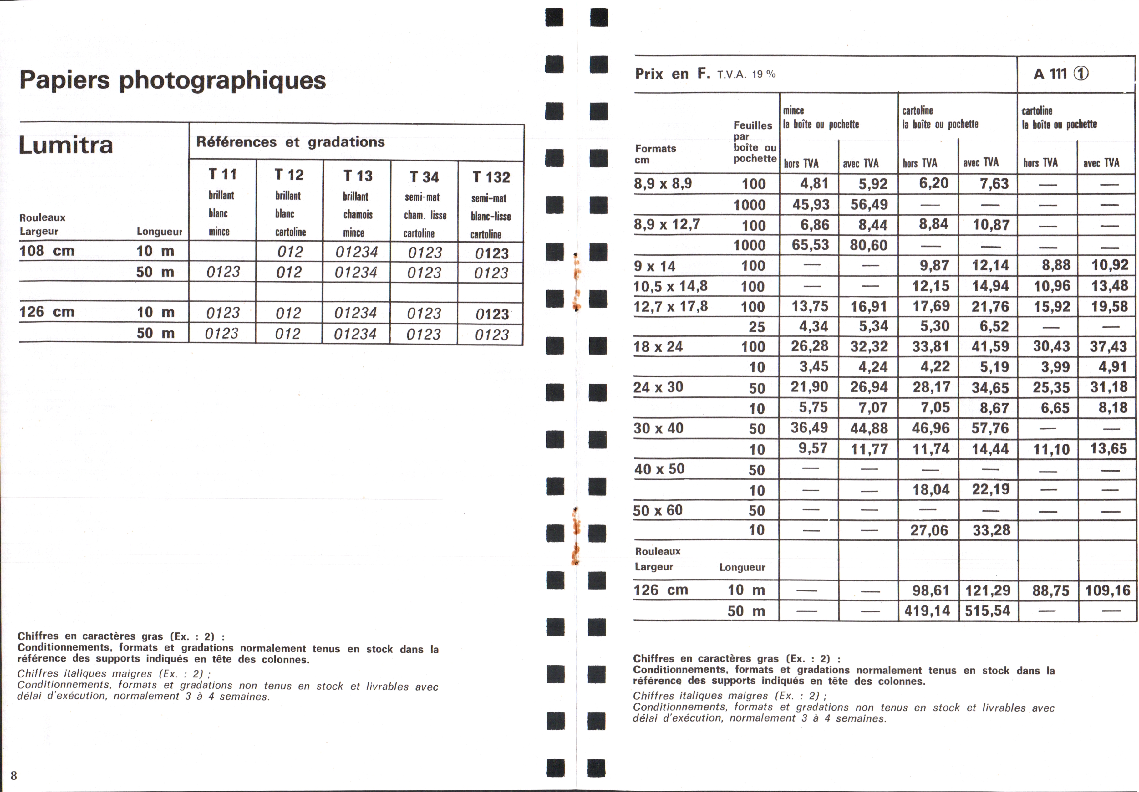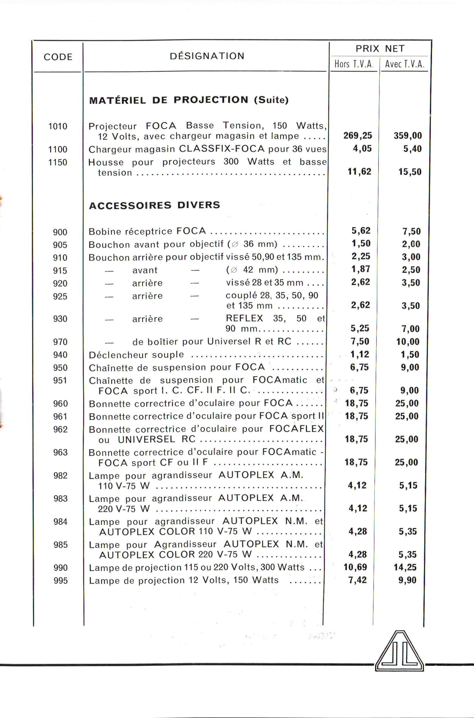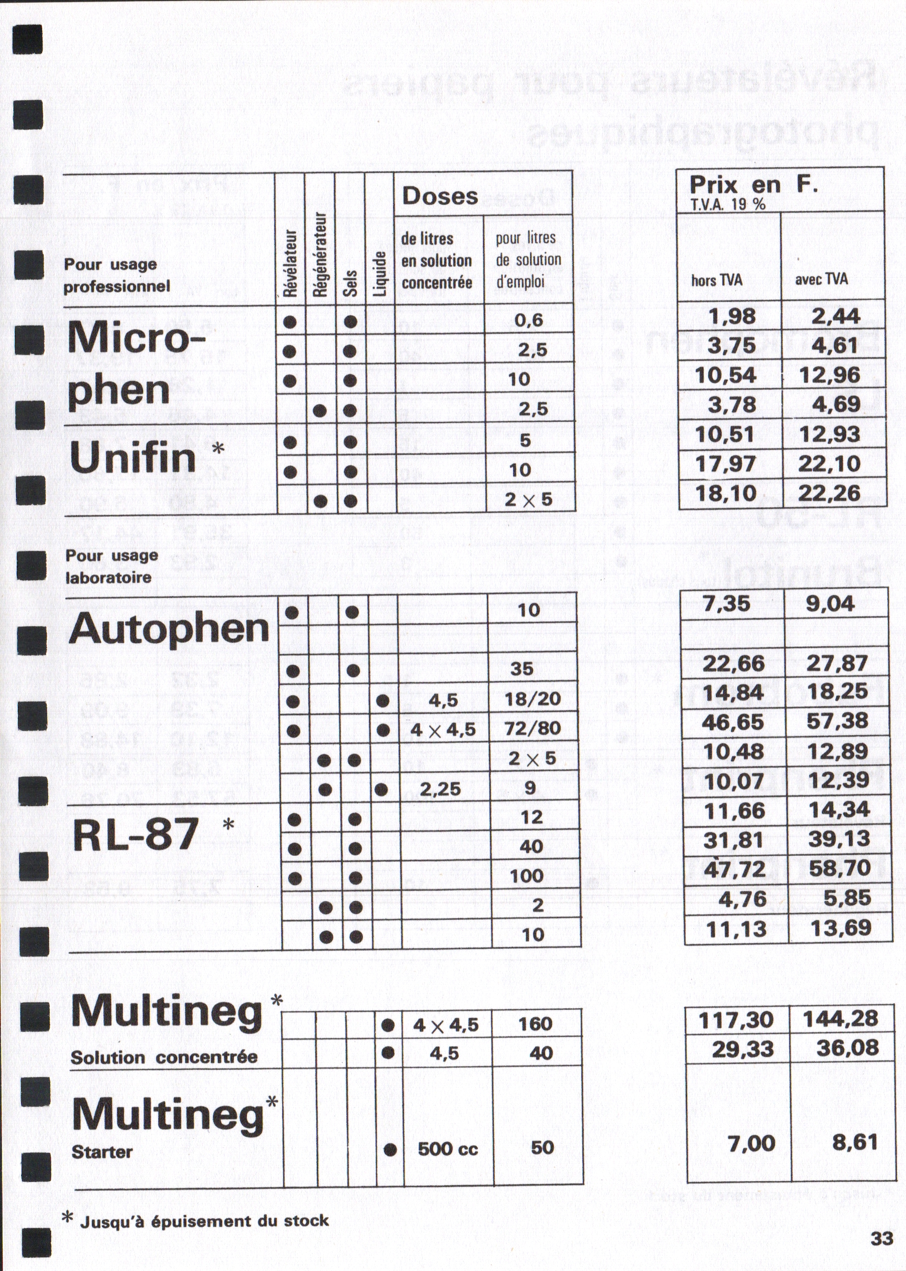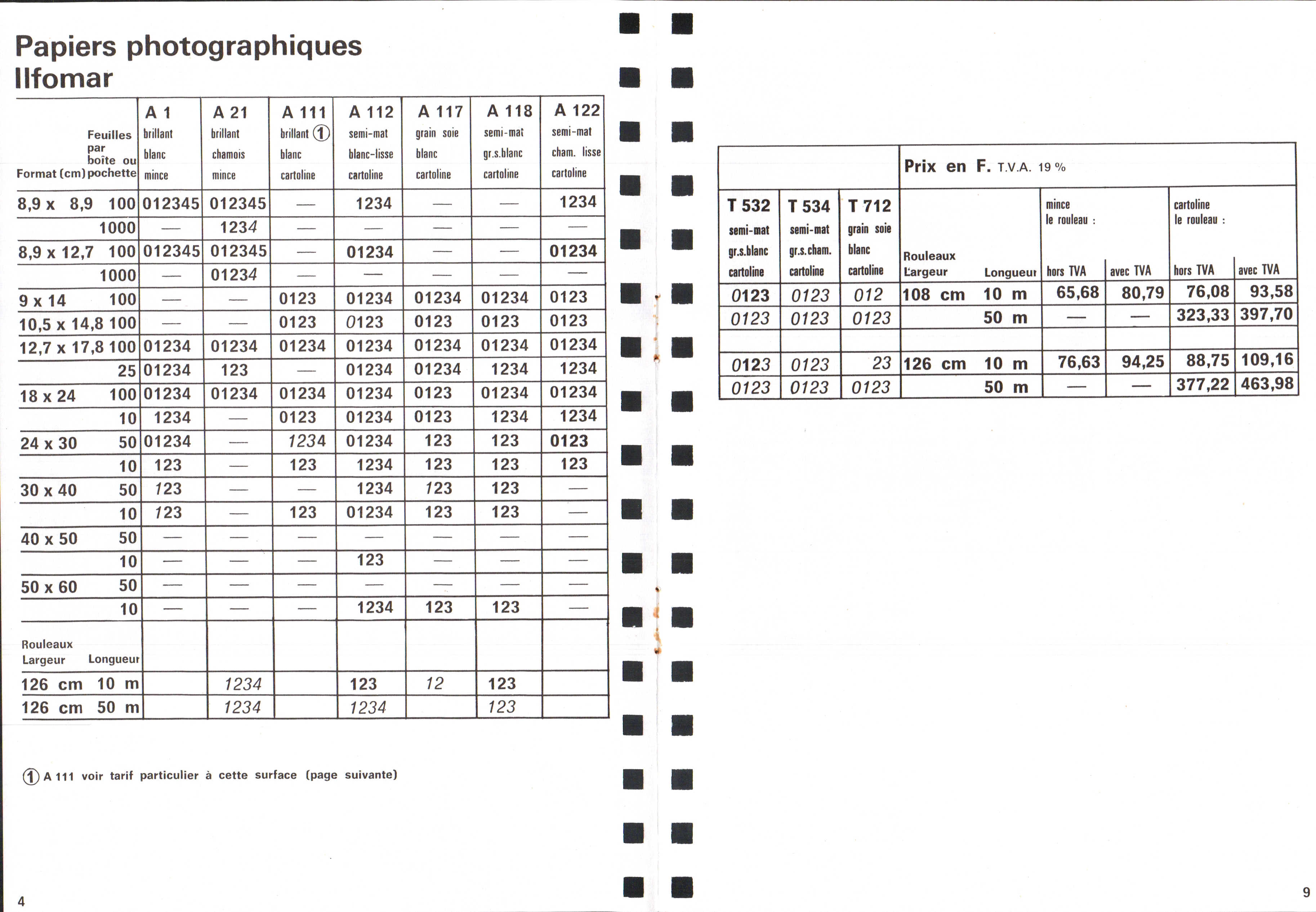 Tarif Films Papiers Filtres Produits Telcolor - mai 1955