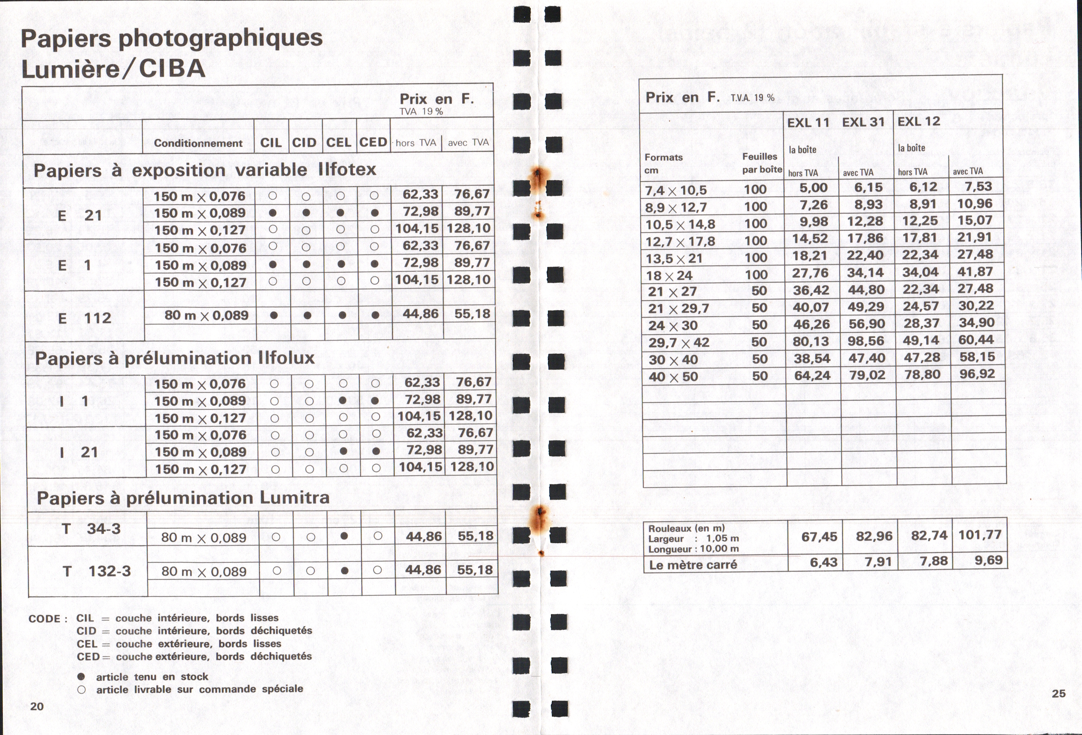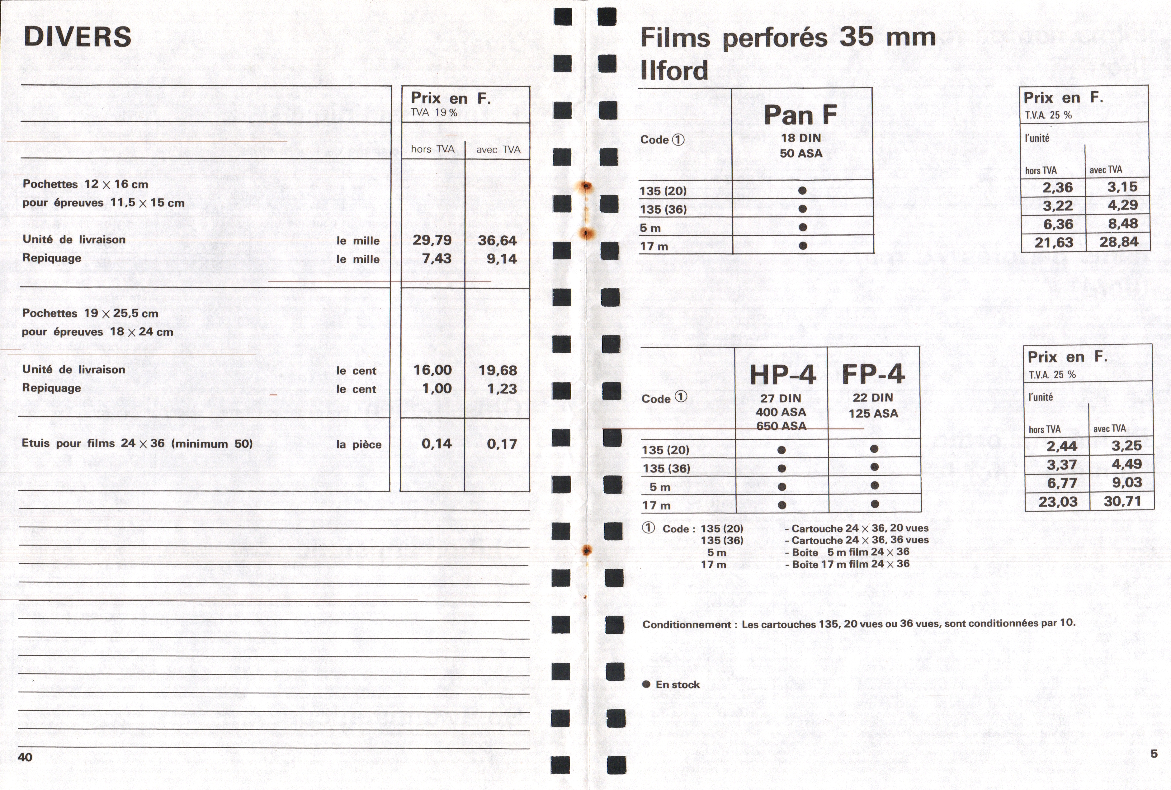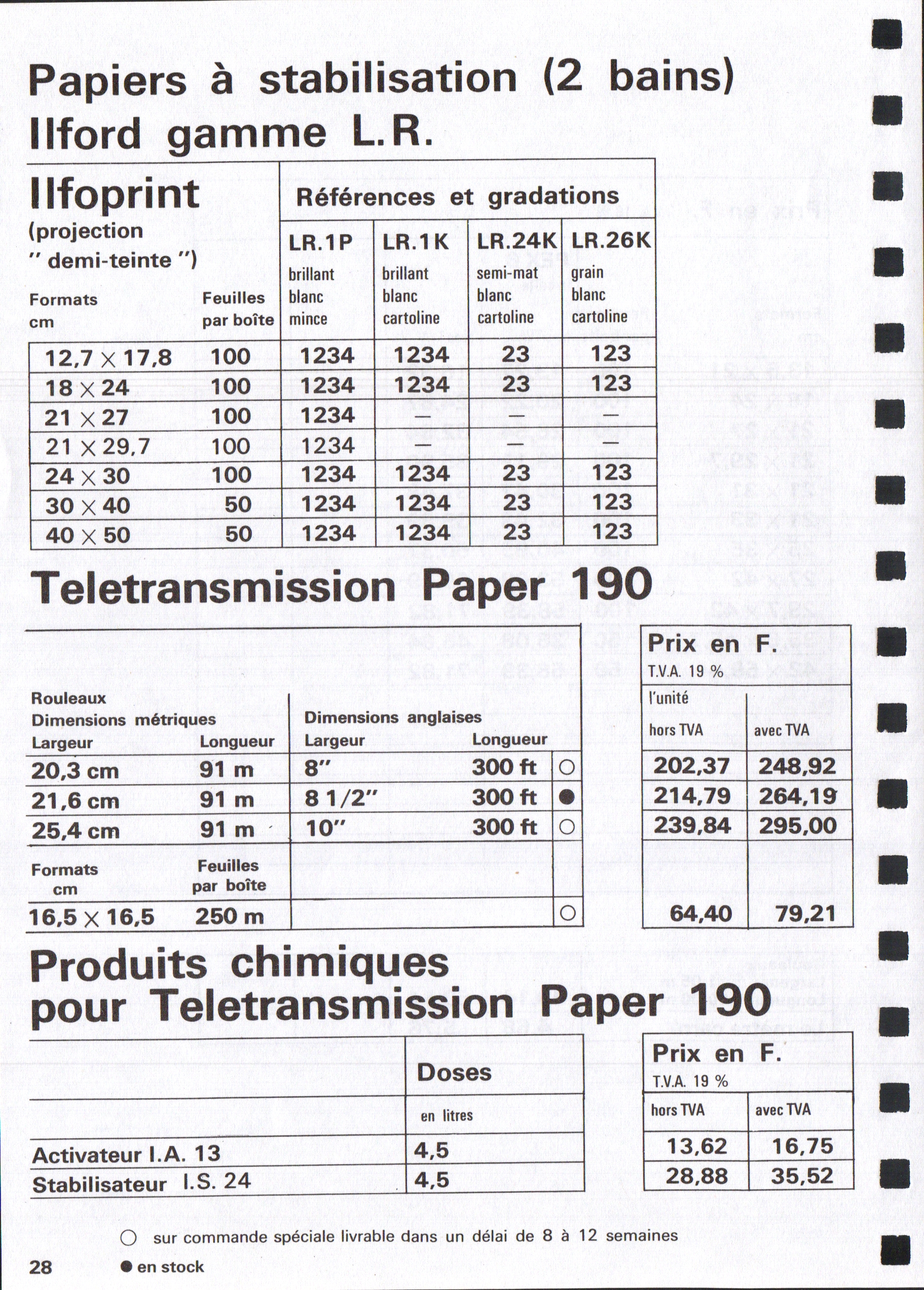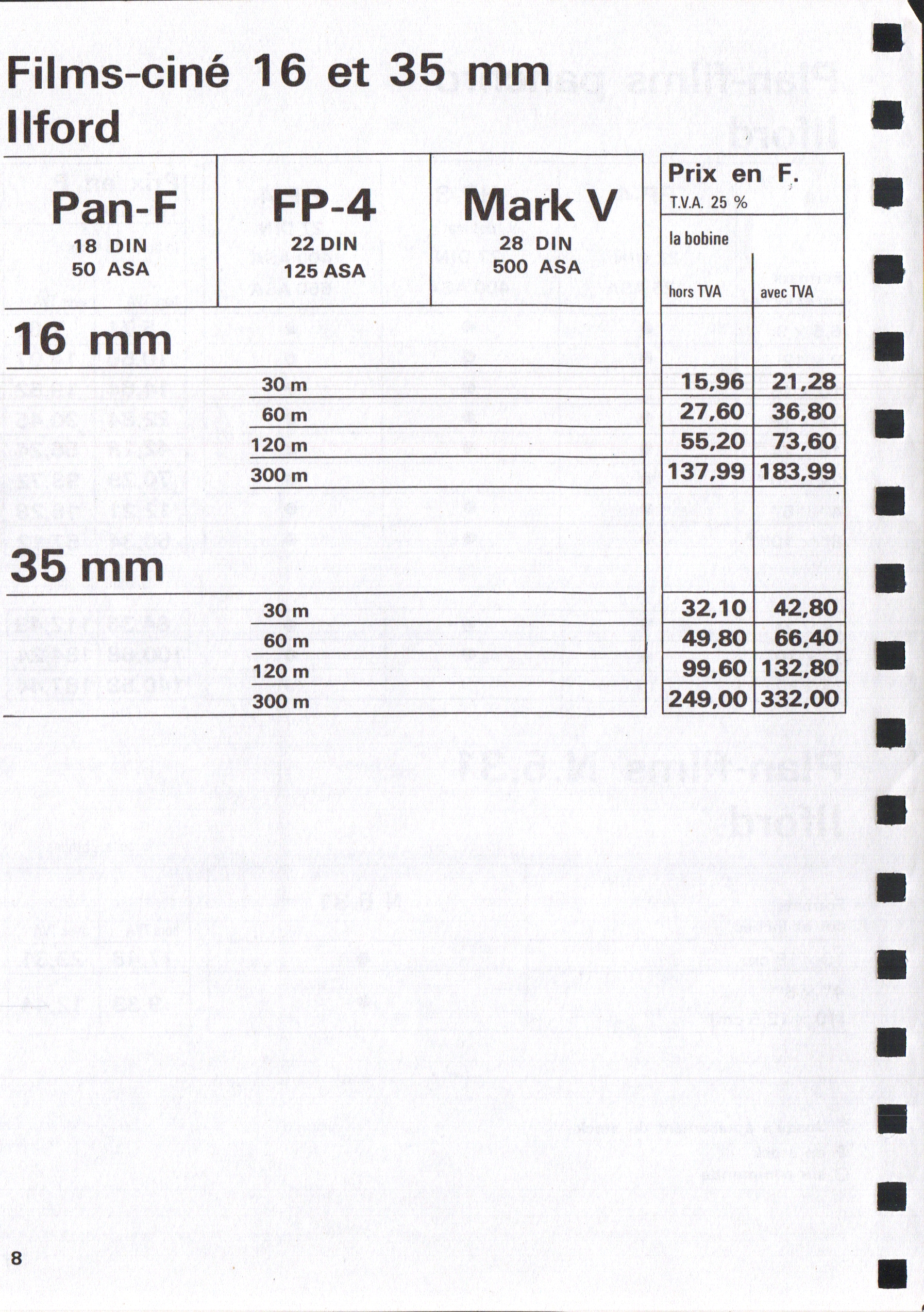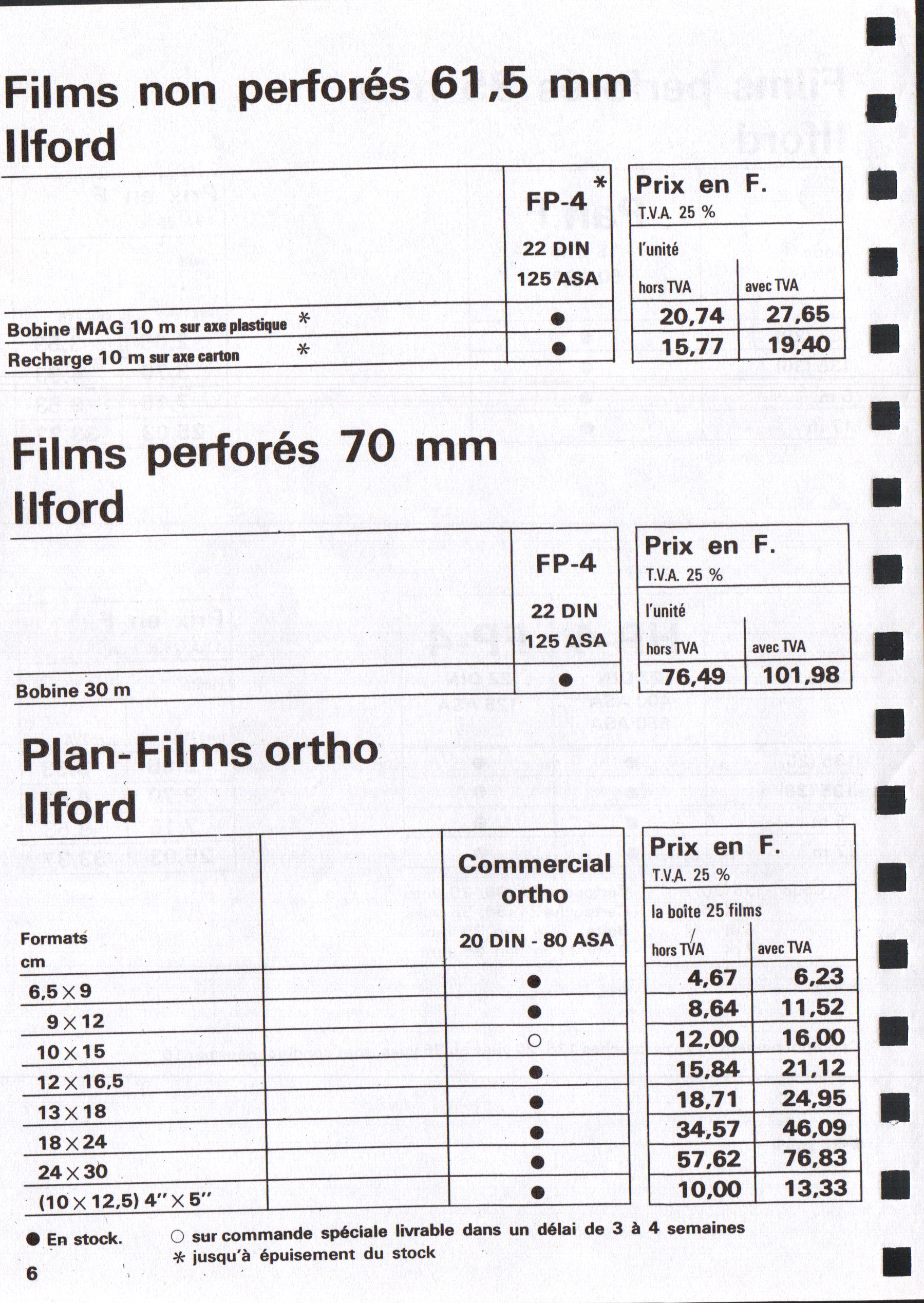 Tarif Films Papiers Filtres Produits Telcolor - mai 1955