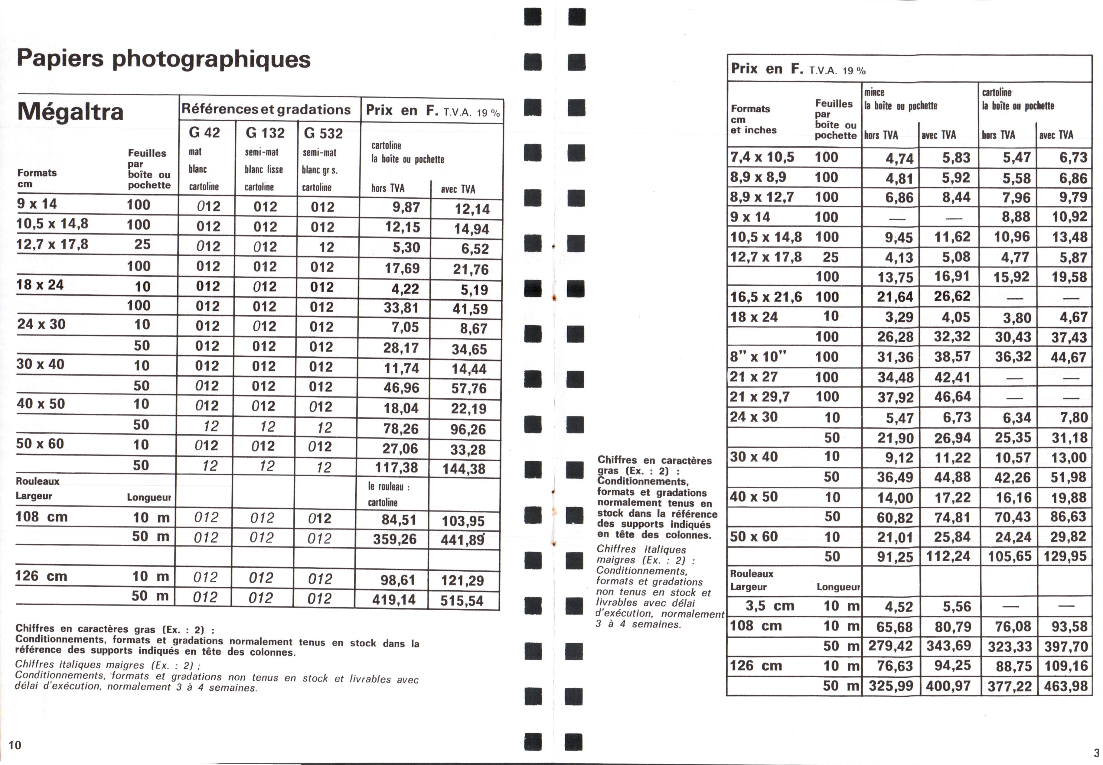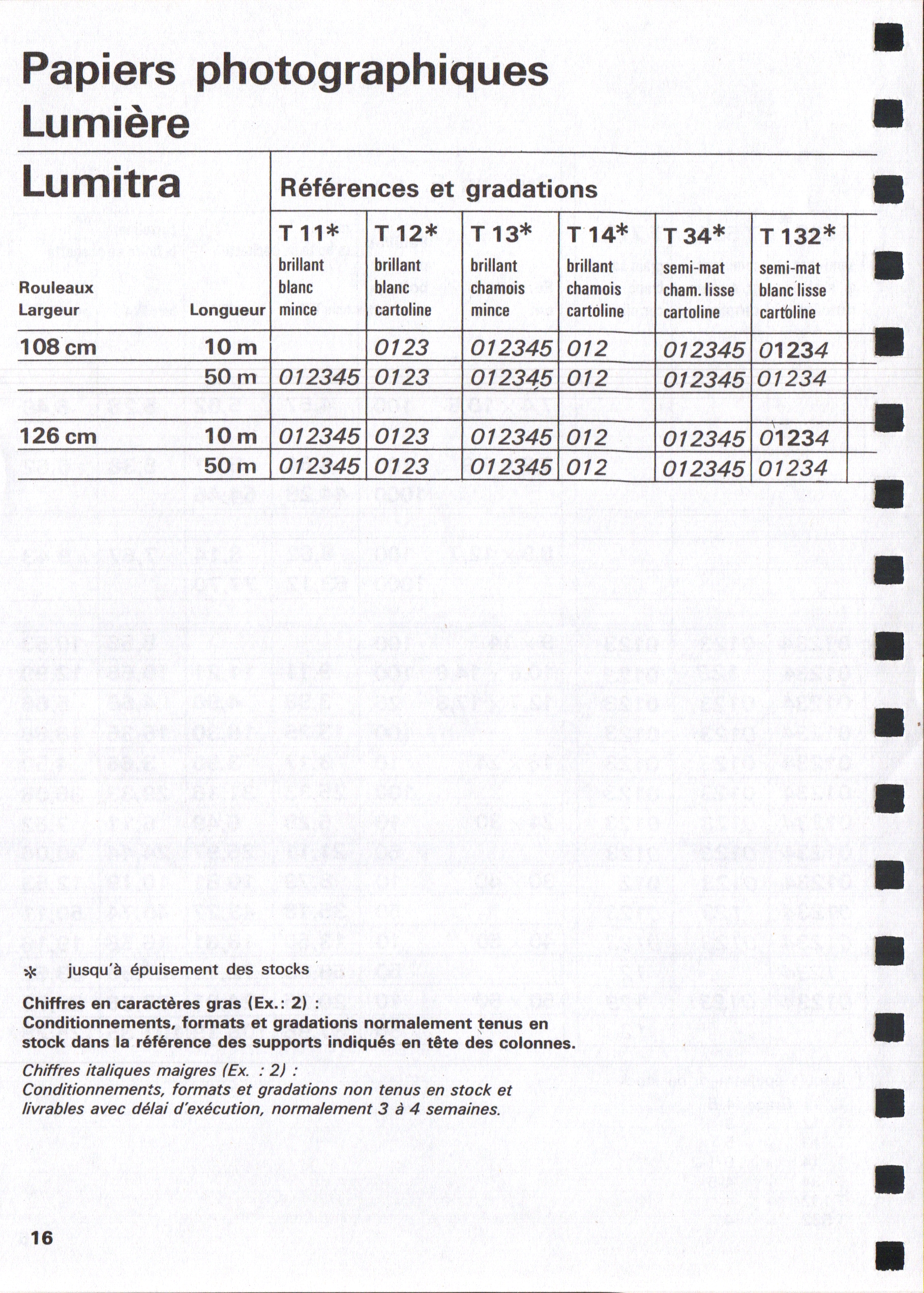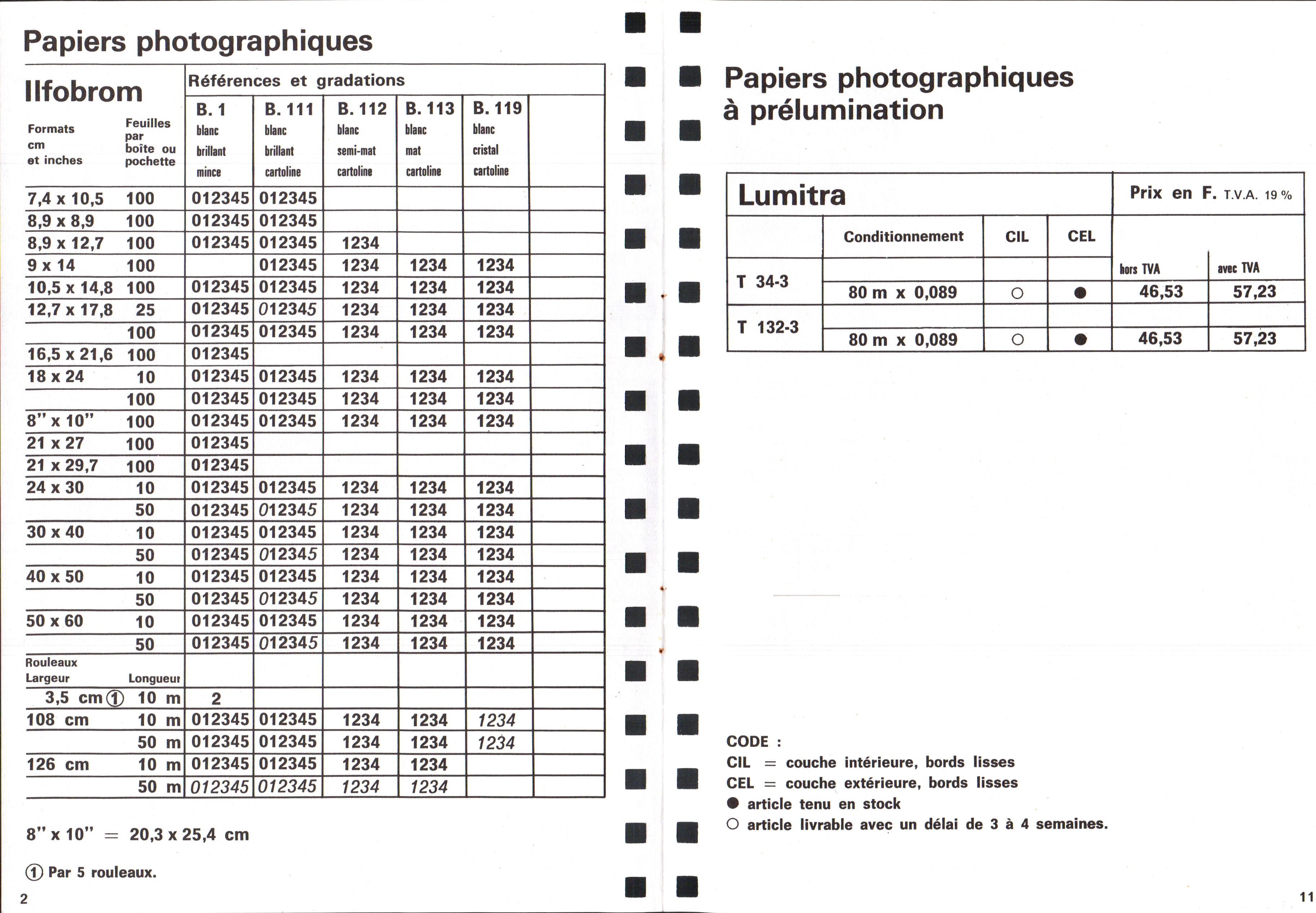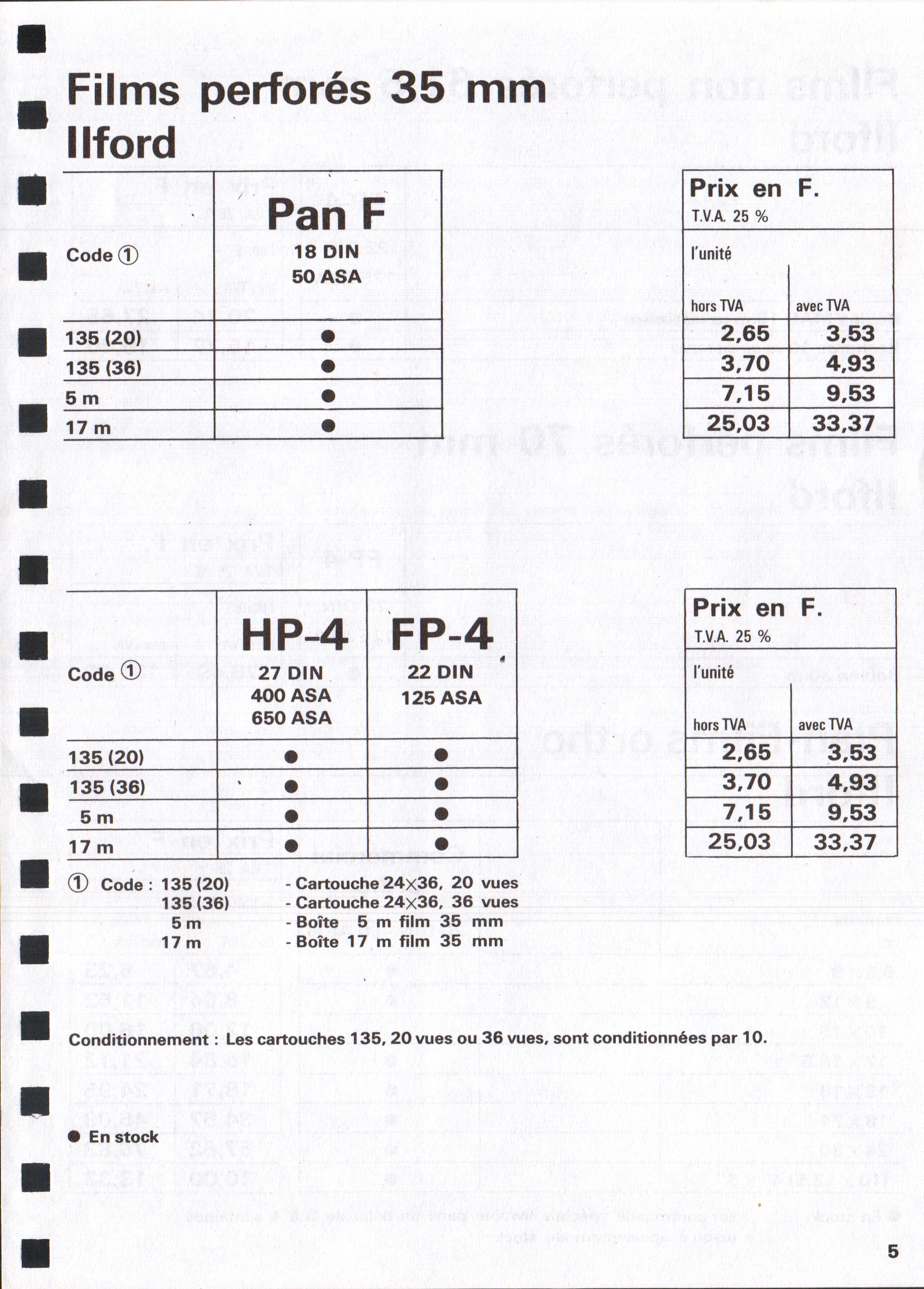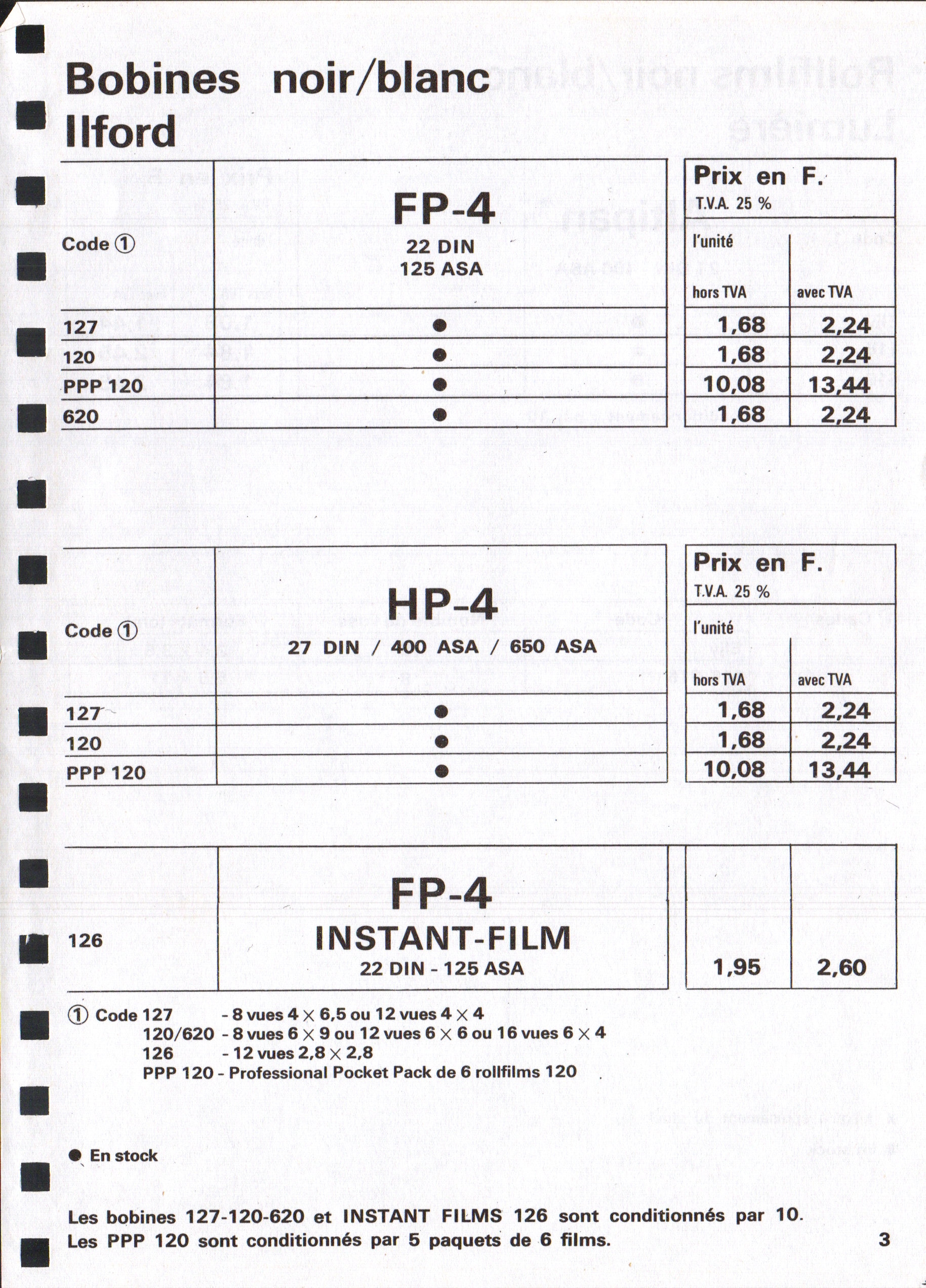 Tarif Films Papiers Filtres Produits Telcolor - mai 1955