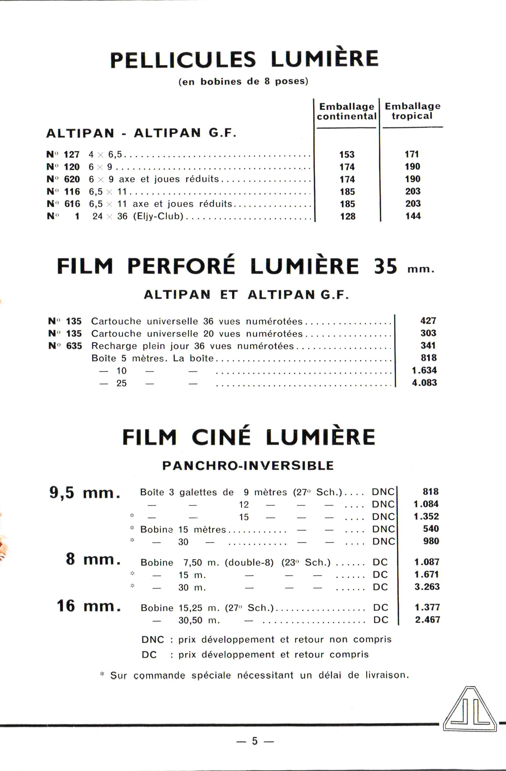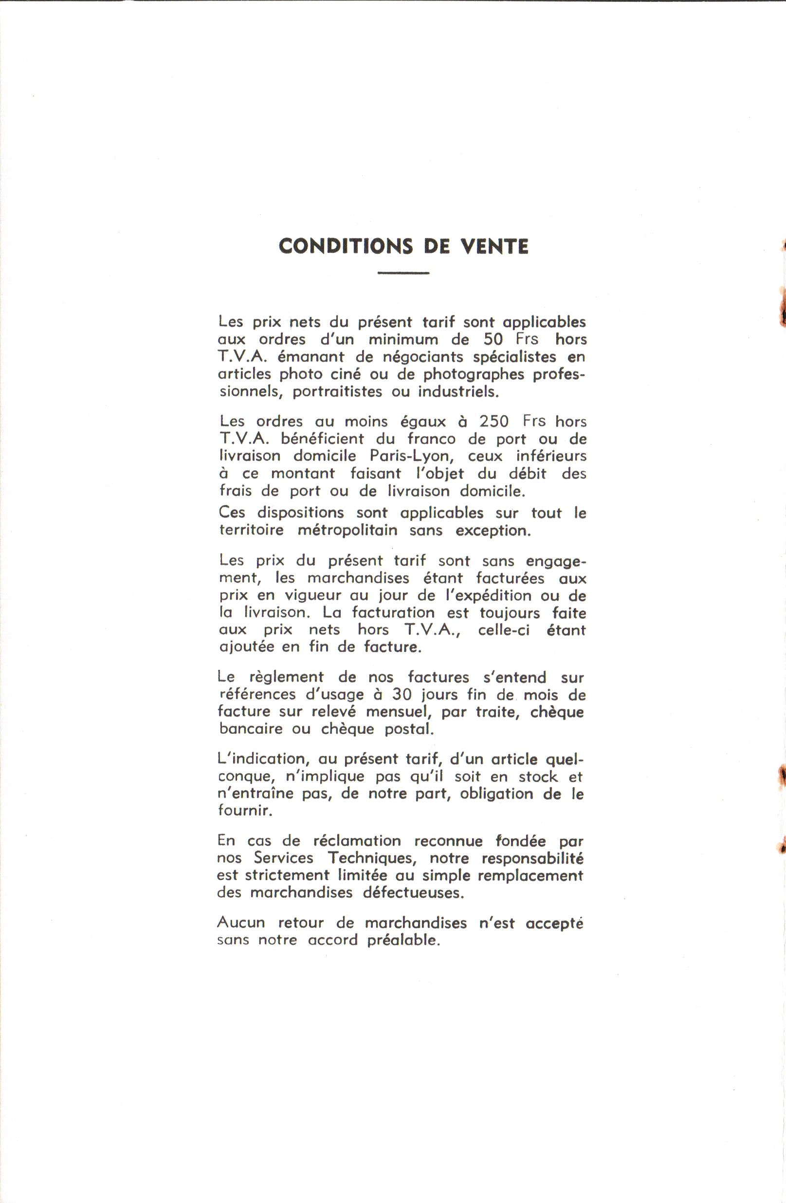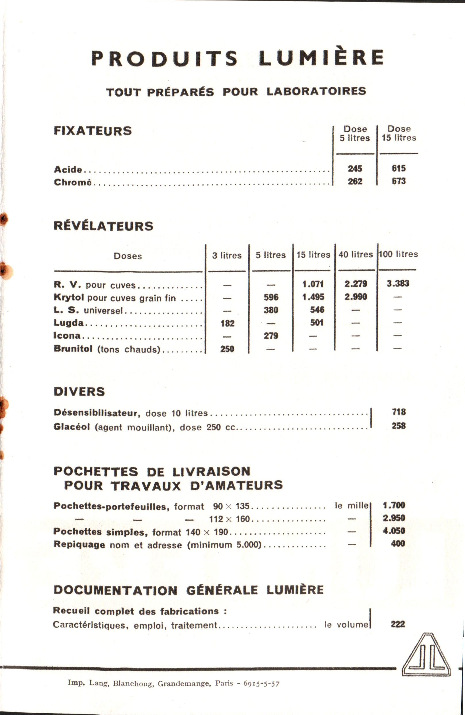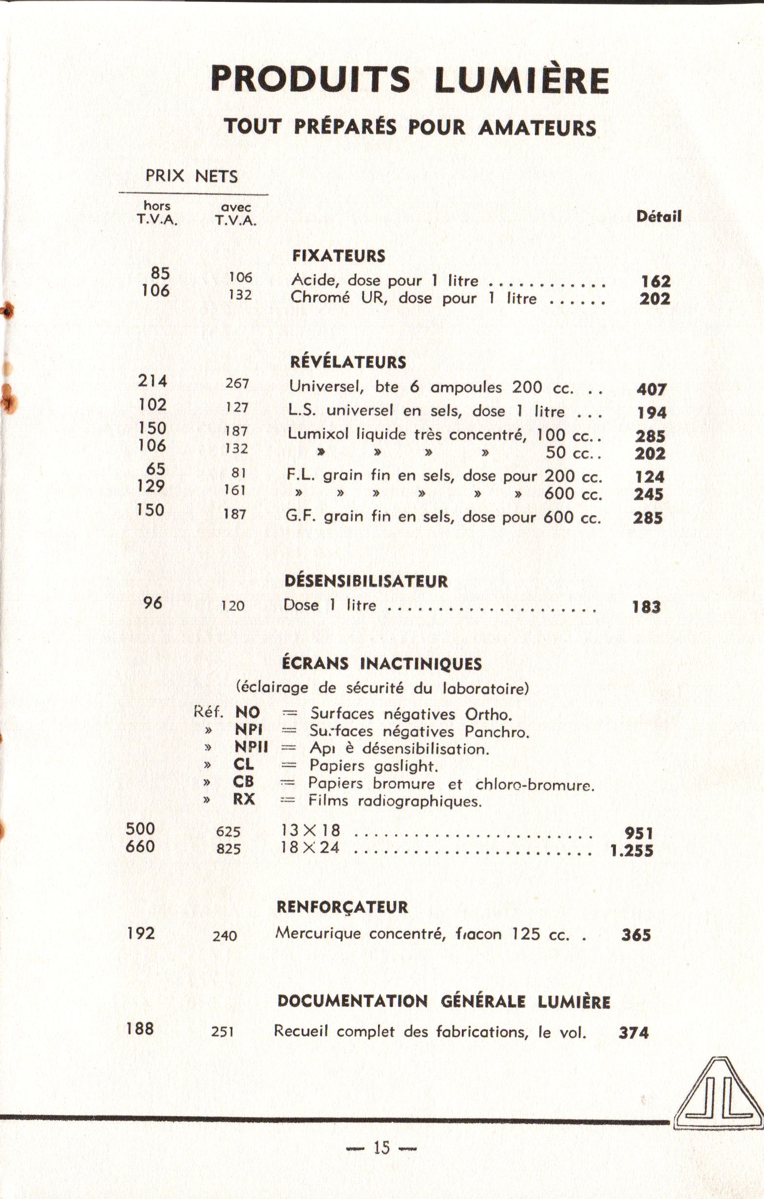 - Tarif Films Papiers Filtres Produits Telcolor - mai 1955
