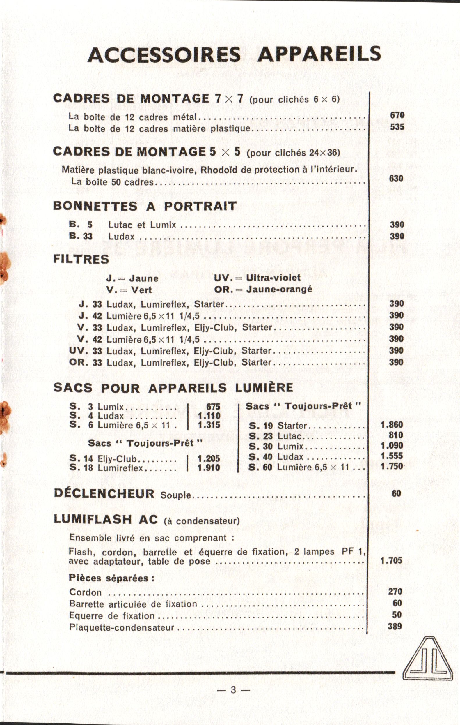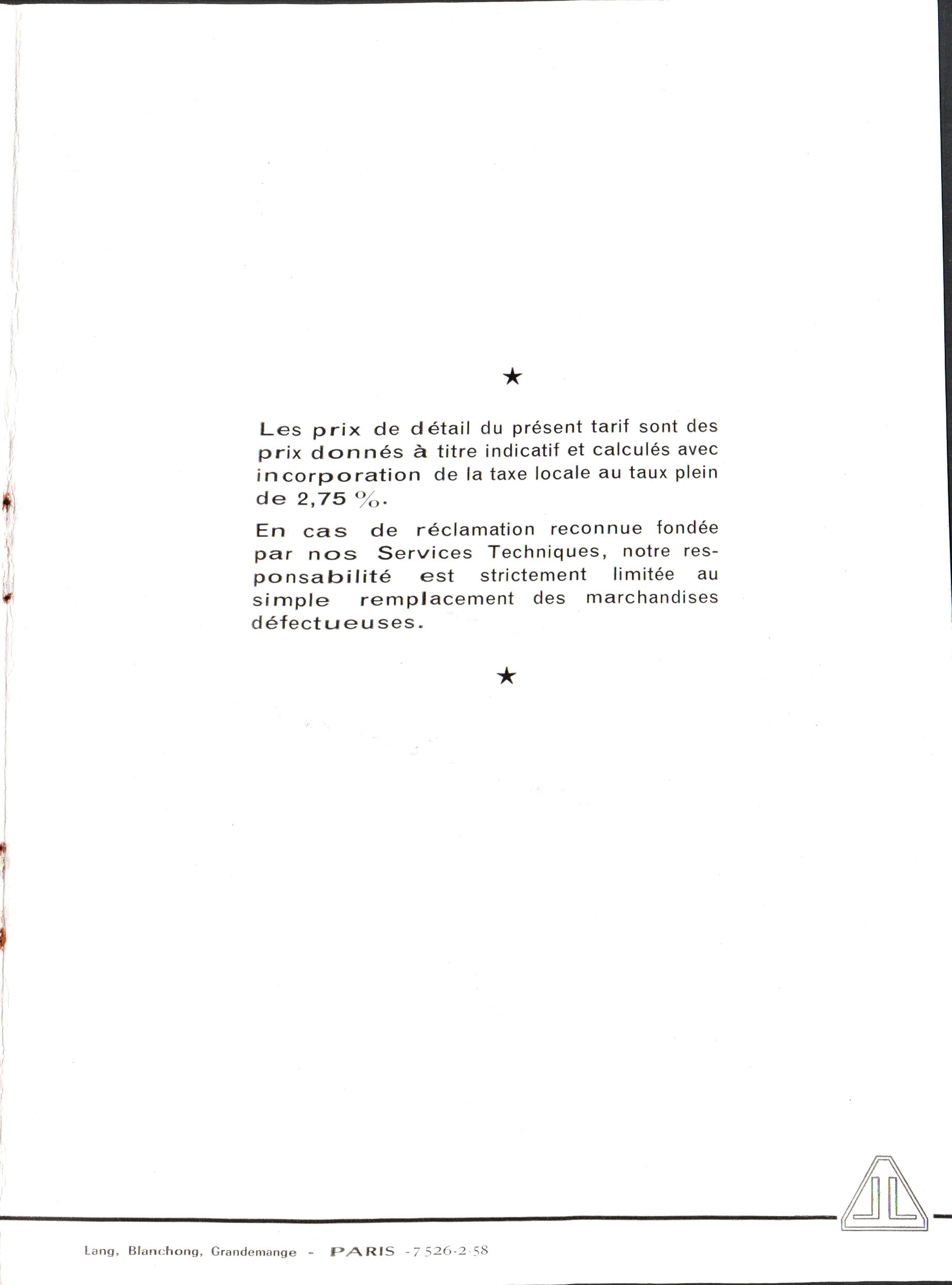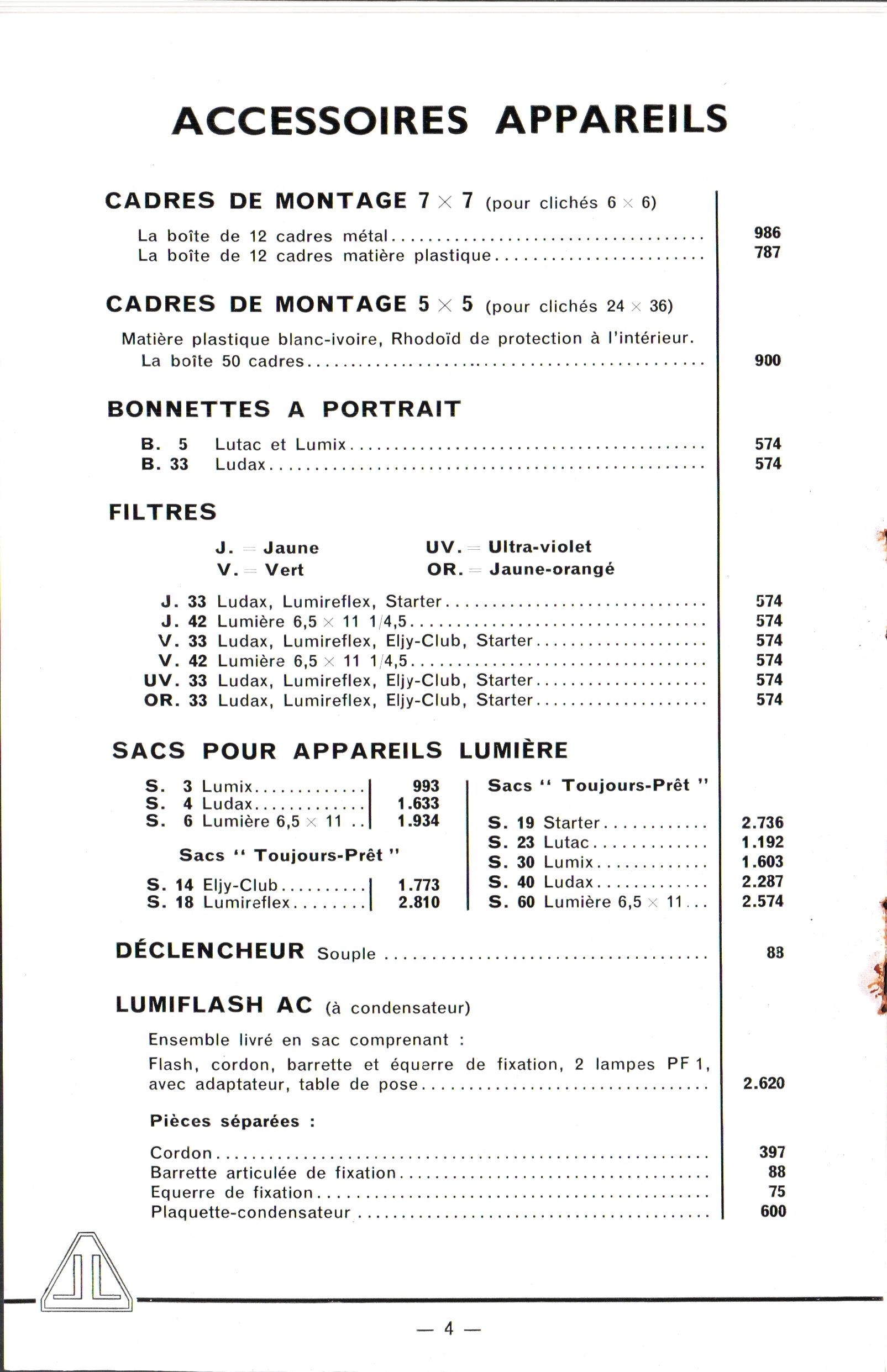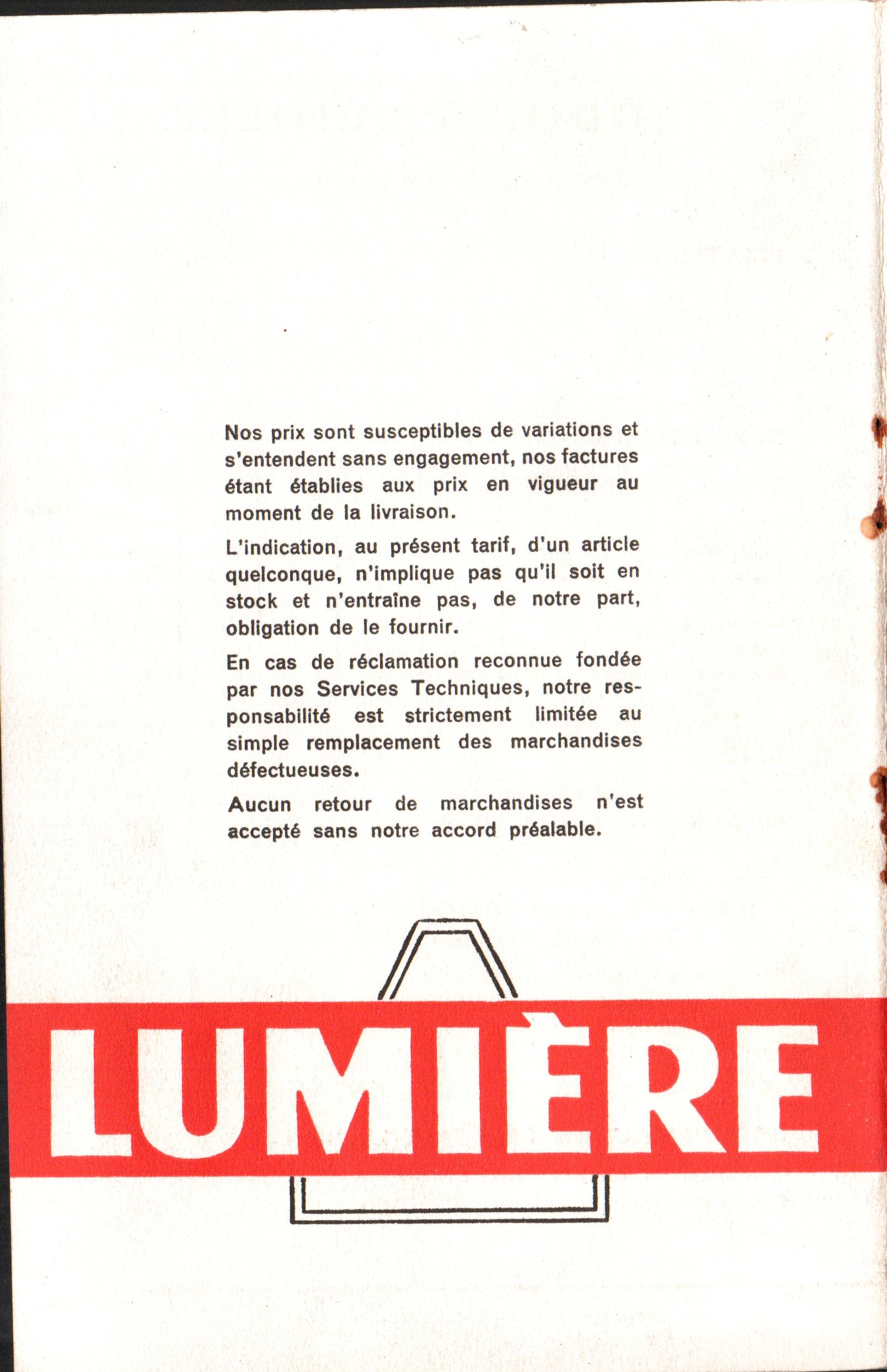 - Tarif Films Papiers Filtres Produits Telcolor - mai 1955