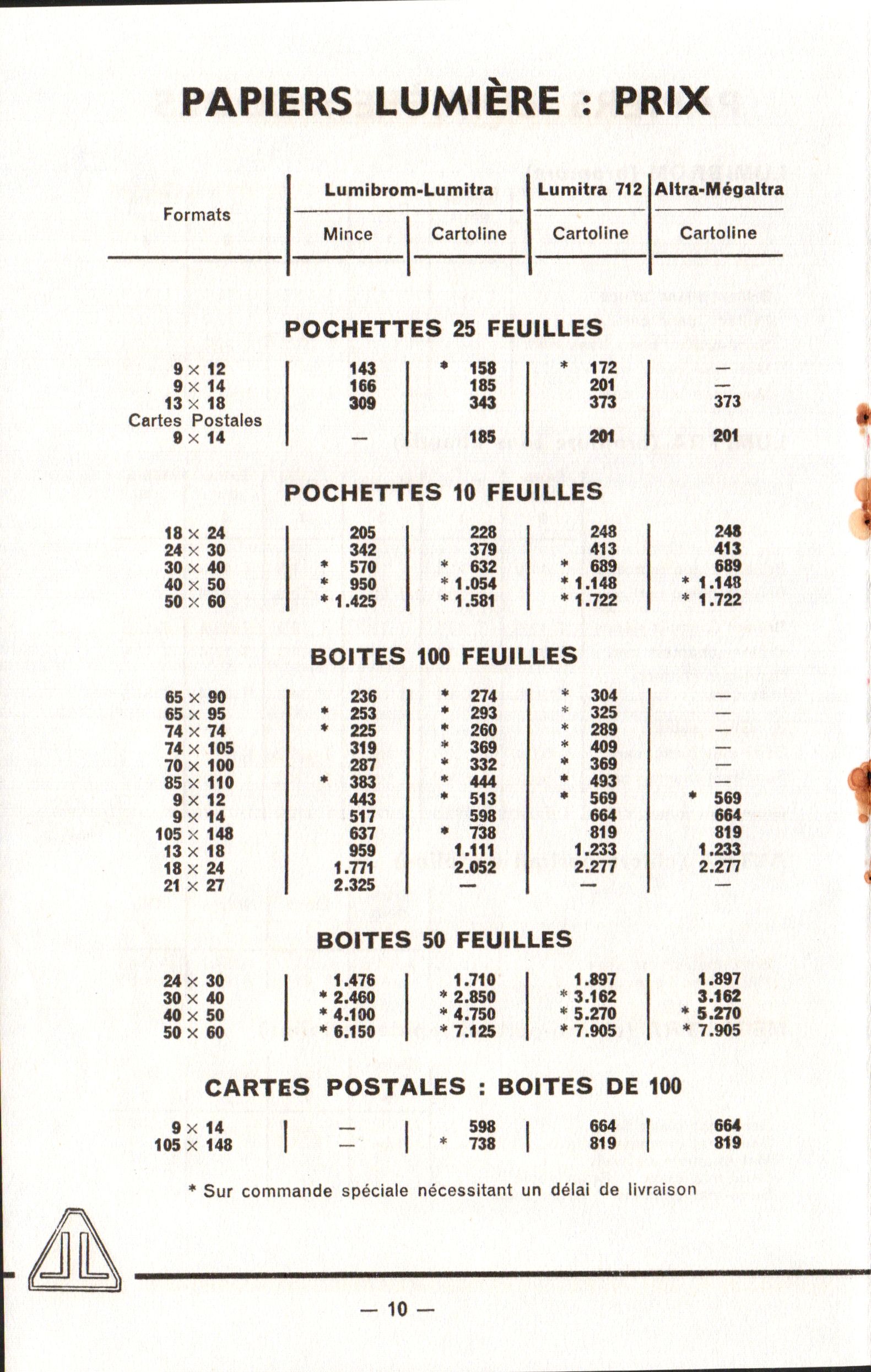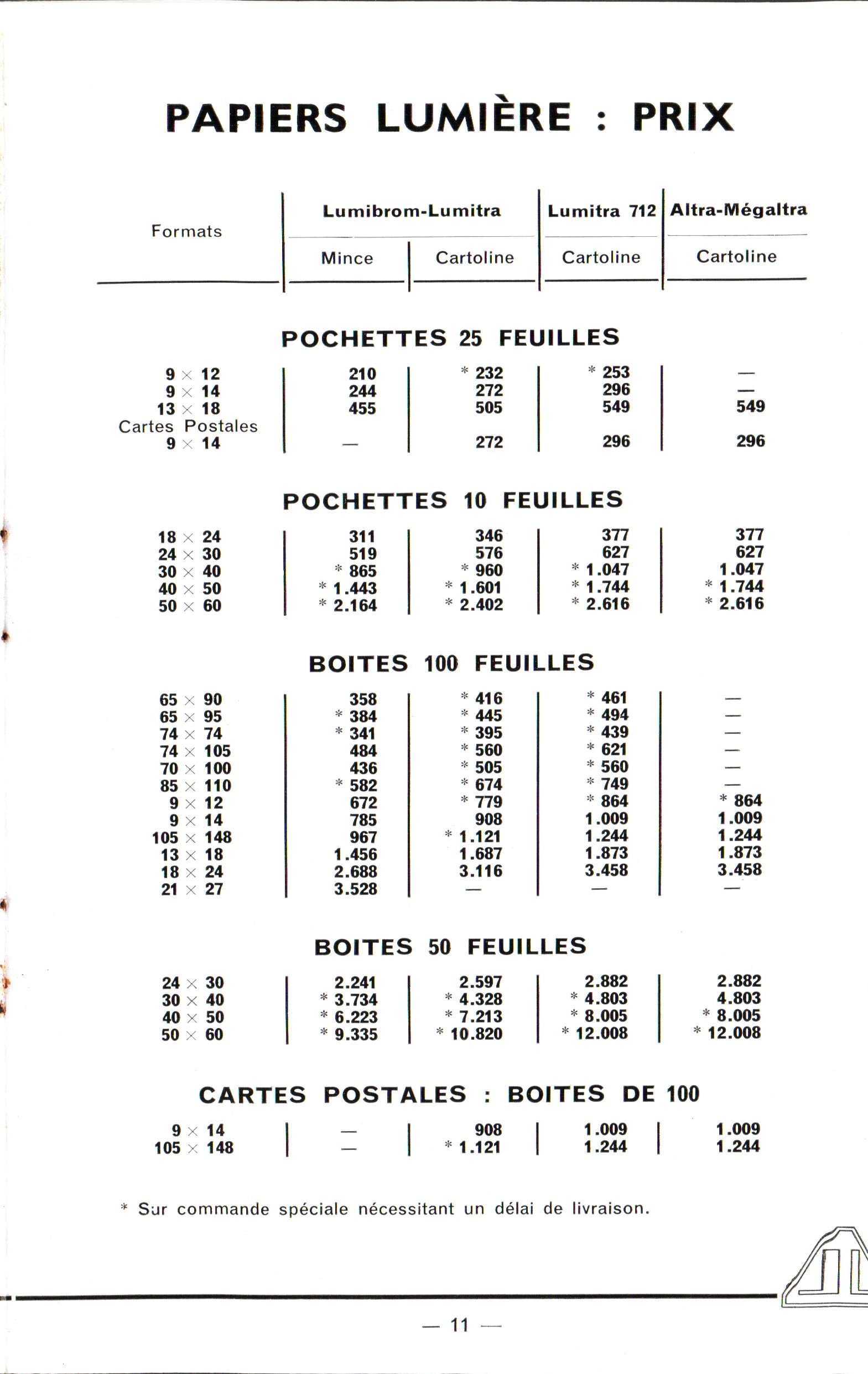 - Prix courant Plaques Papiers Produits - septembre 1922