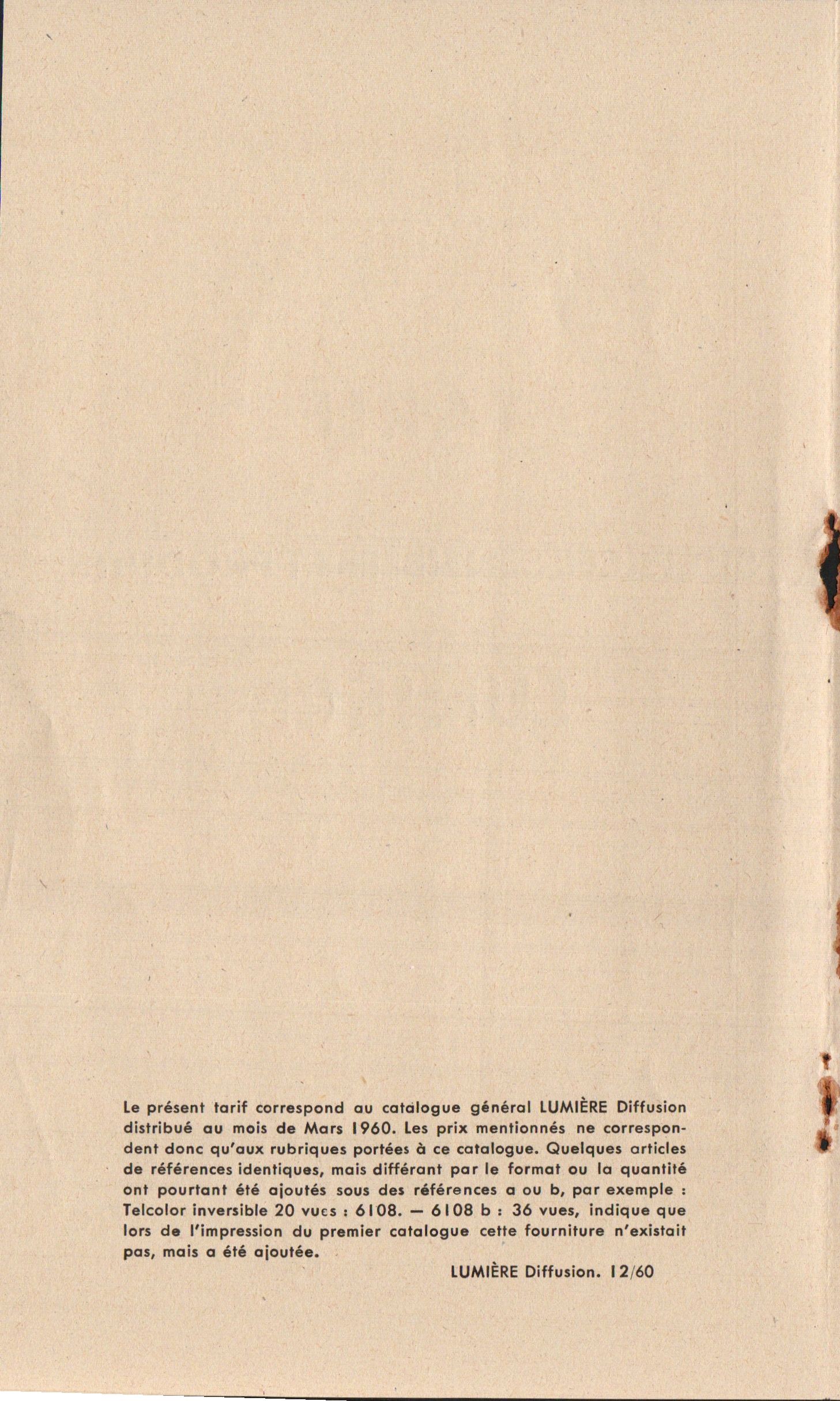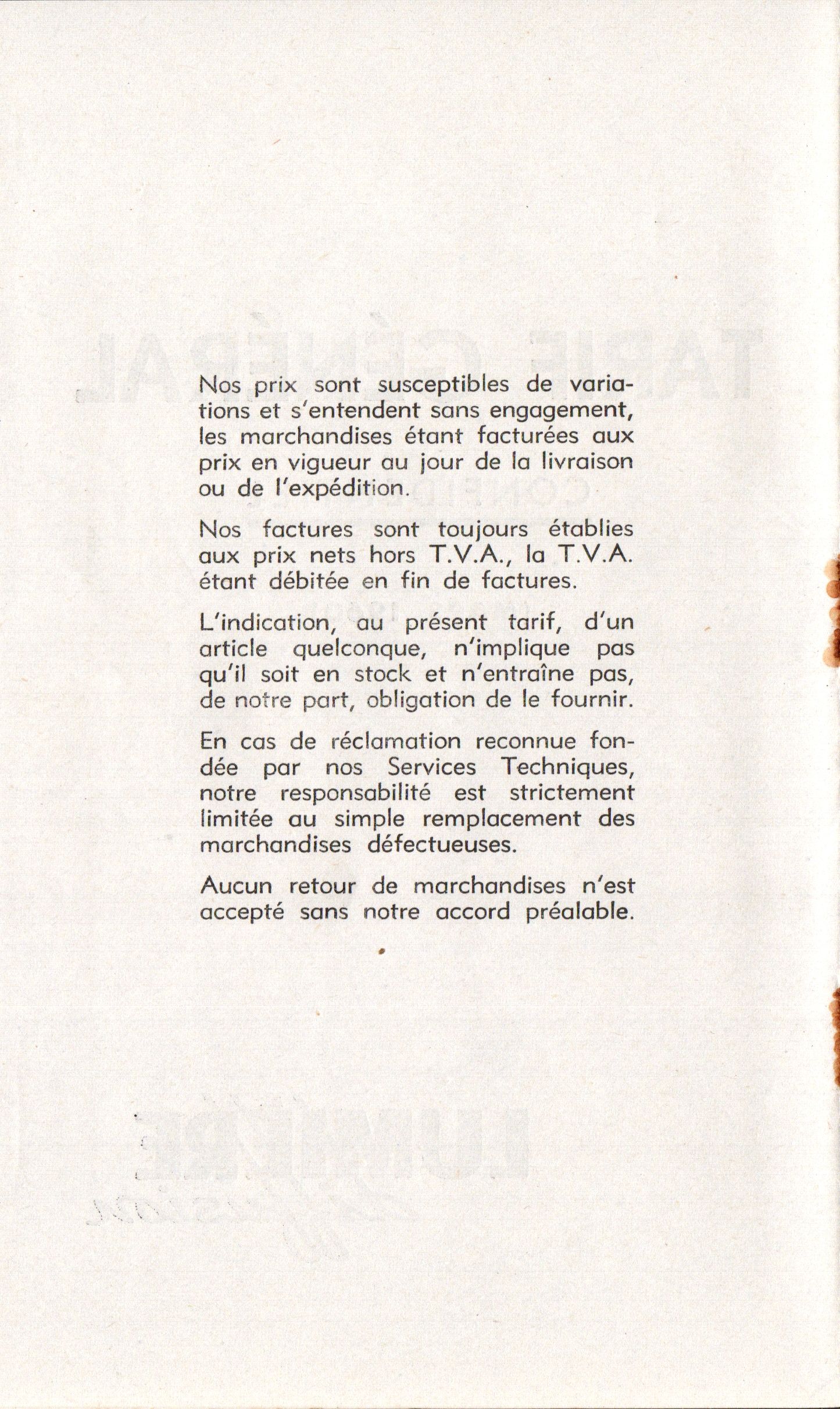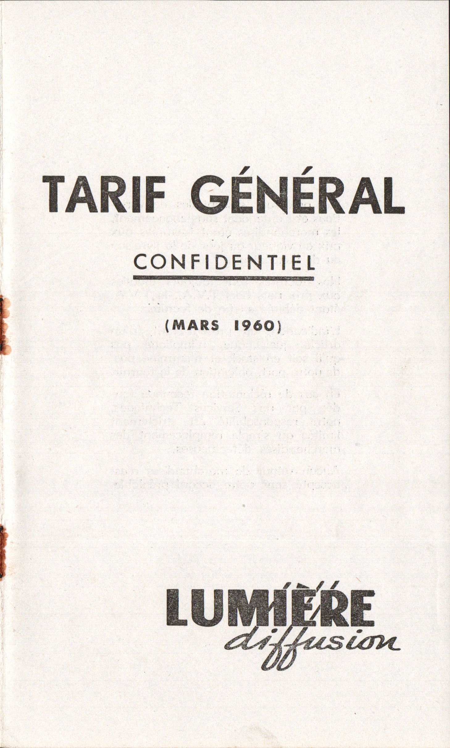 - Tarif général confidentiel - mars 1960