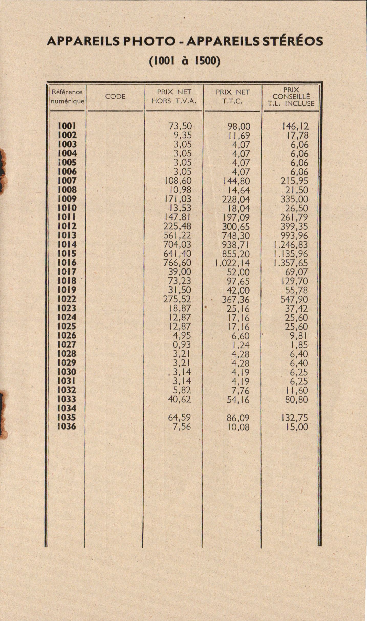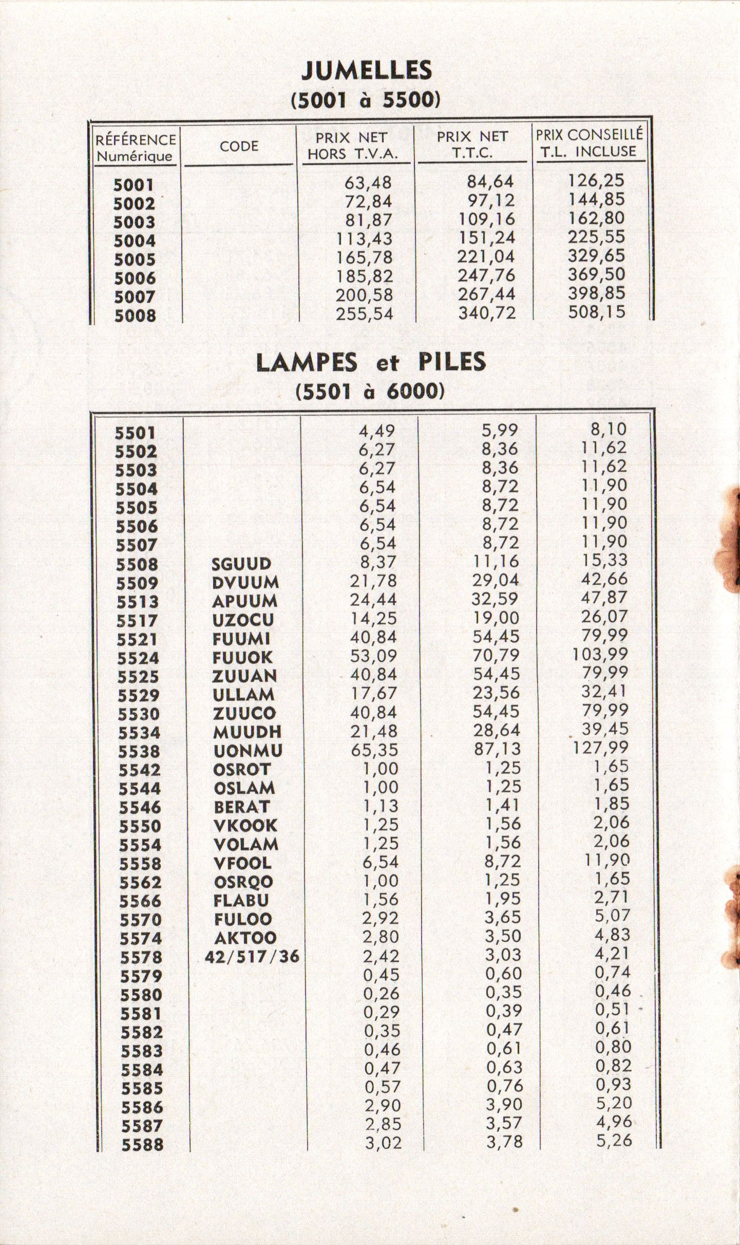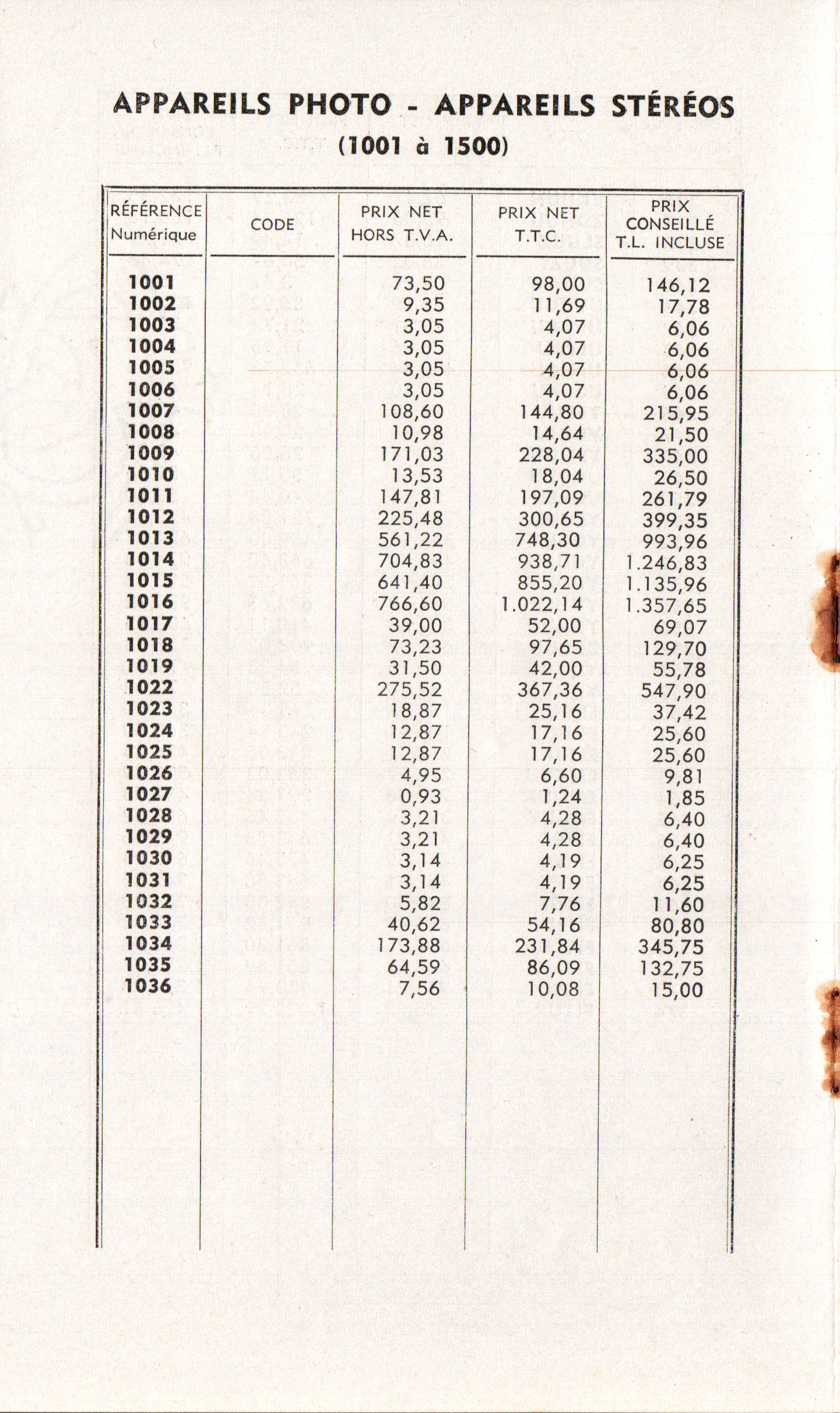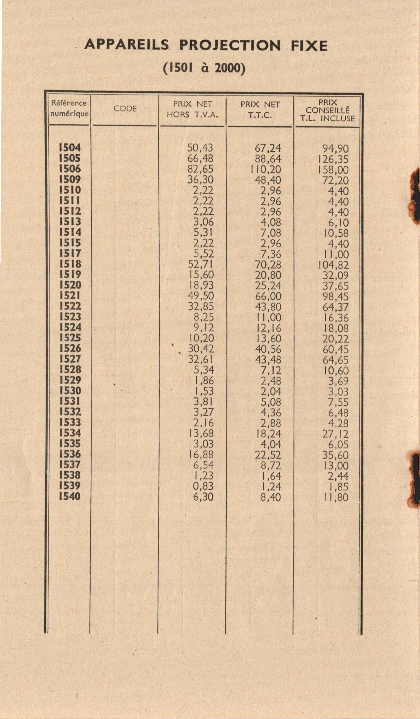 Tarif appareils et accessoires - mars 1960