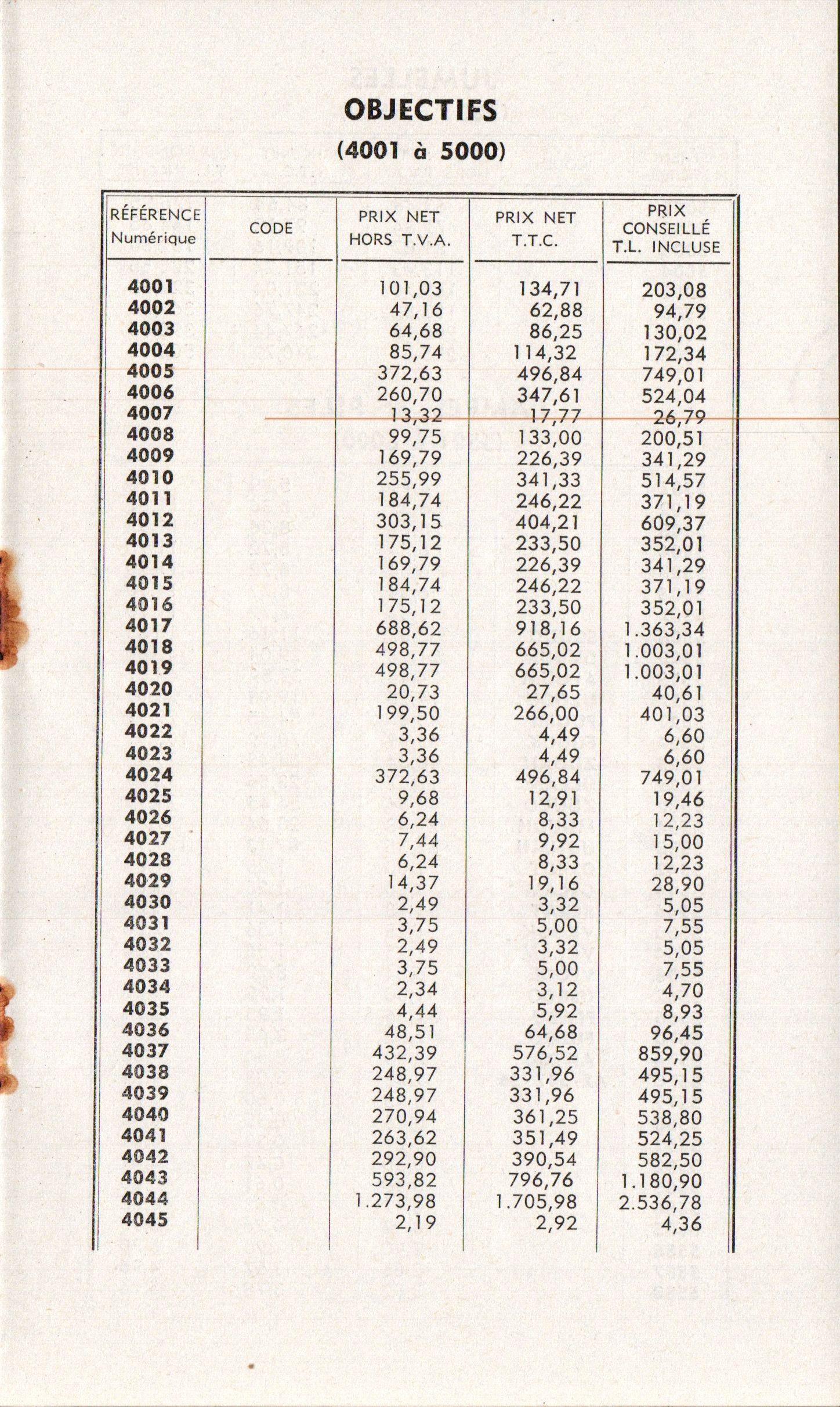 Tarif rectificatif - avril 1967