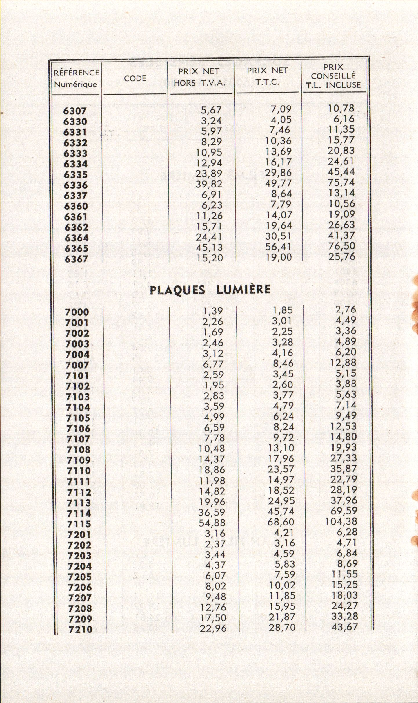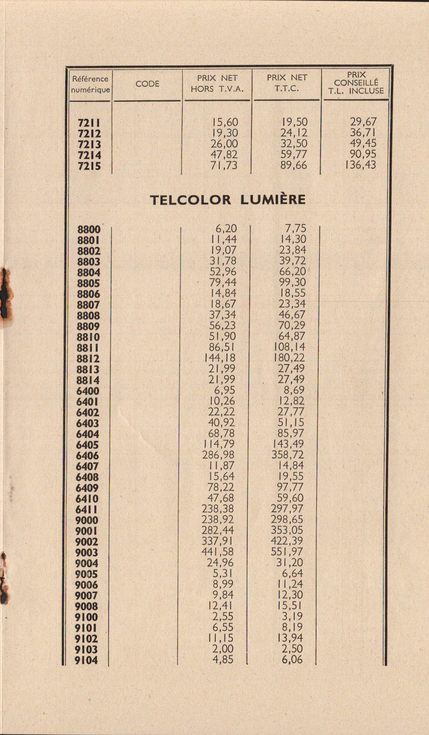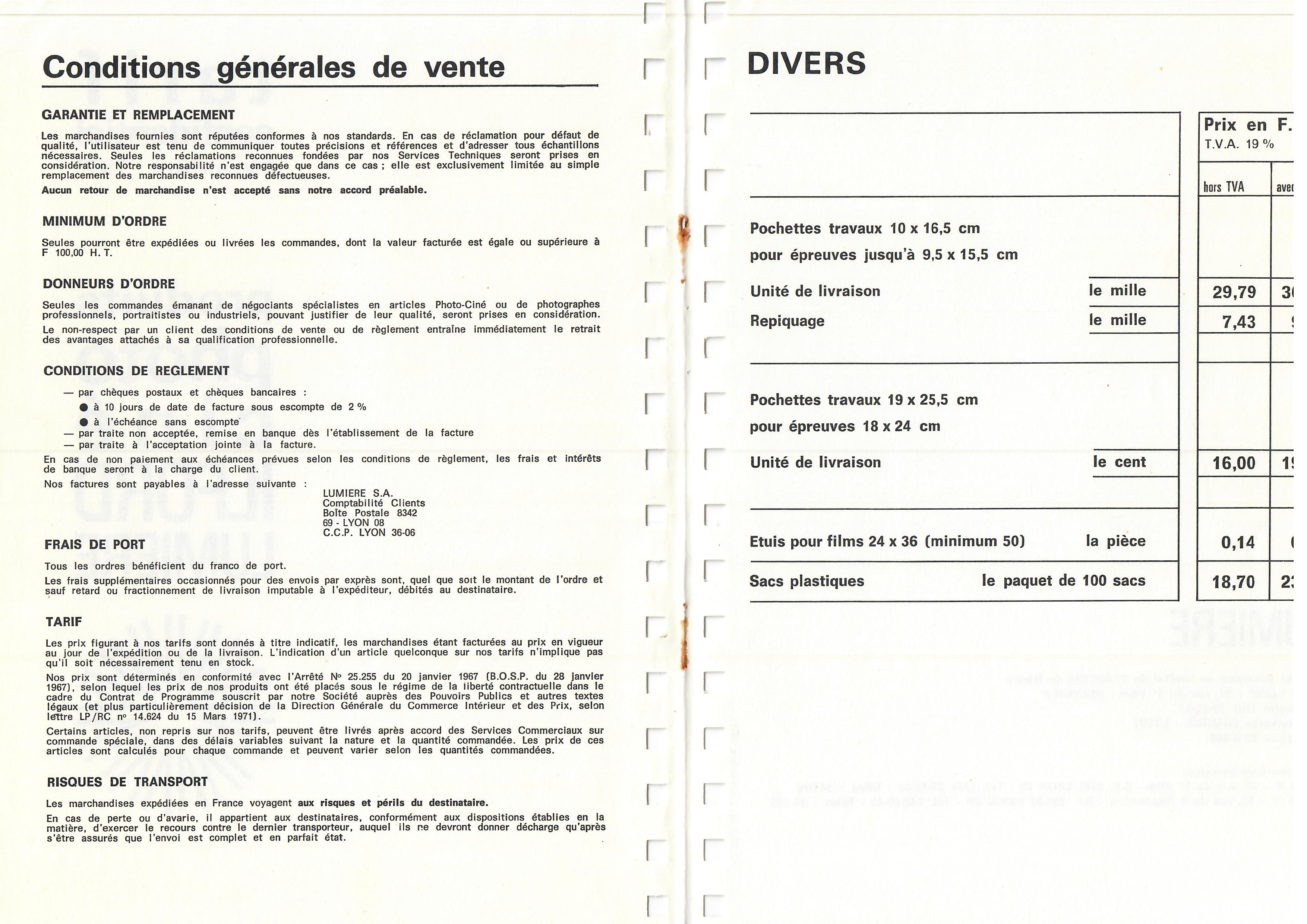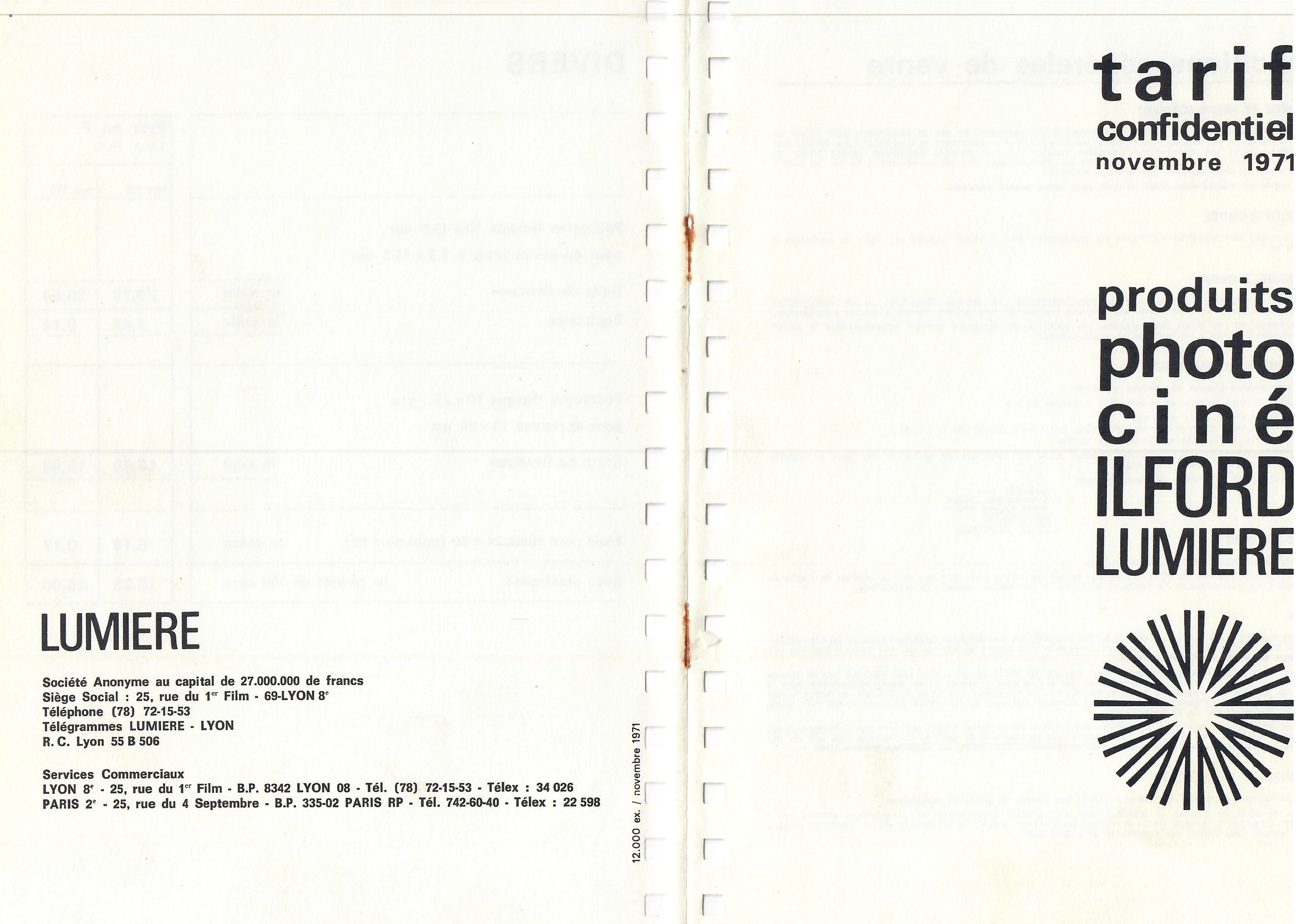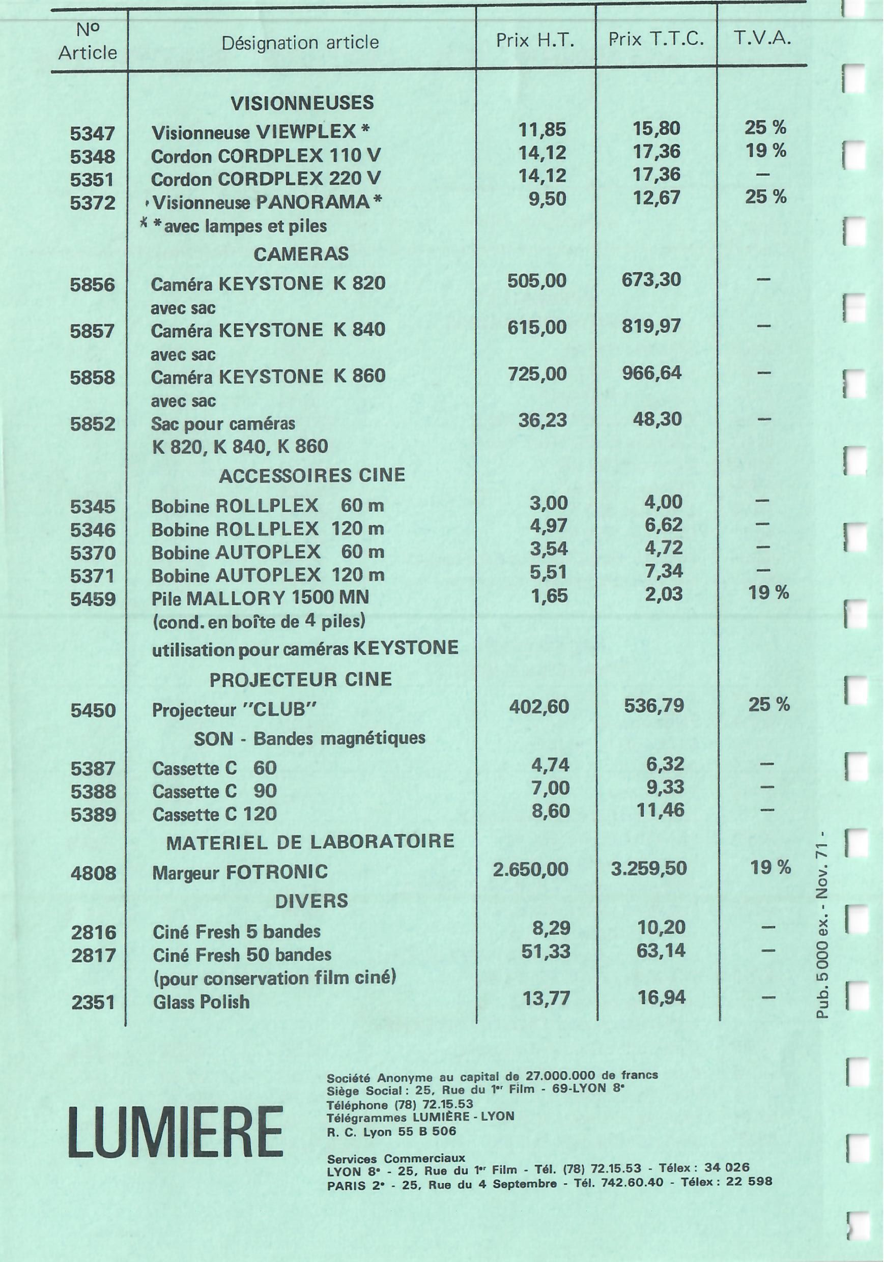 - Tarif - novembre 1971