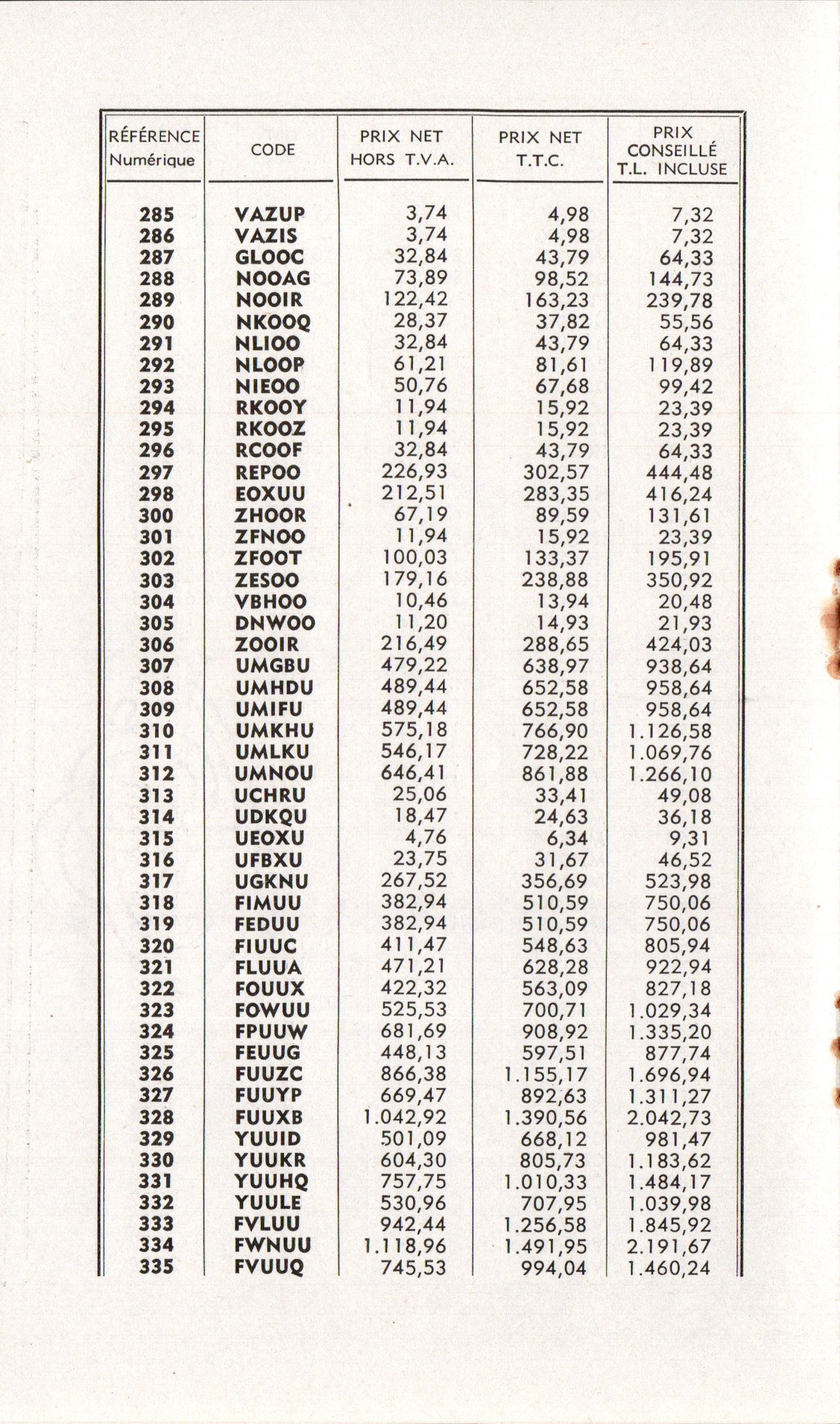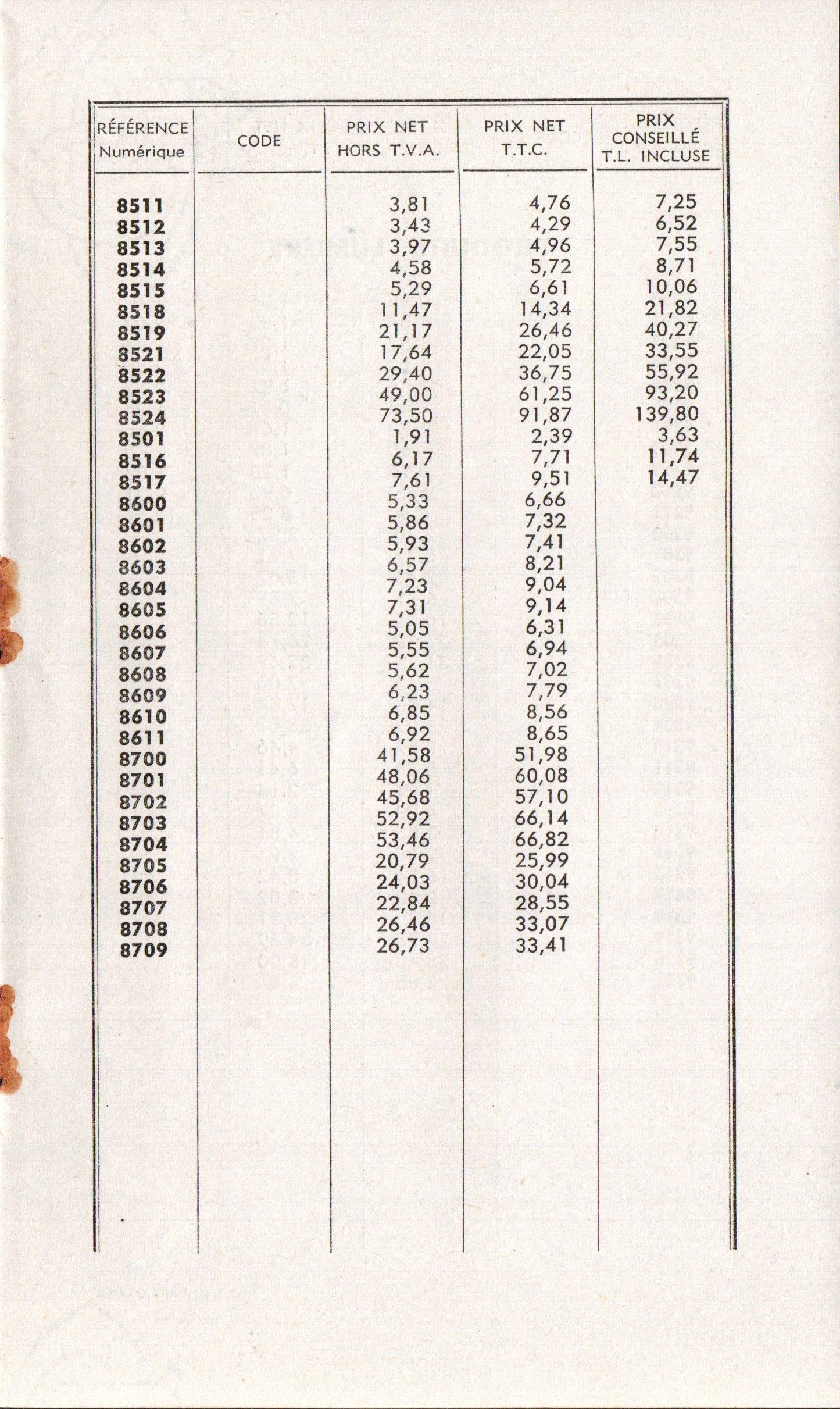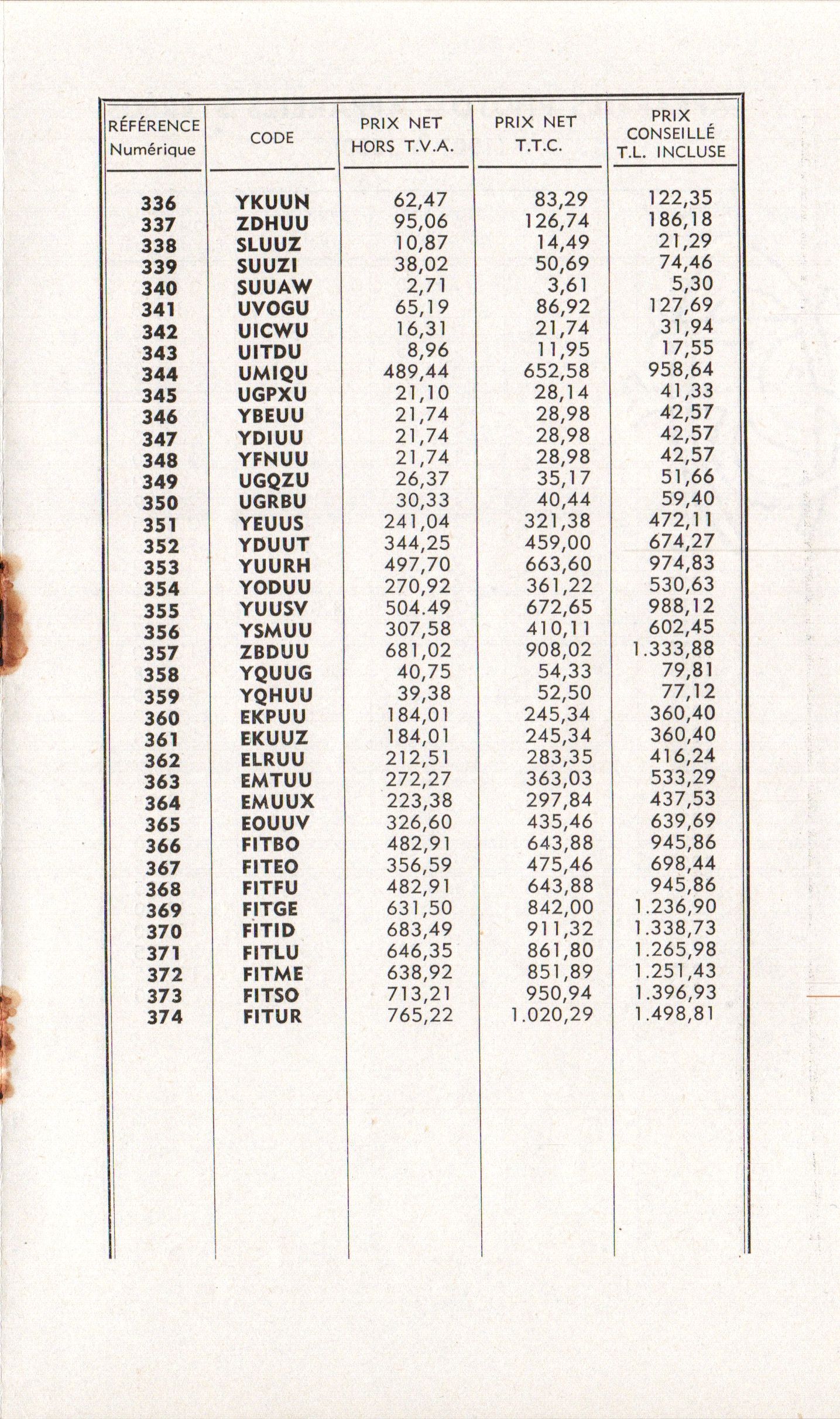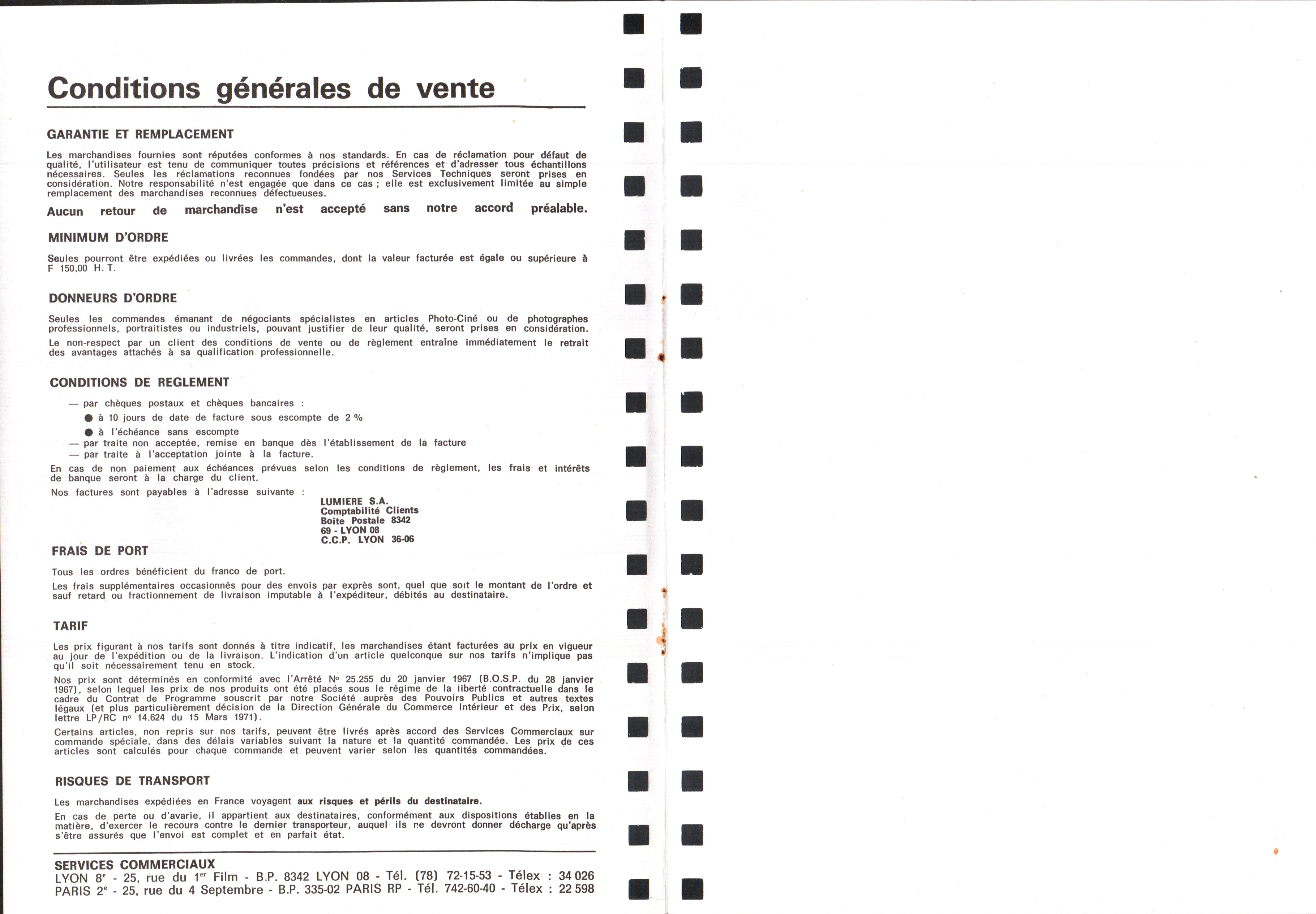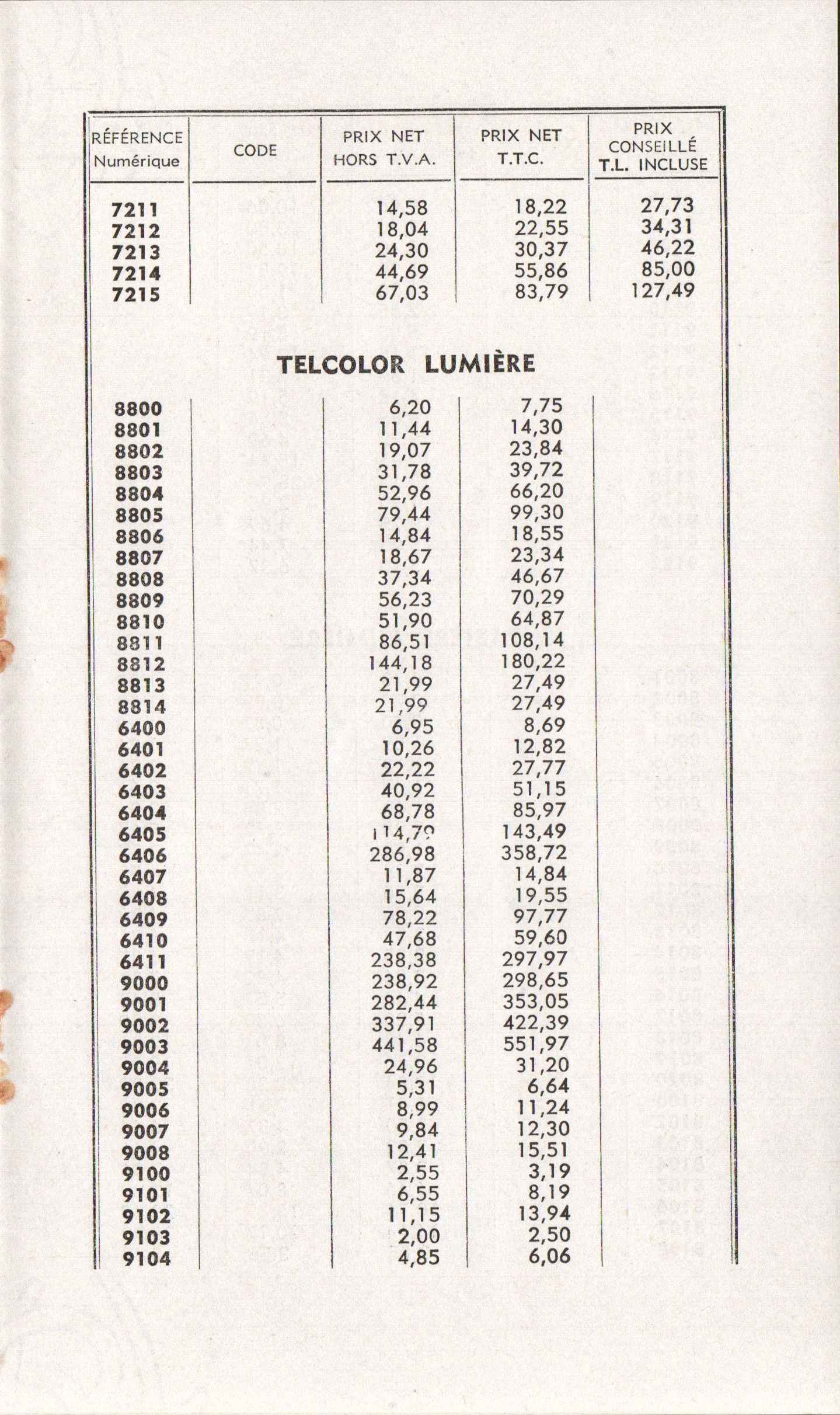 - Tarif - novembre 1971