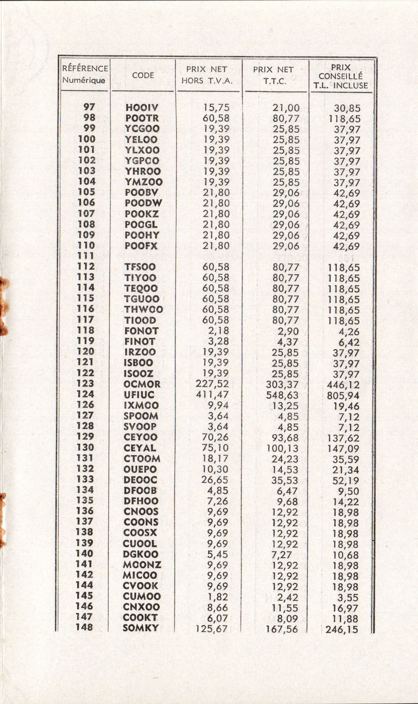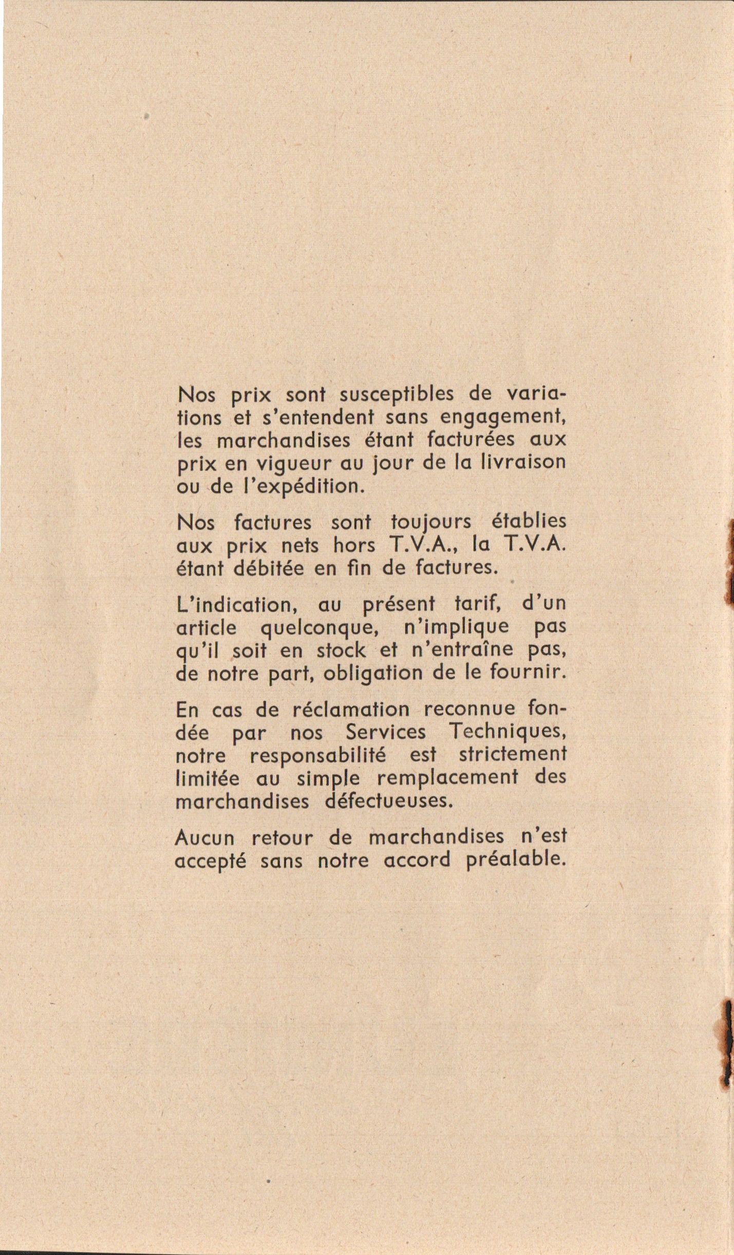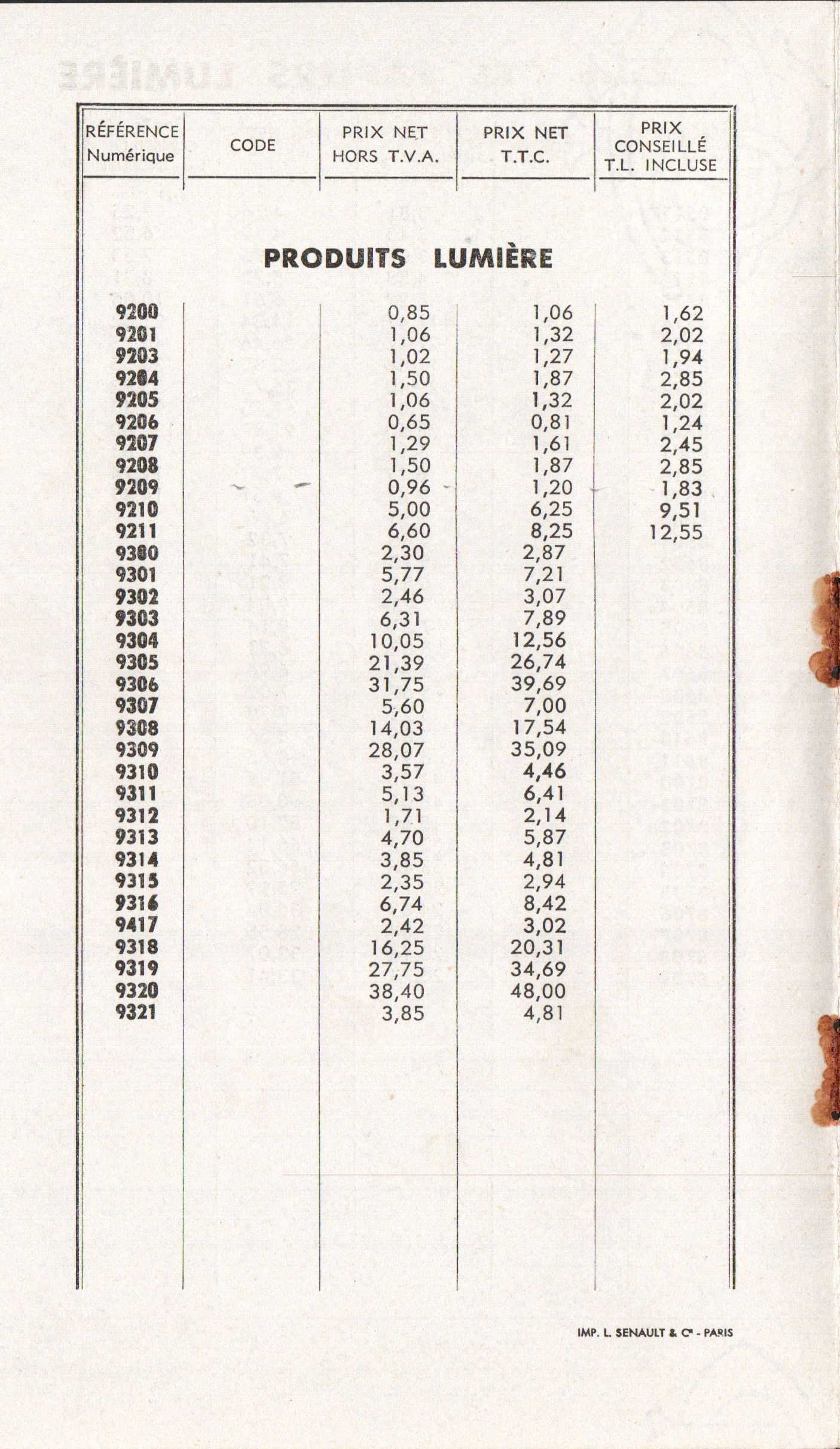 Prix-courant - mars 1958