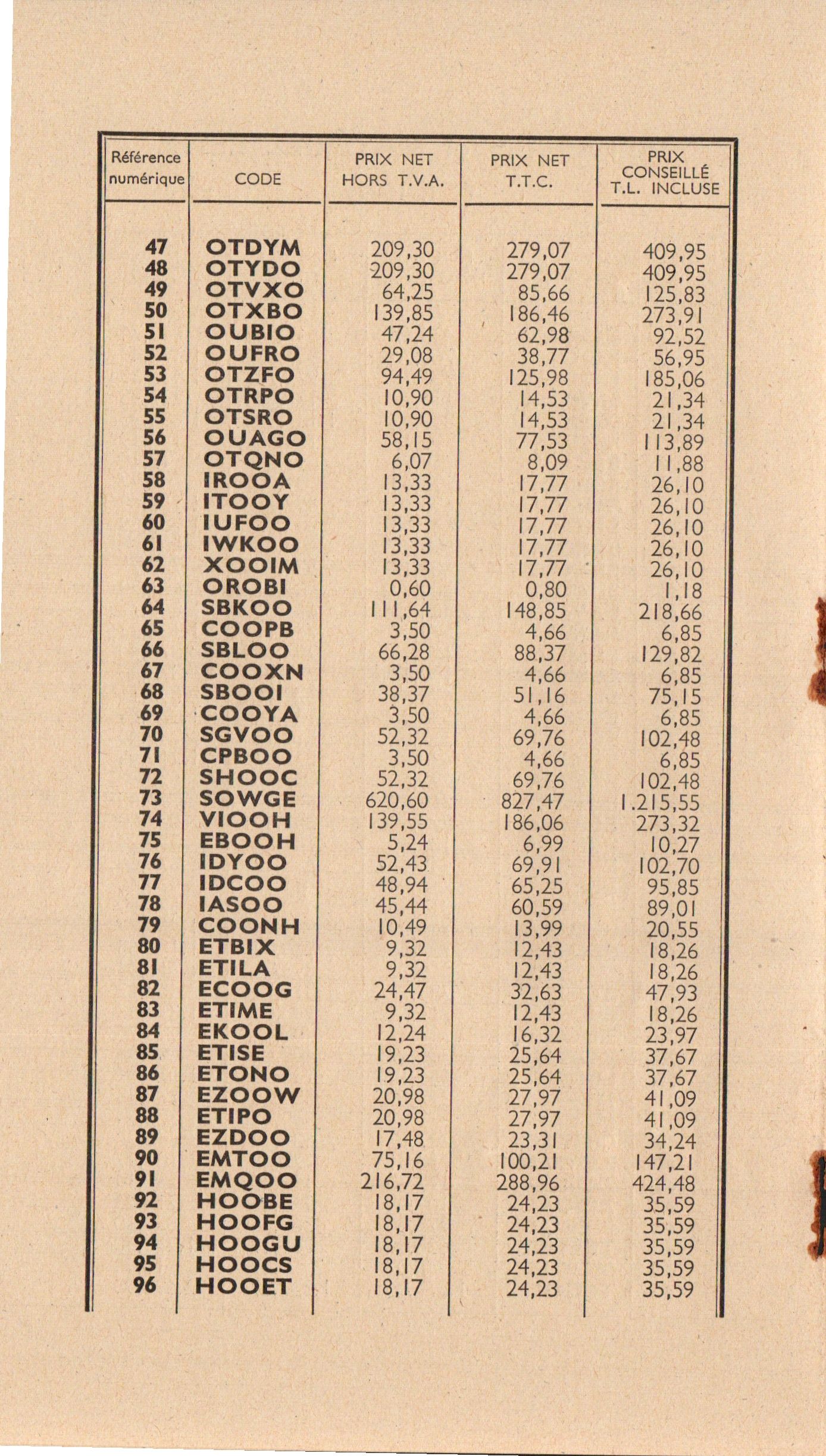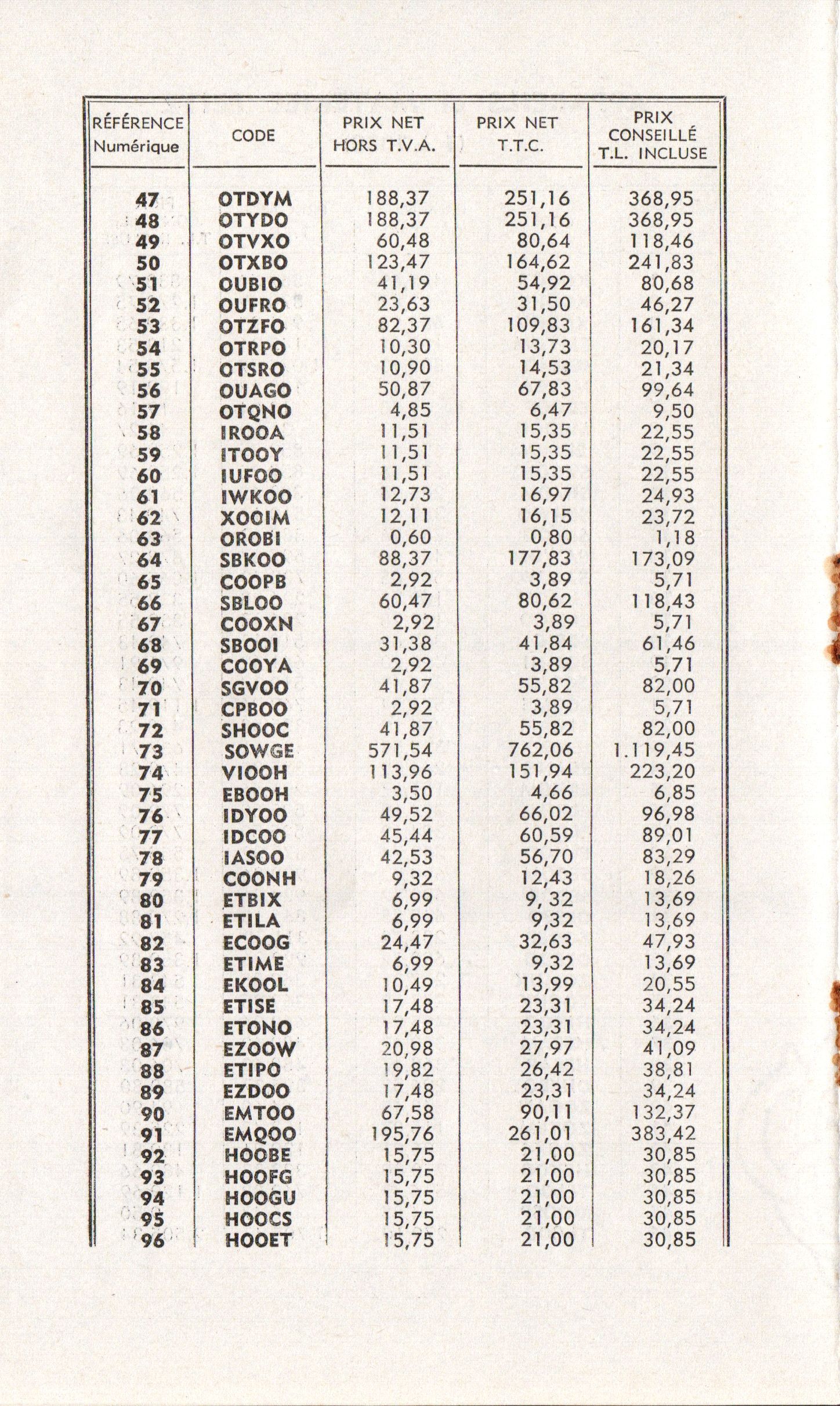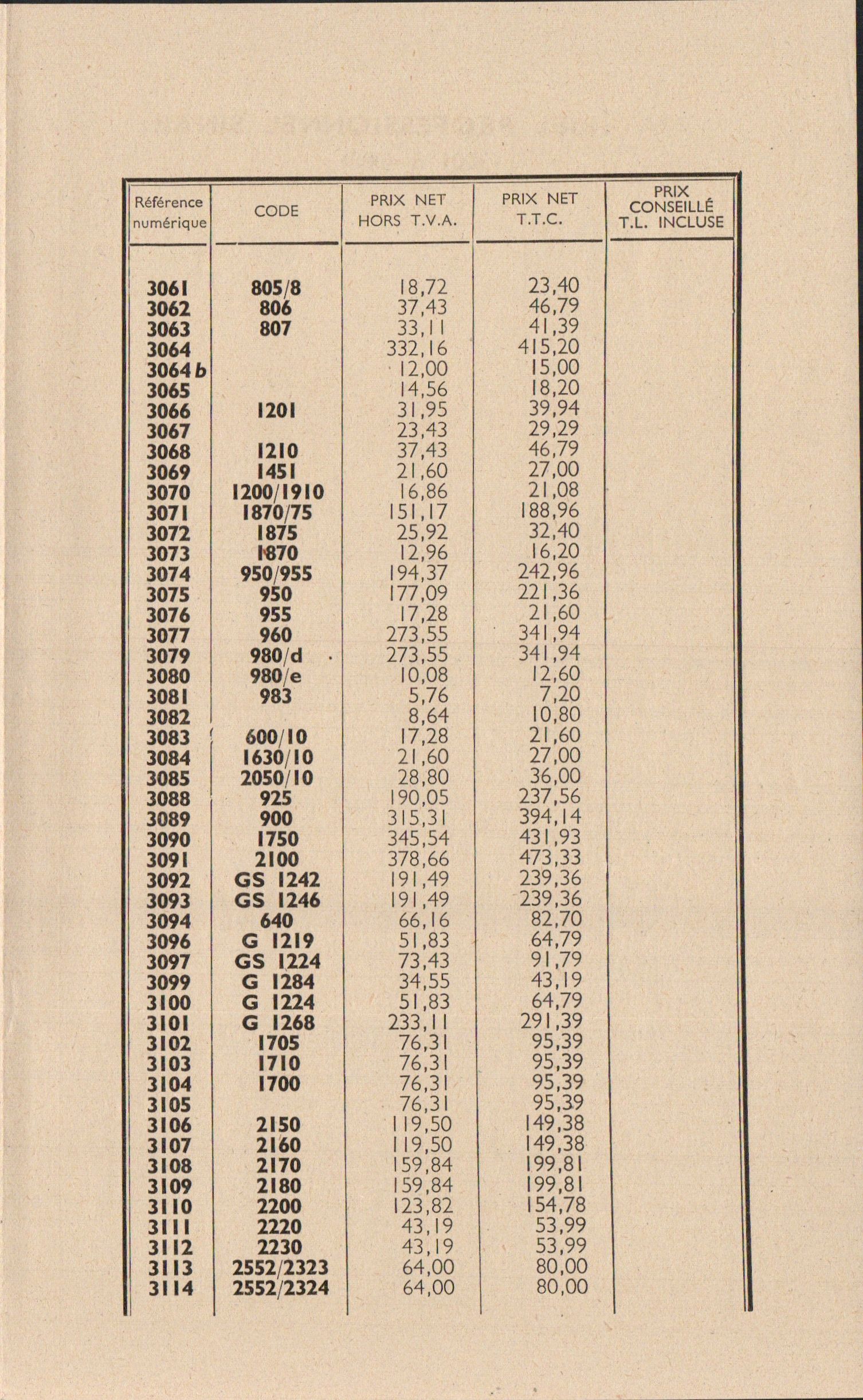 Prix-courant - avril 1955