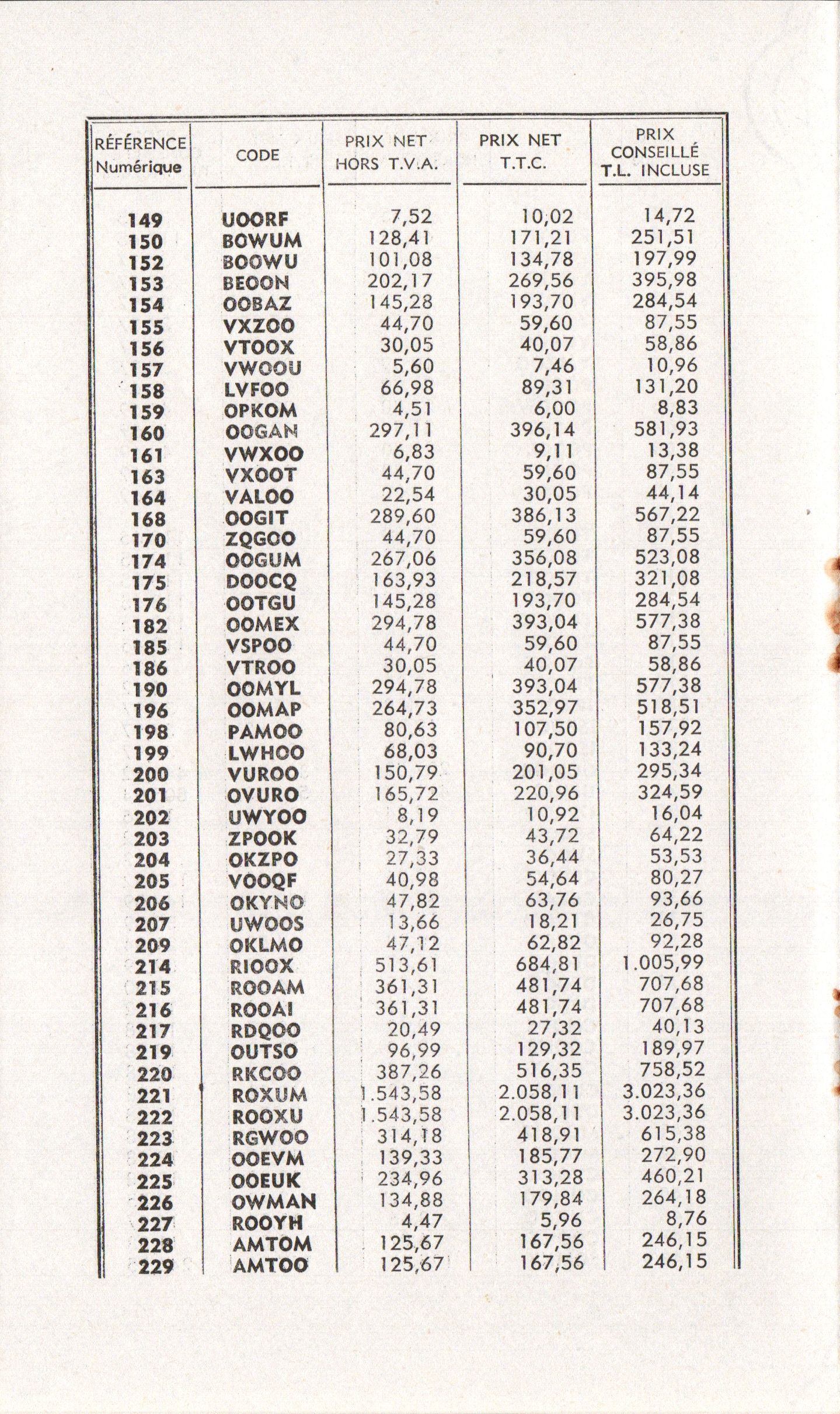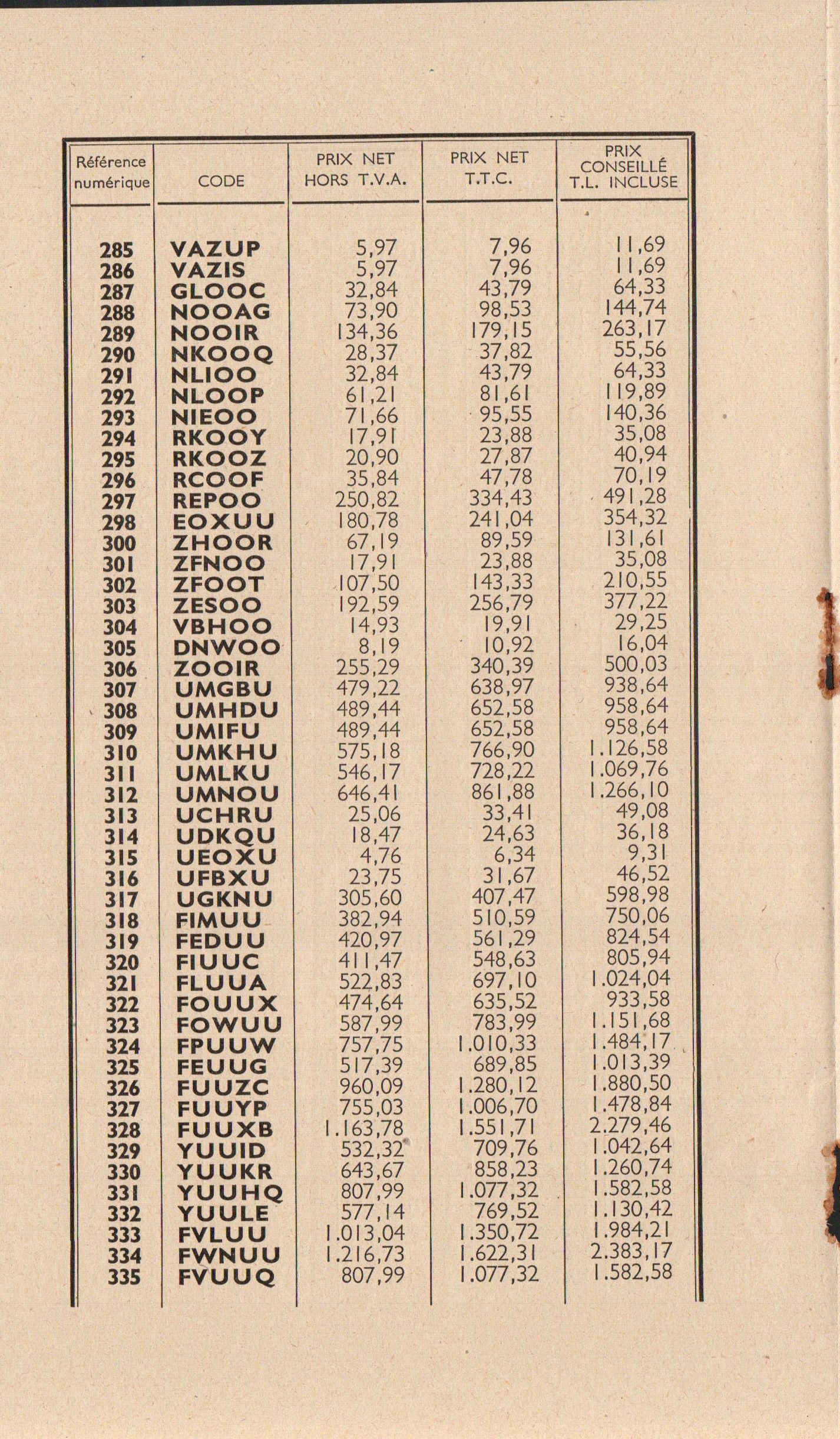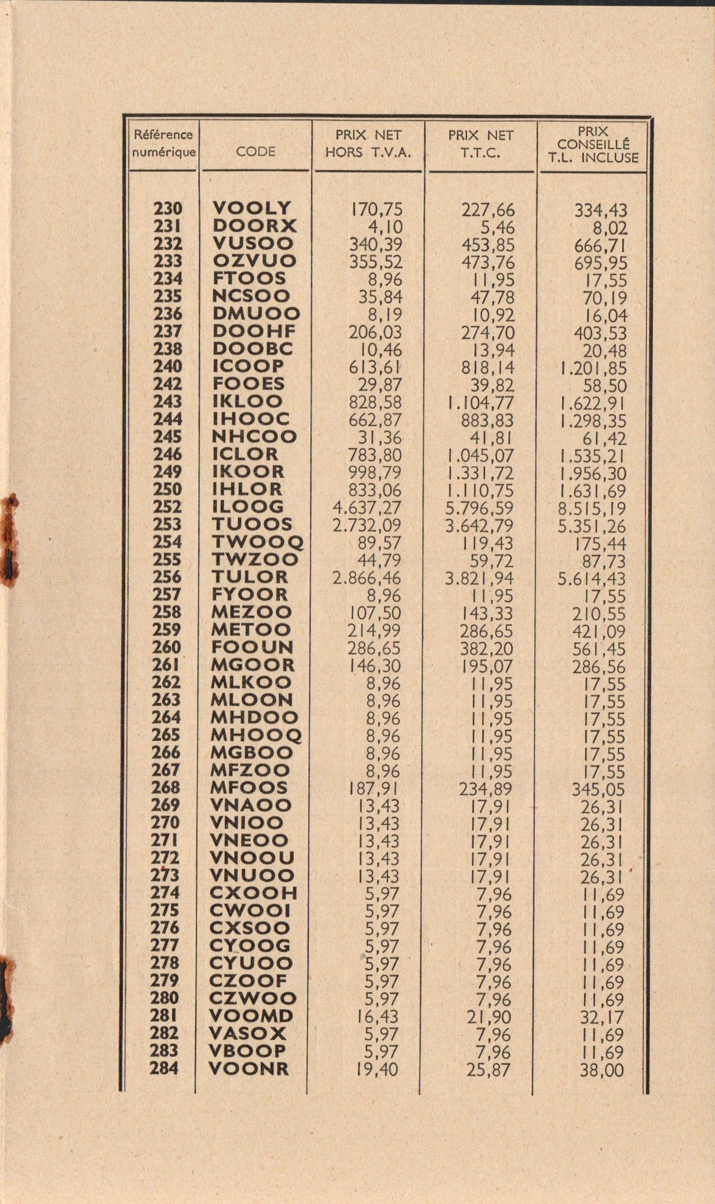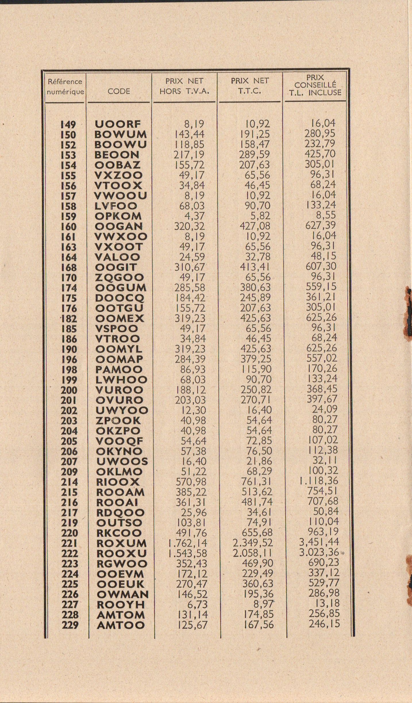 Prix-courant - avril 1955