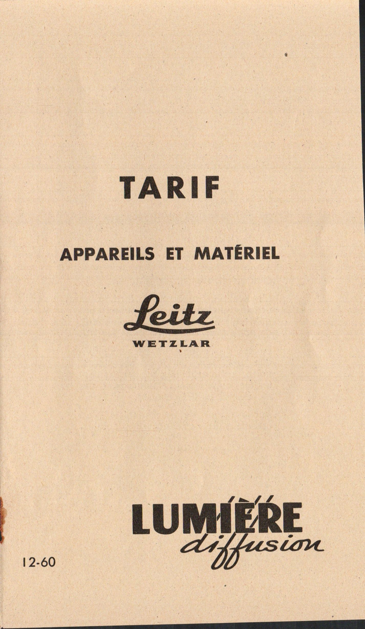 - Tarif appareils et matériels Leitz Wetzlar - décembre 1960