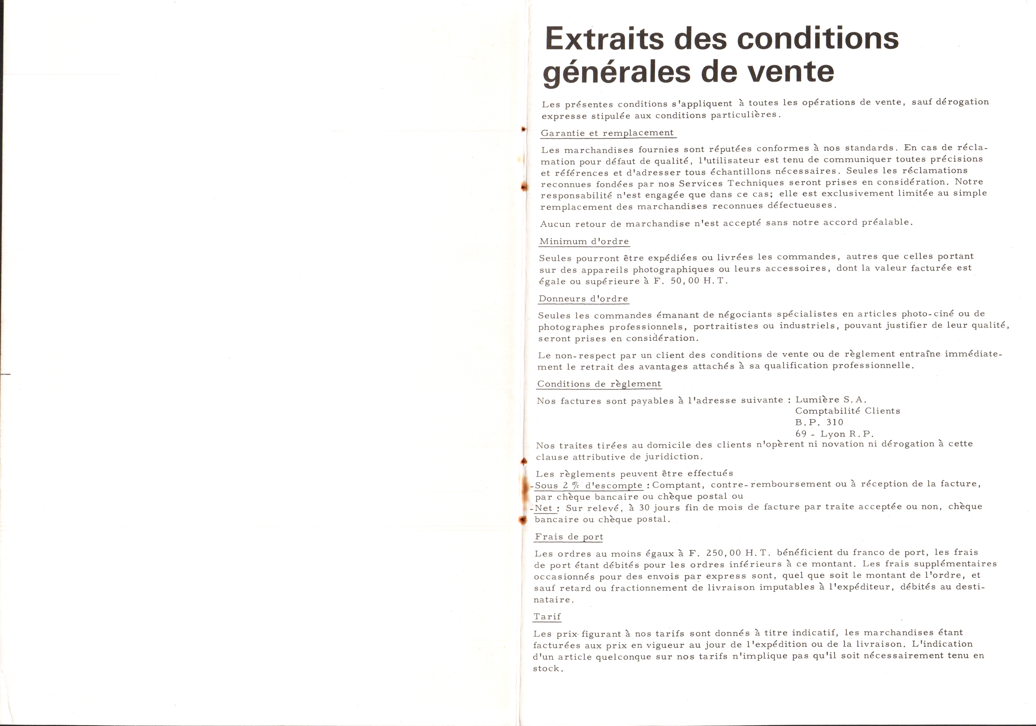 Tarif - janvier 1965