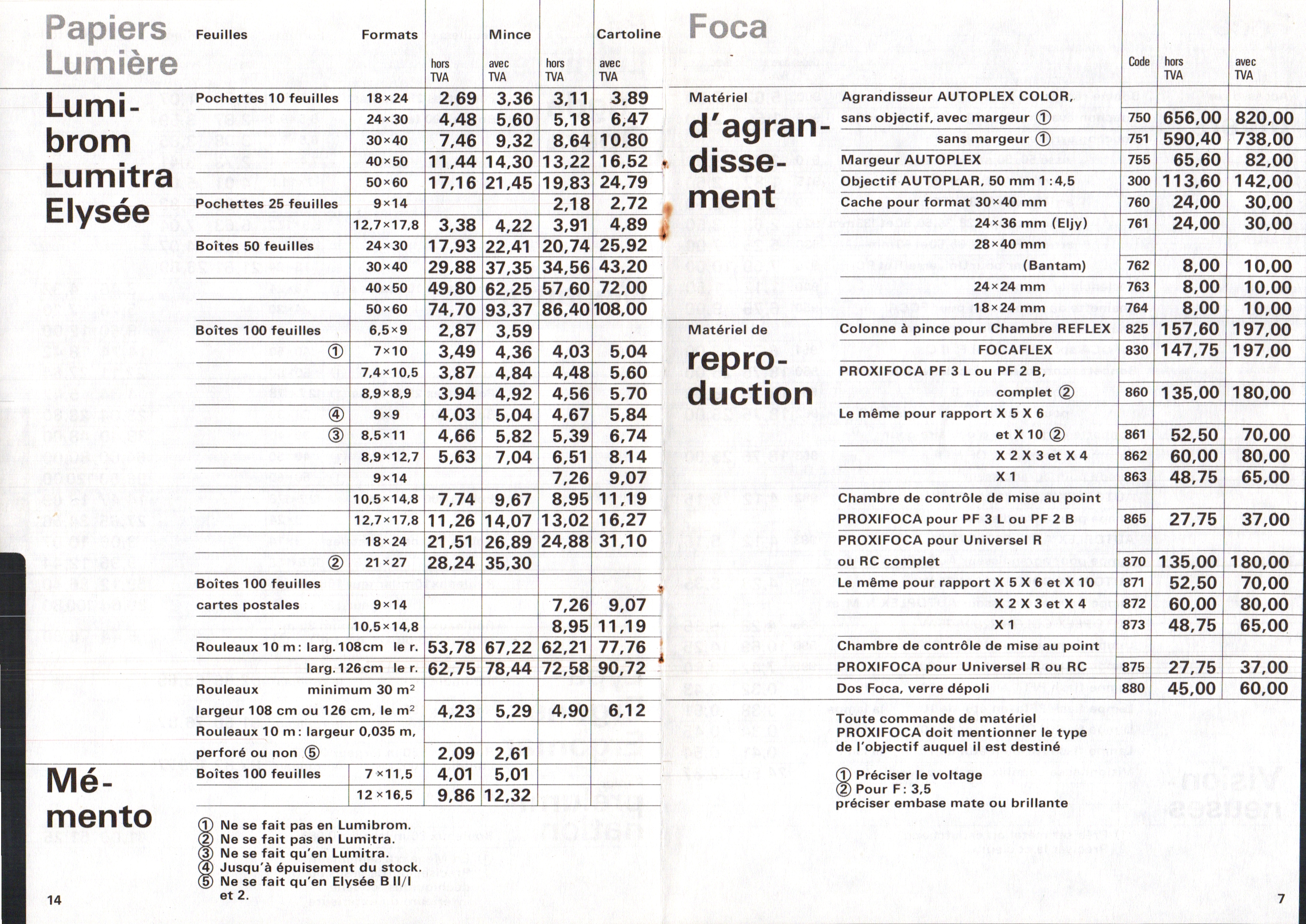 - Prix des appareils Lumière - mars 1937
