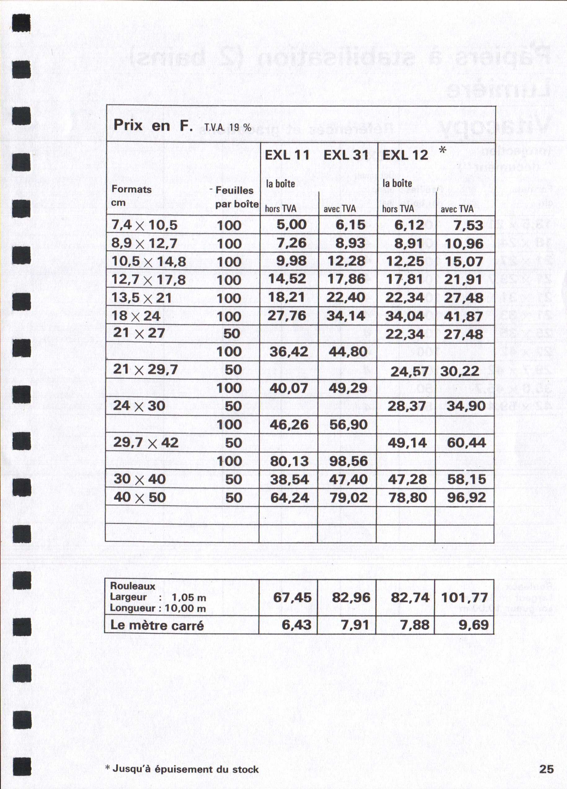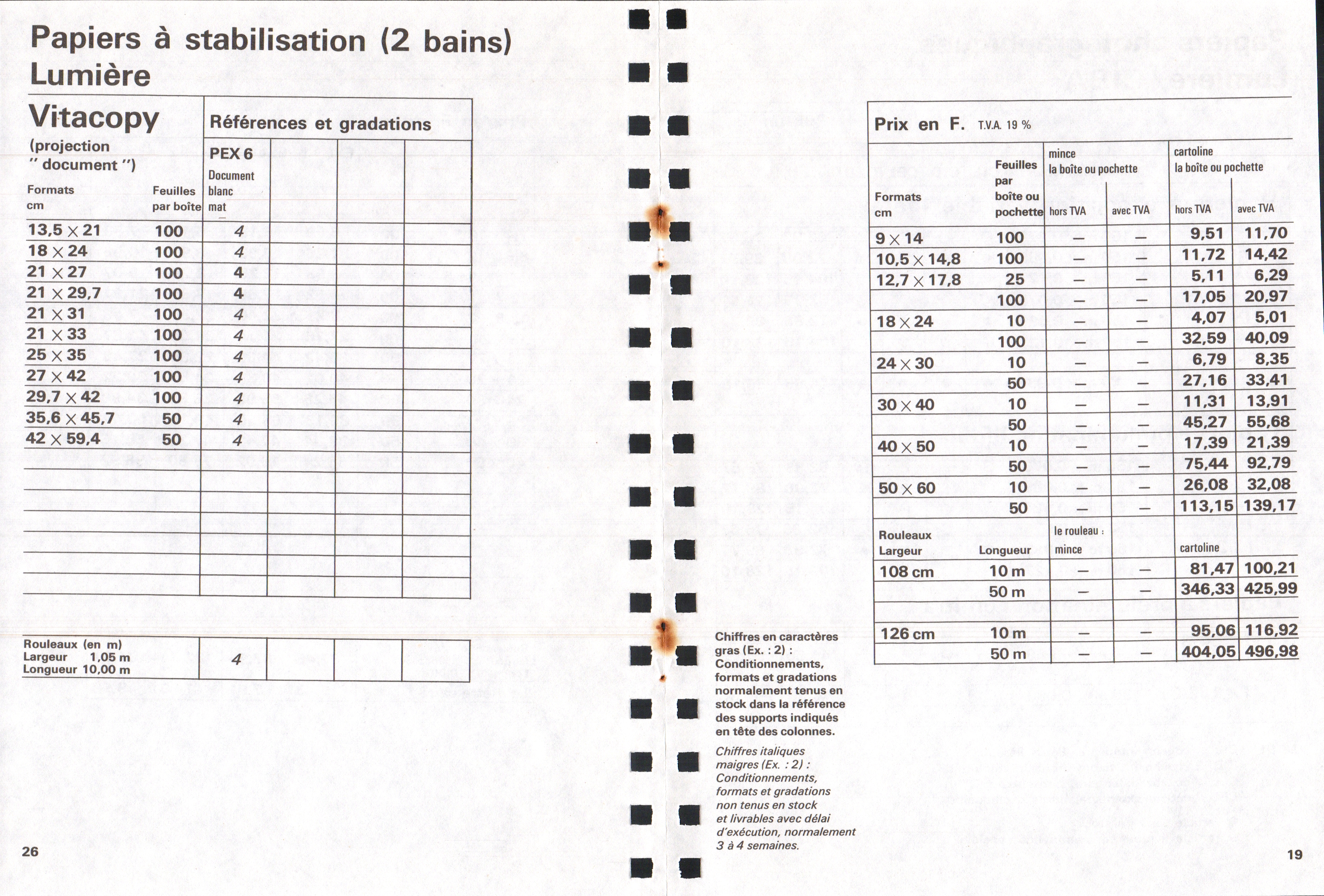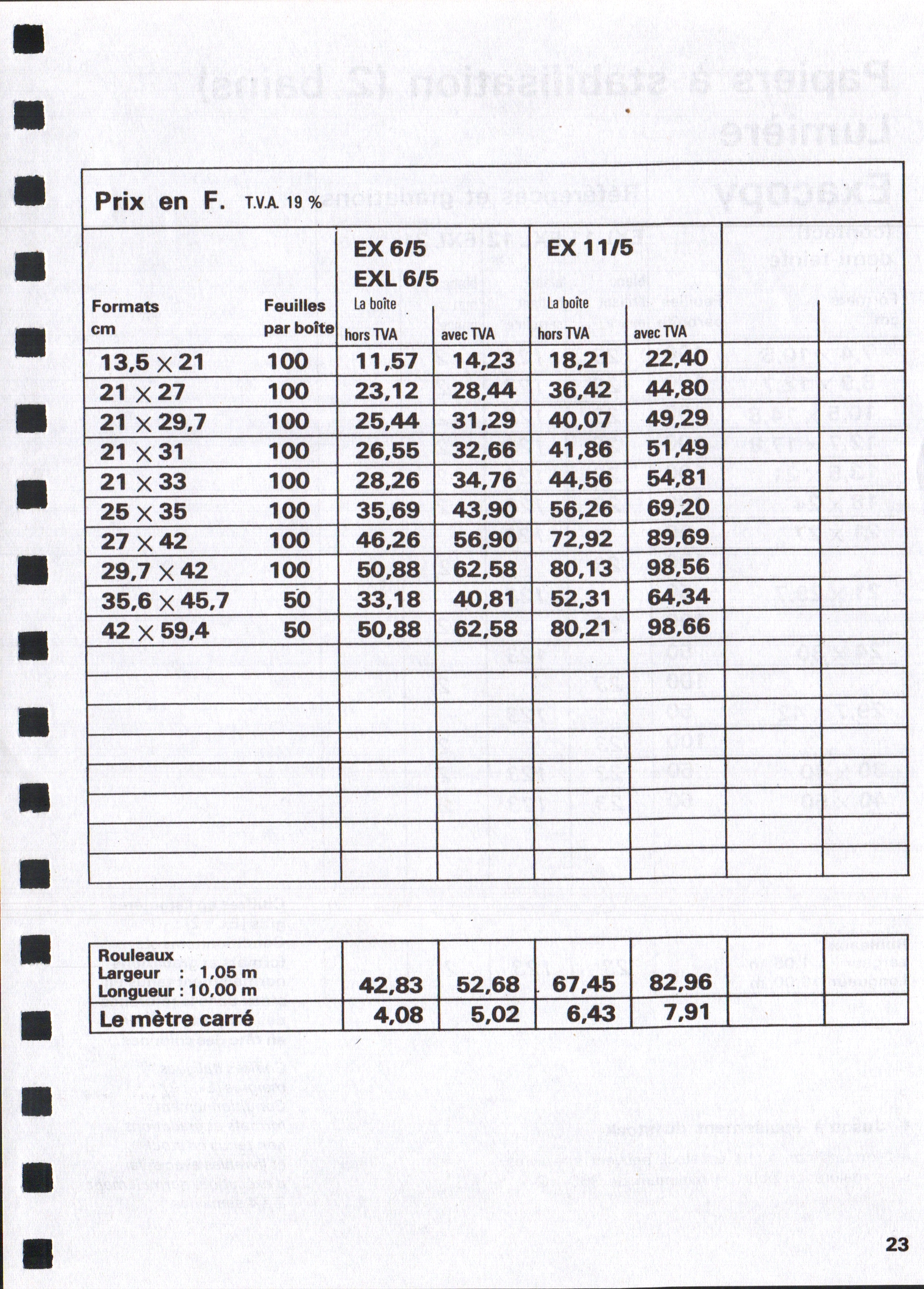 Tarif Exacopy Vitacopy - janvier 1963