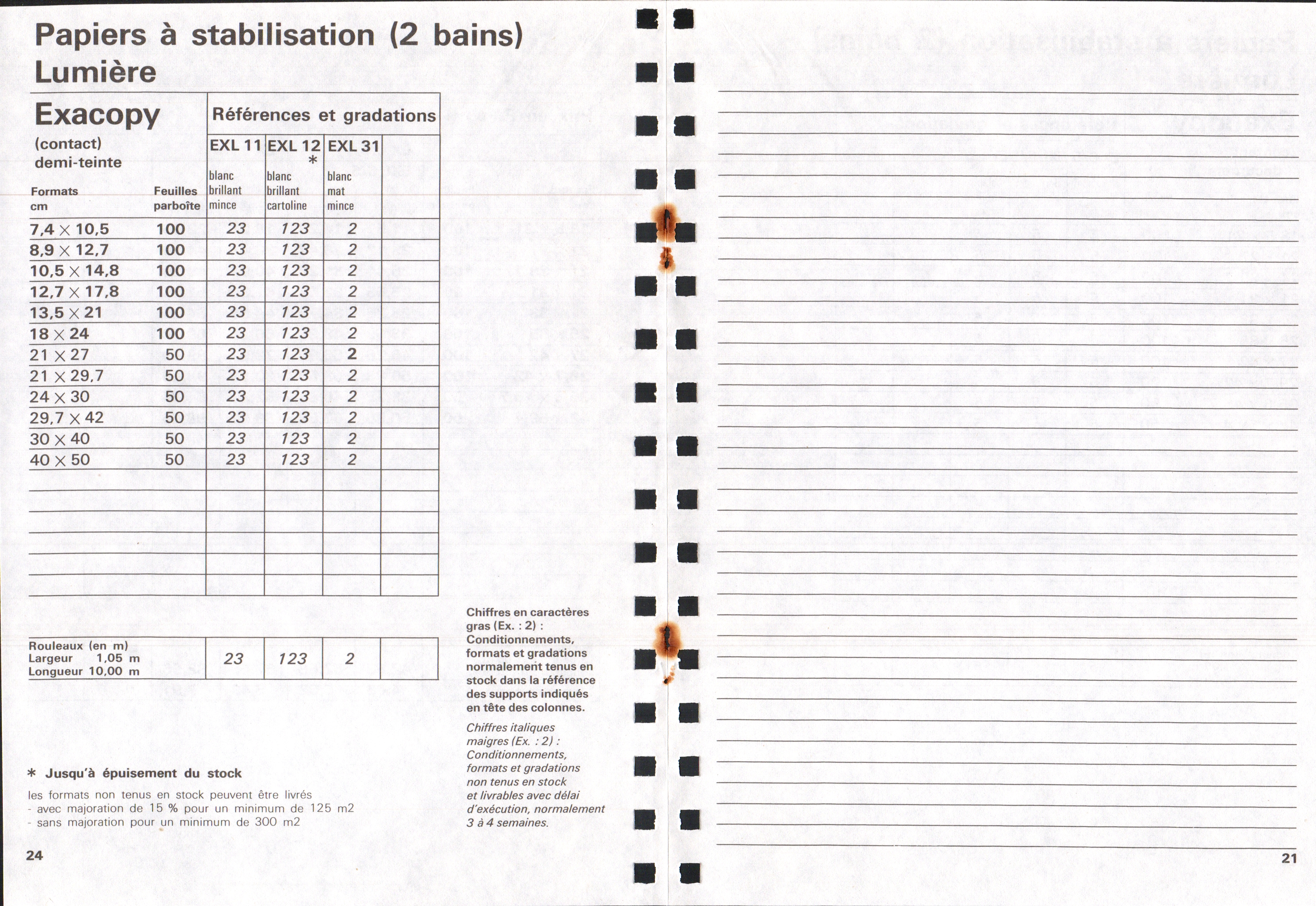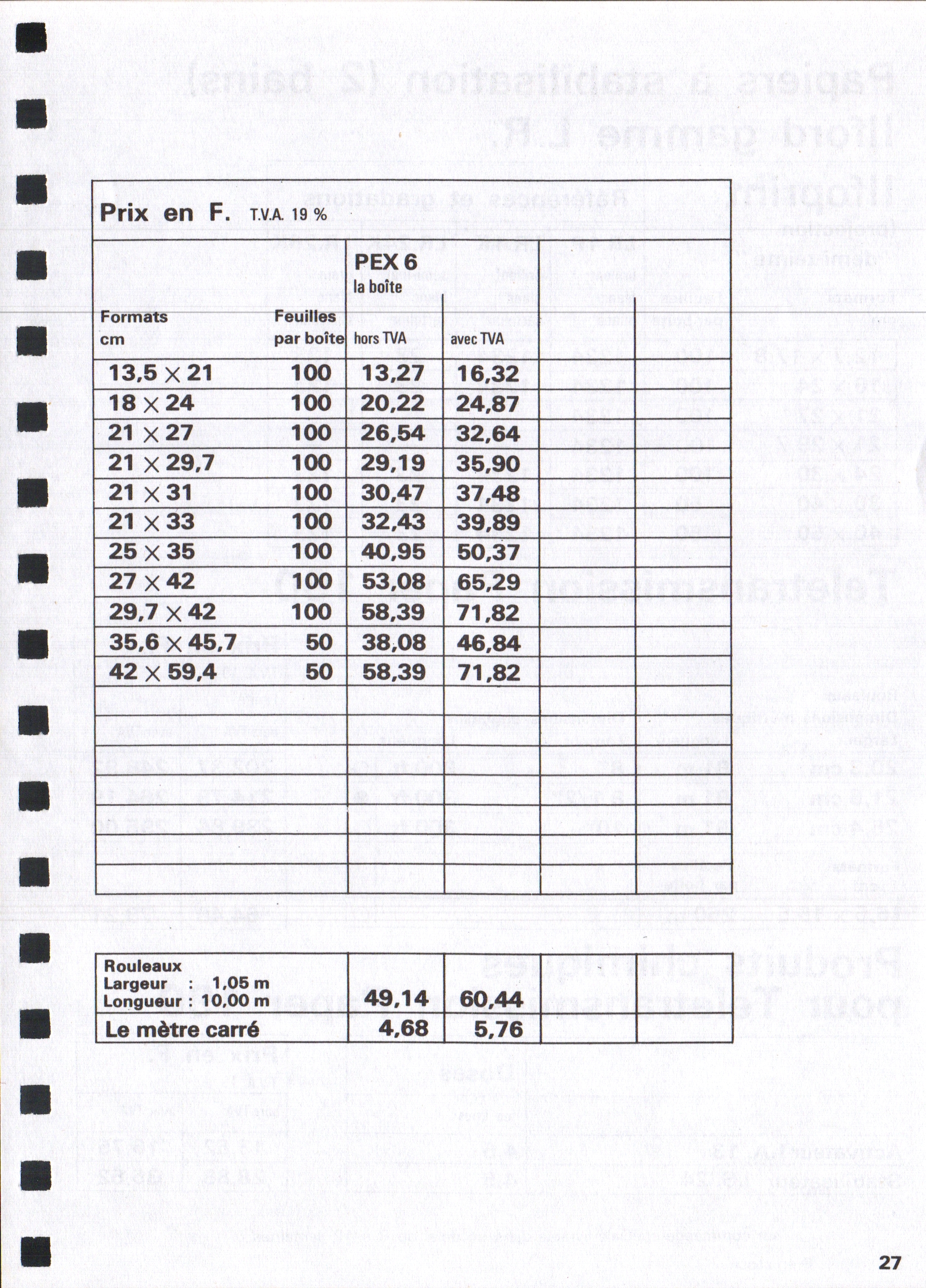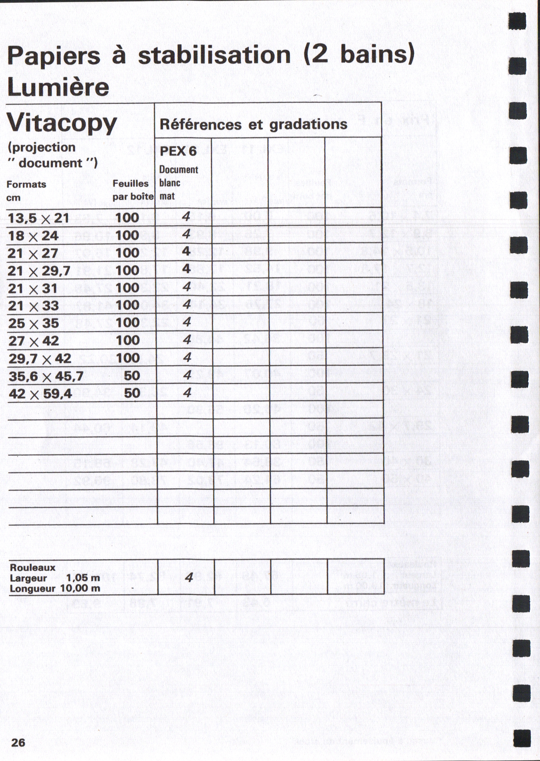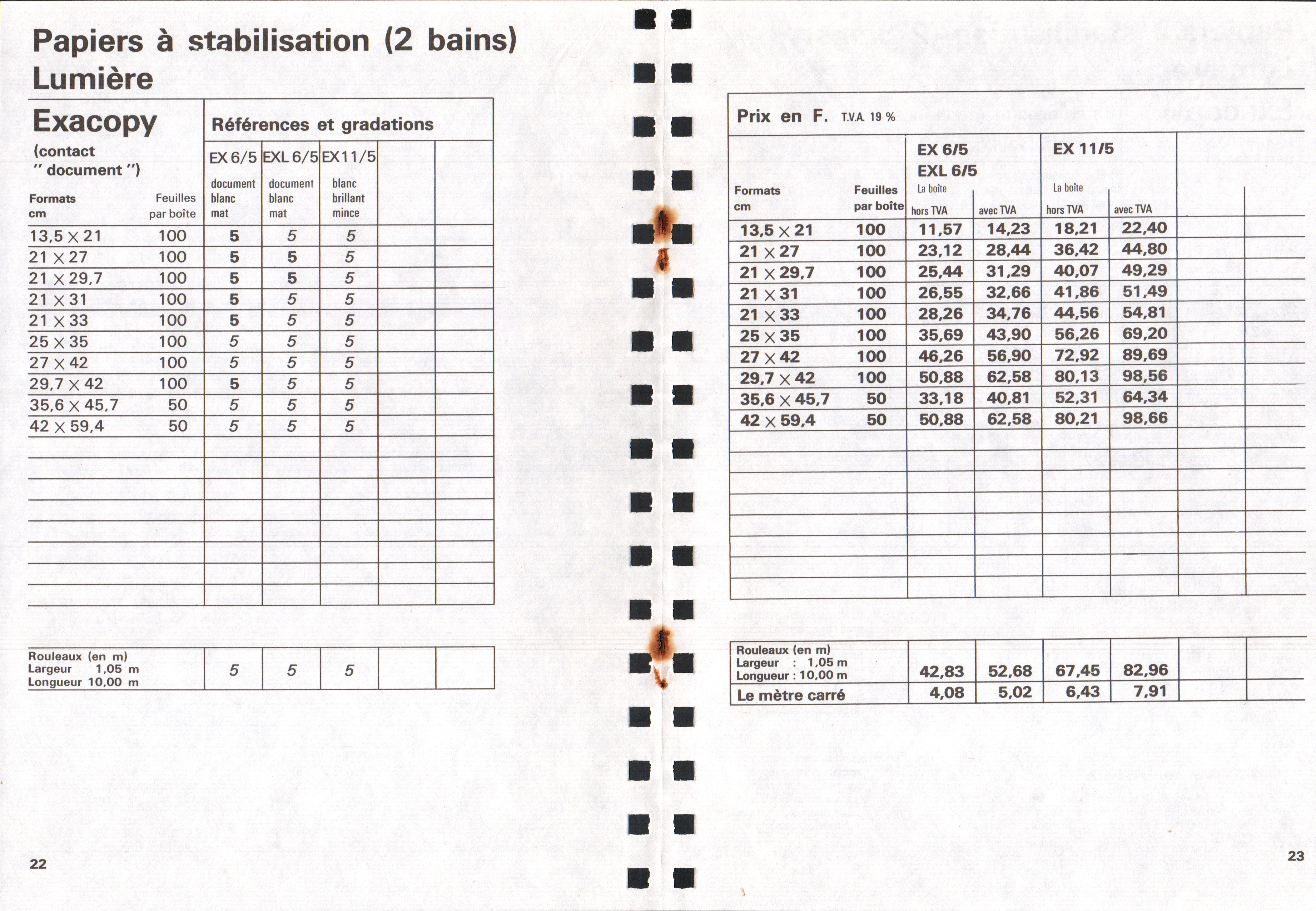 Tarif Exacopy Vitacopy - janvier 1963