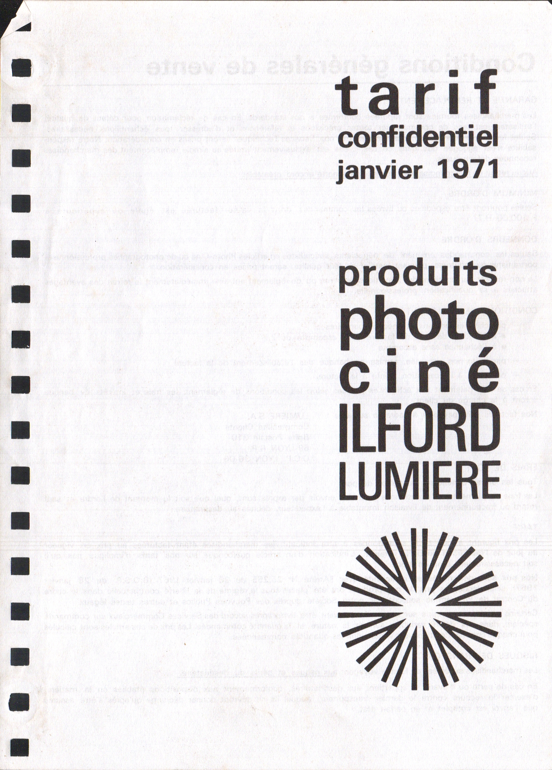 Tarif confidentiel - avril 1967