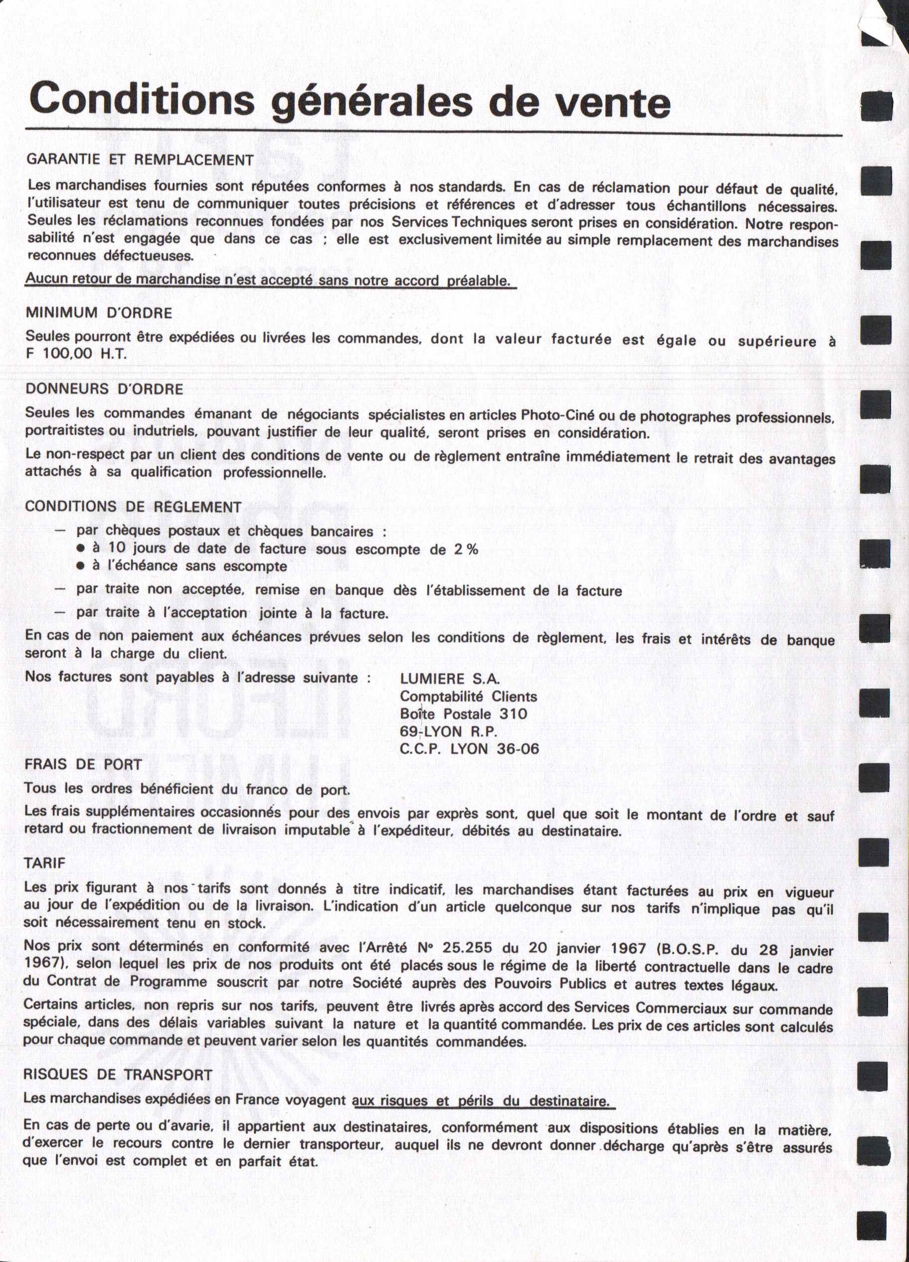- Tarif confidentiel - avril 1967