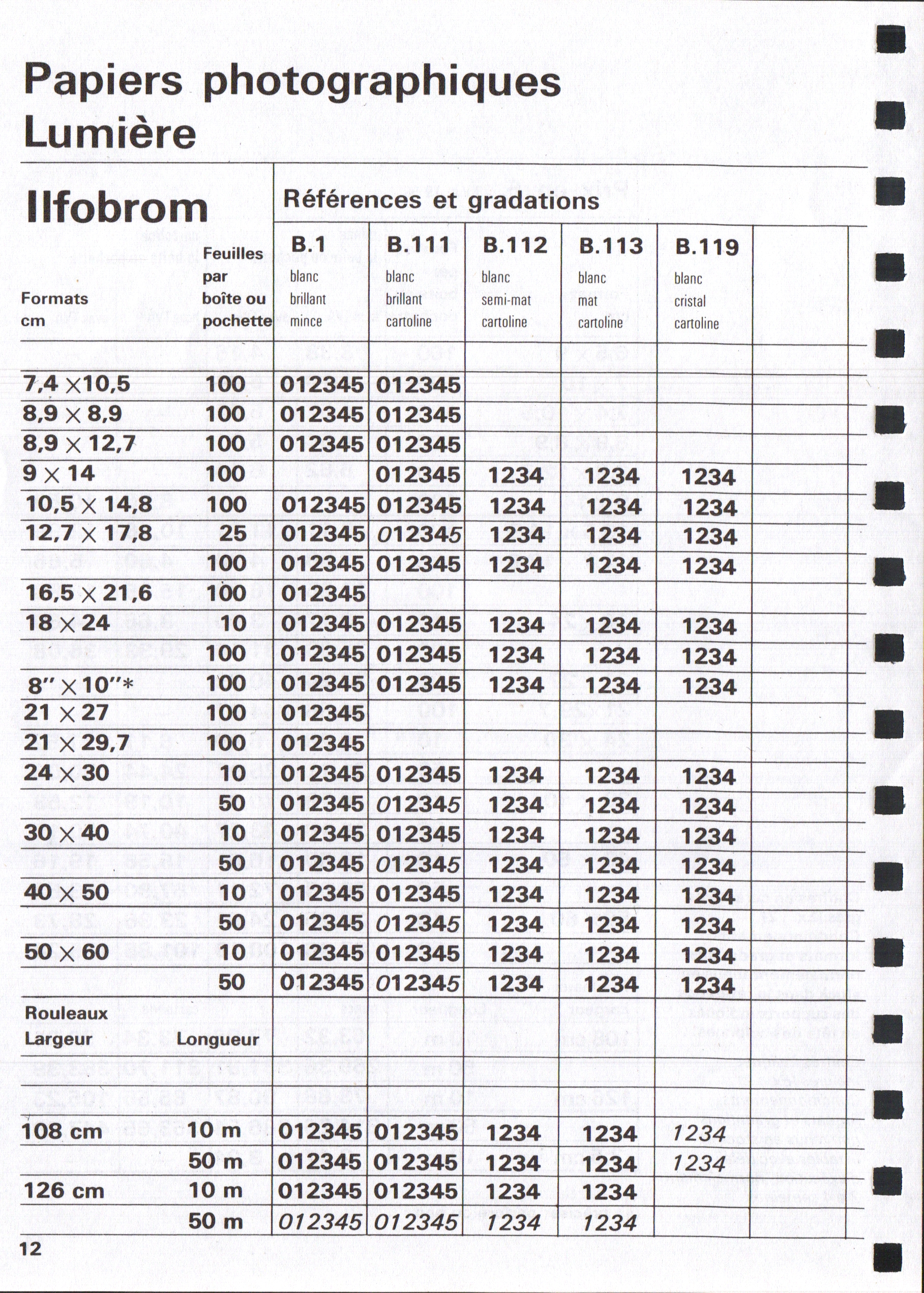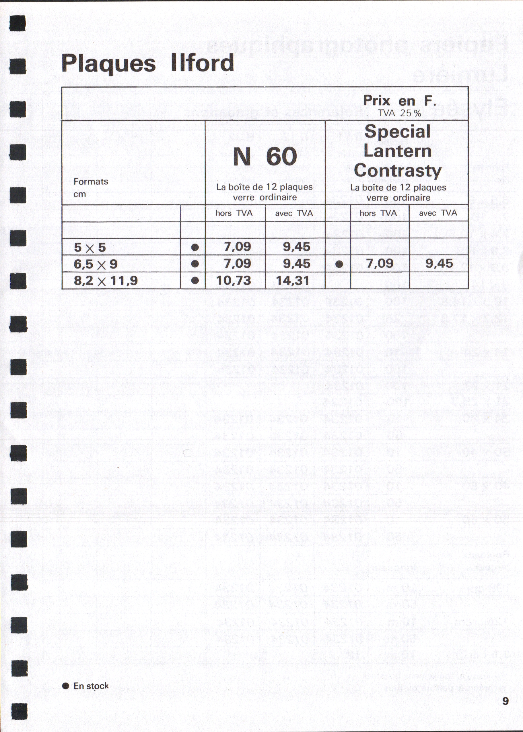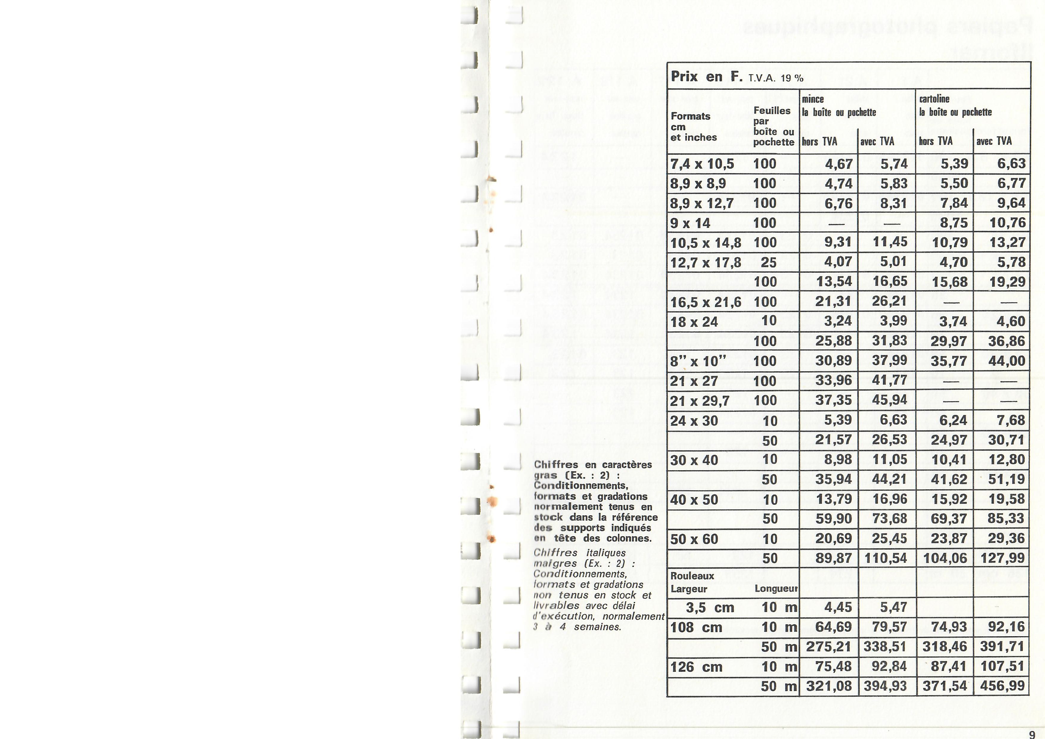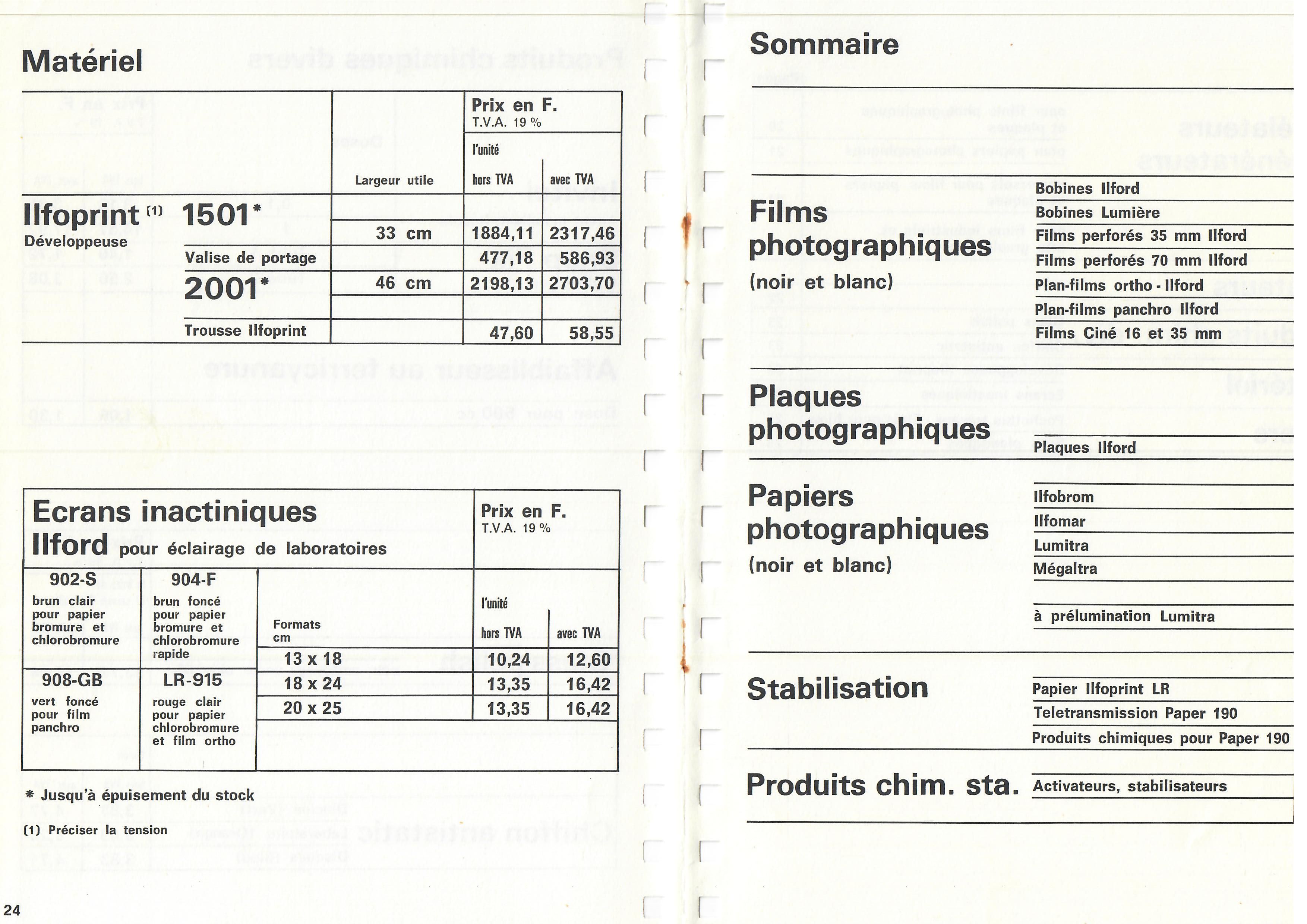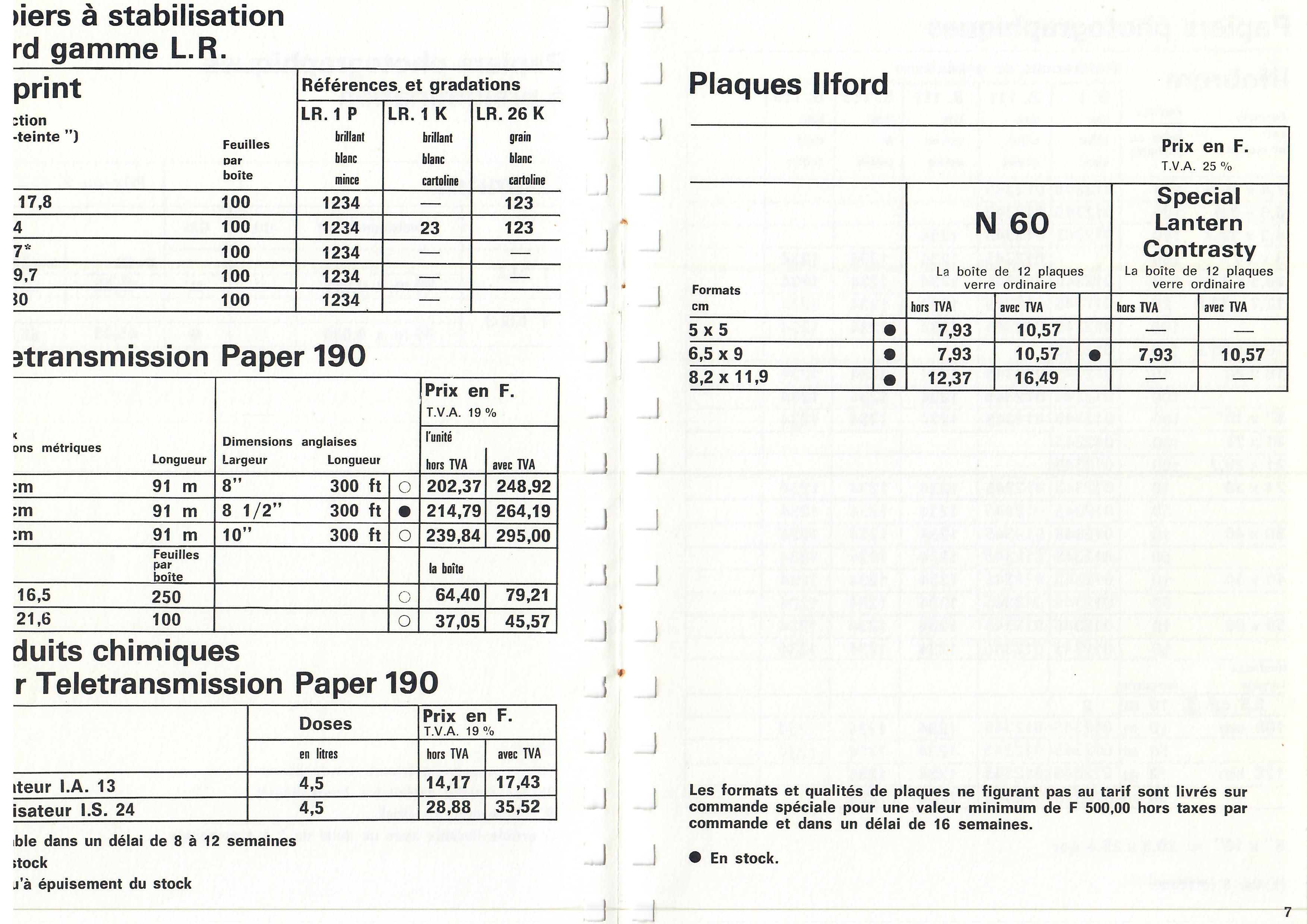 Prix courant Plaques Papiers Produits - septembre 1922