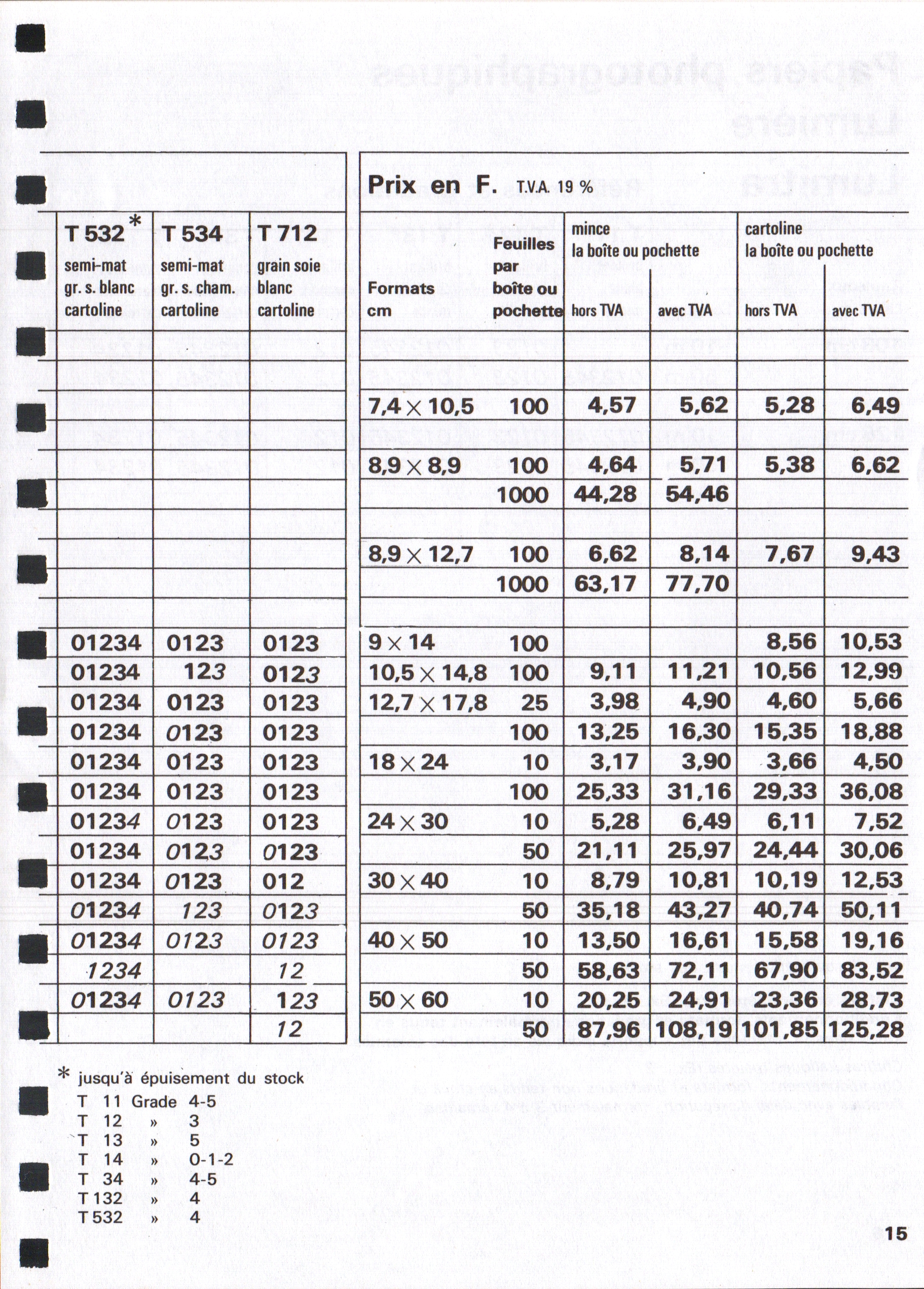 Tarif matériels amateur - décembre 1960