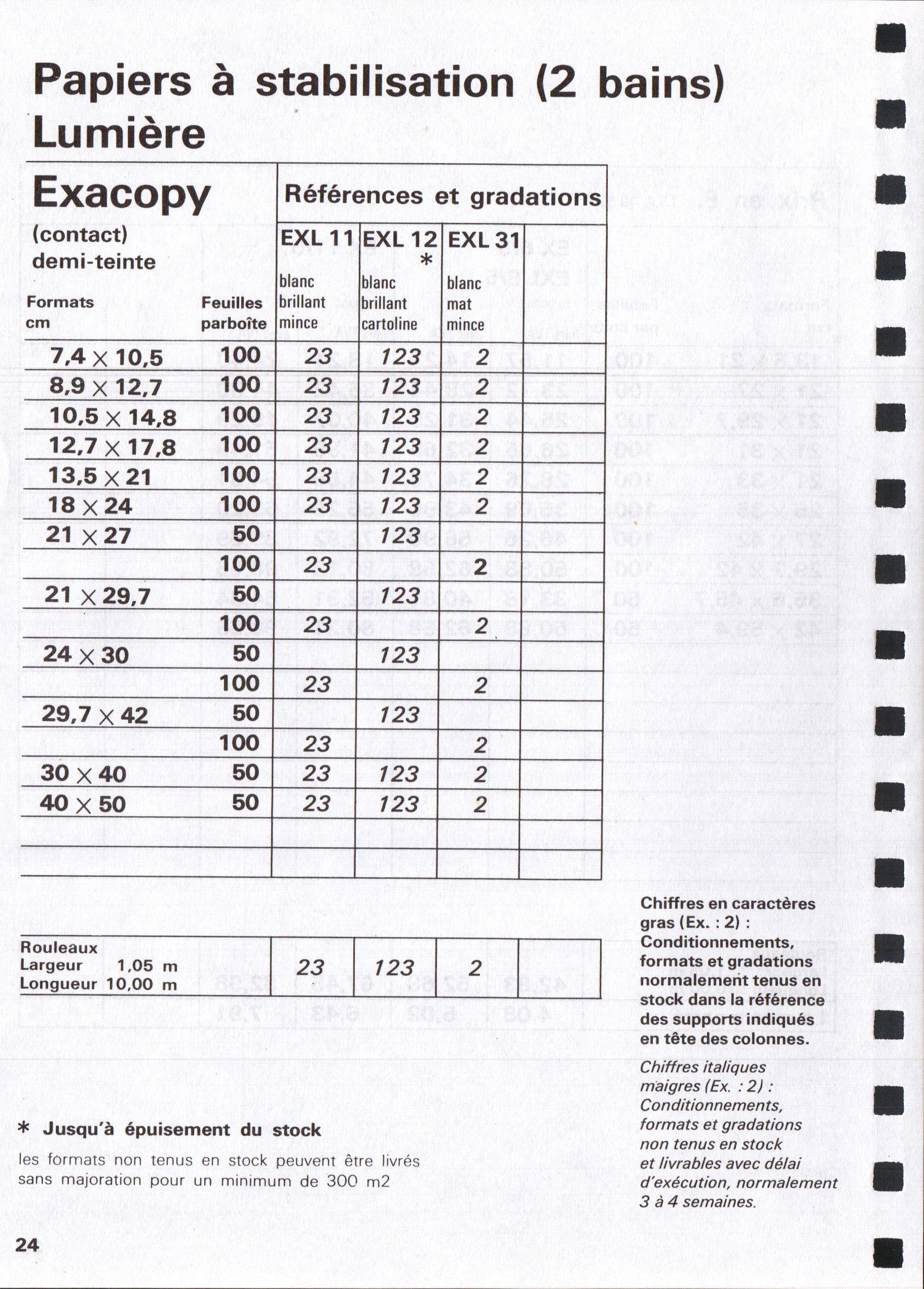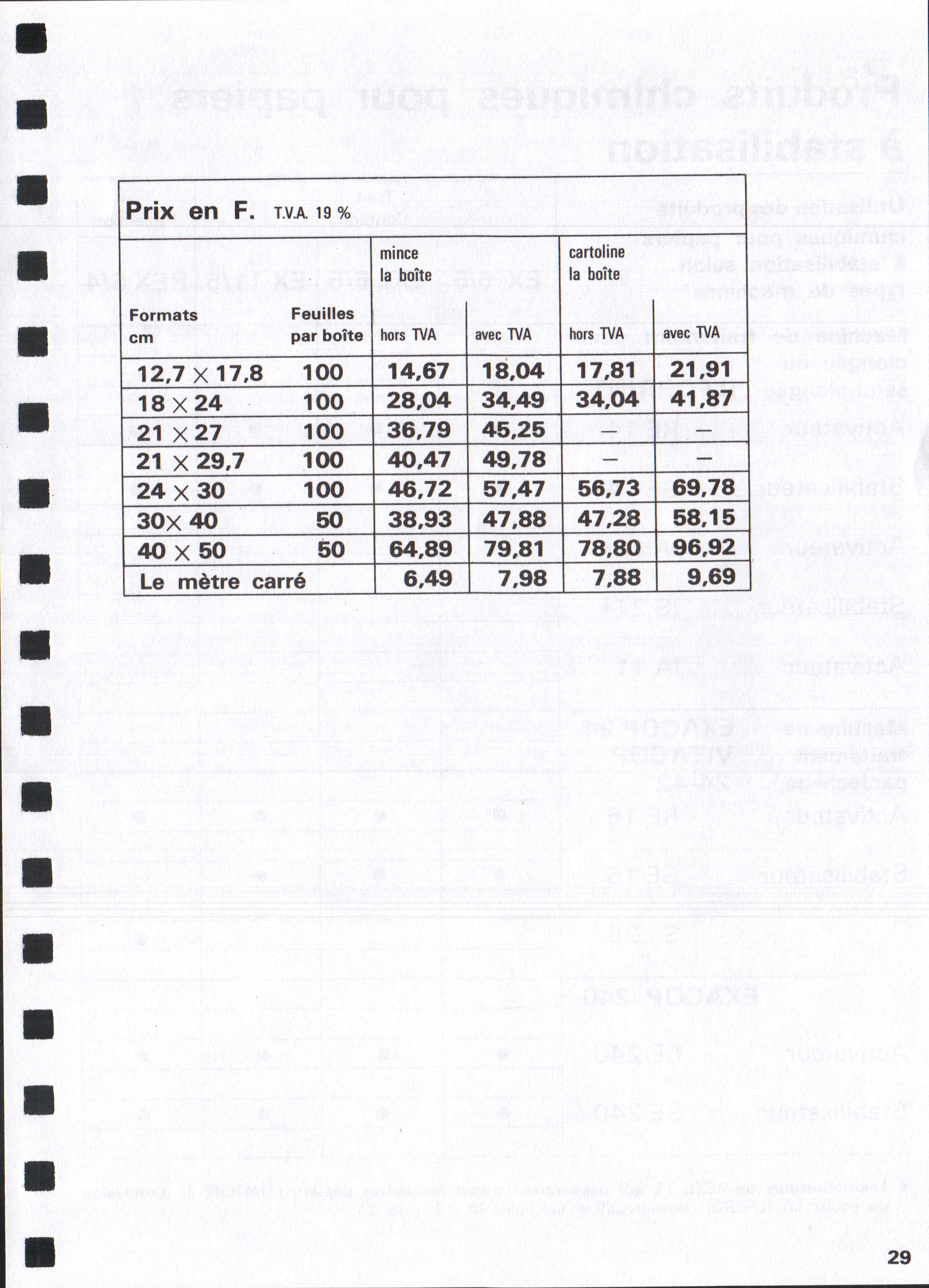 - Tarif Exacopy Vitacopy - janvier 1963