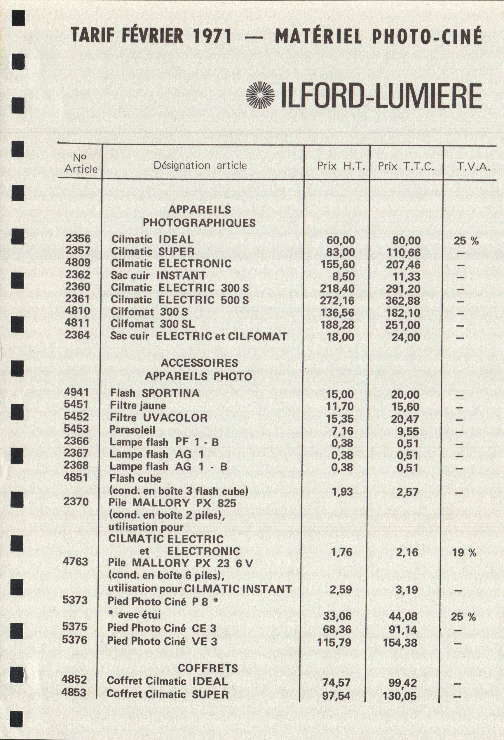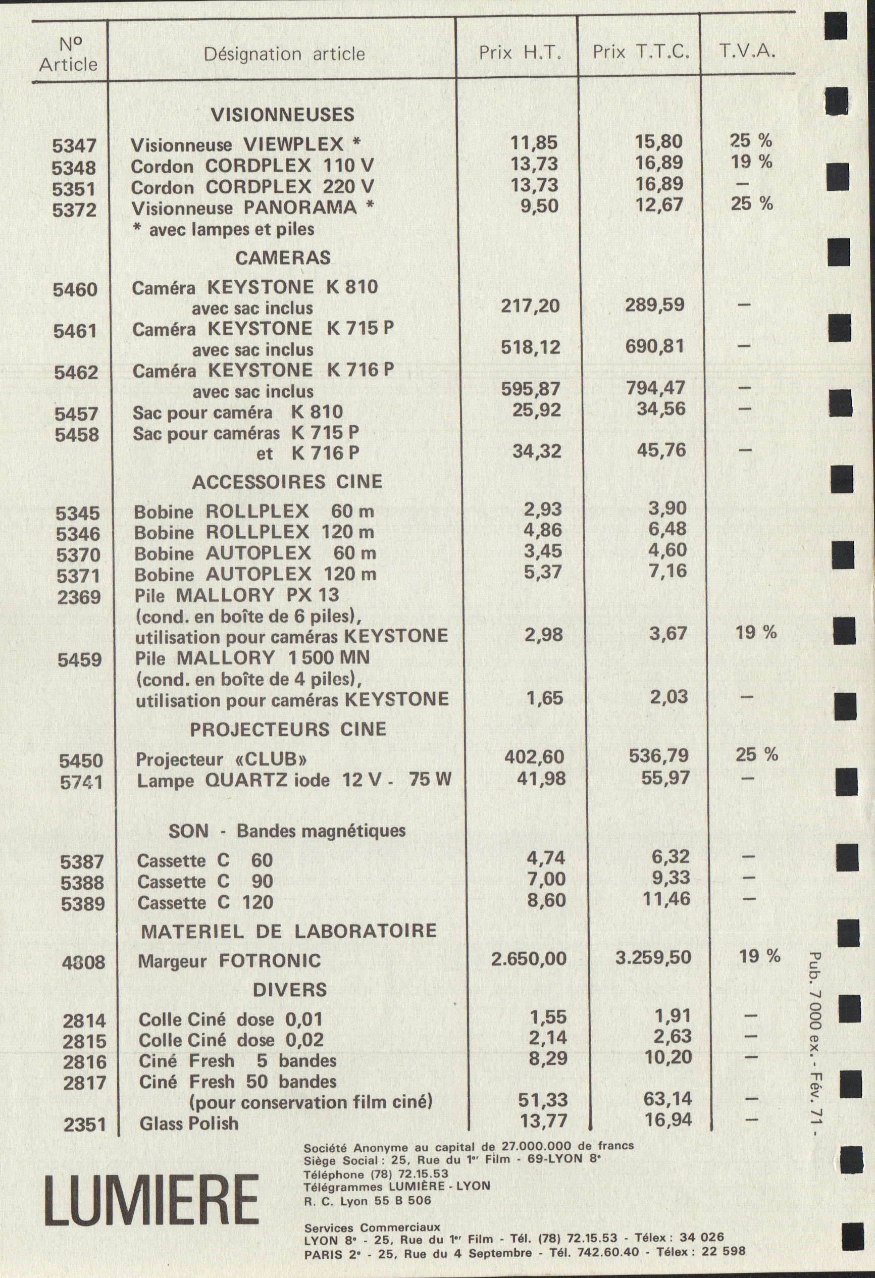 - Tarif - février 1971