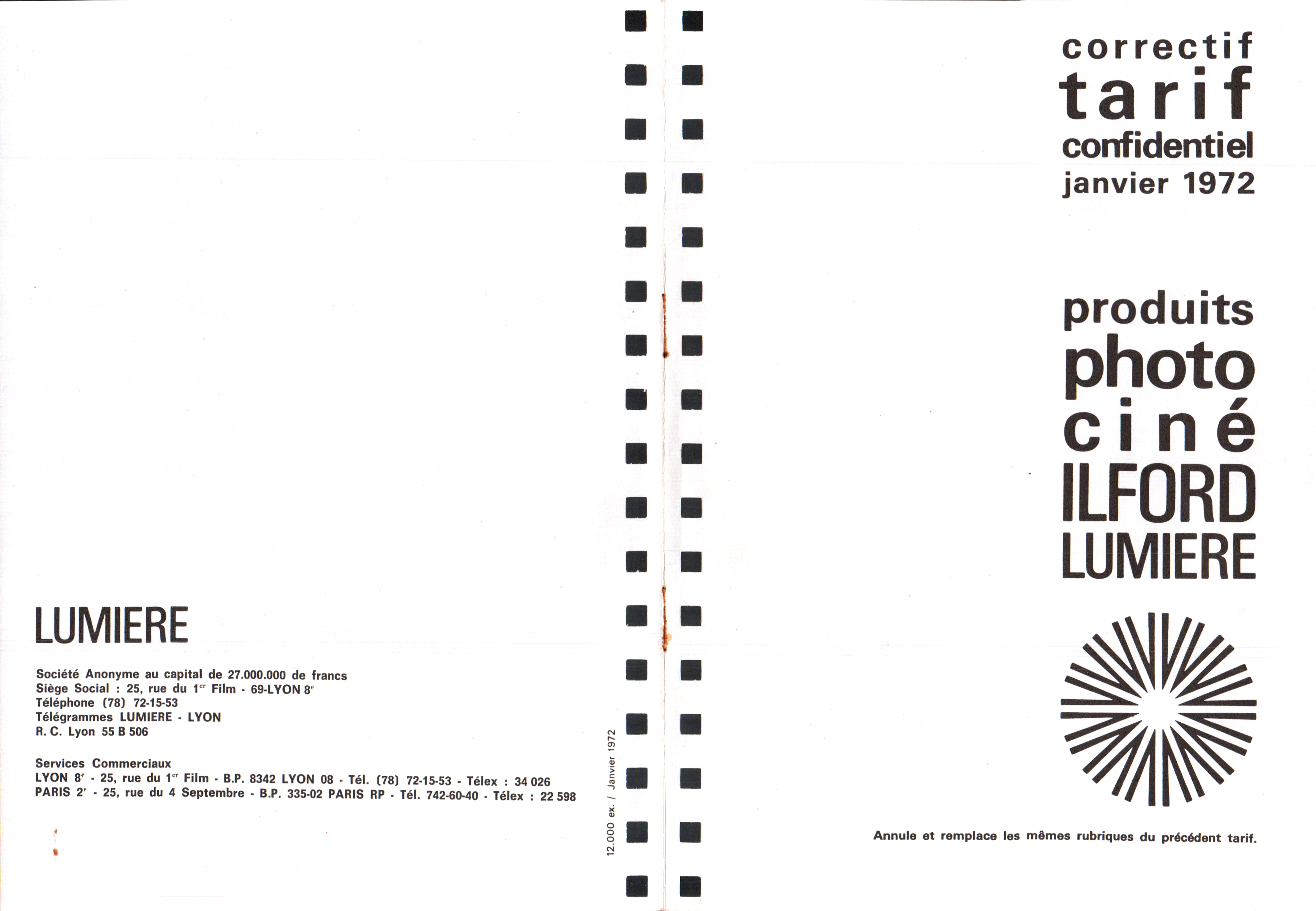 Tarif - janvier 1971