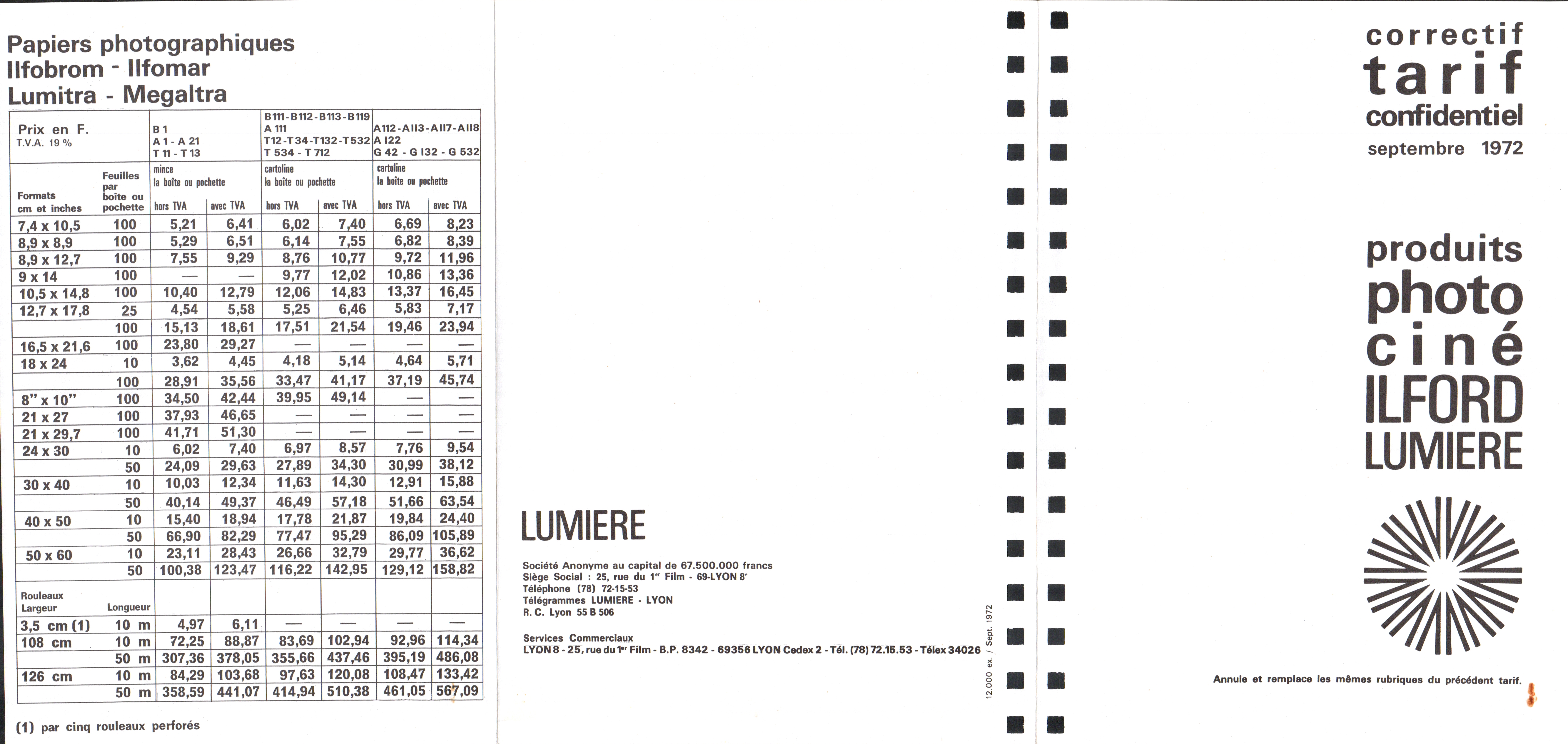 - Tarif - septembre 1972