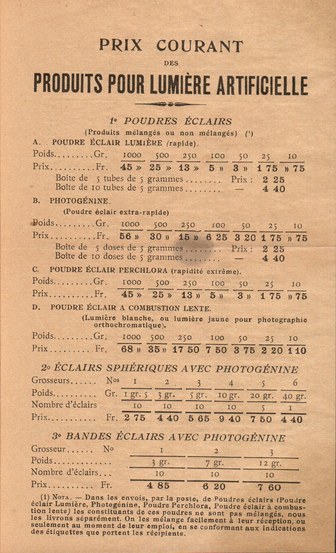 Prix courant Plaques Papiers Pellicules Produits - 1903