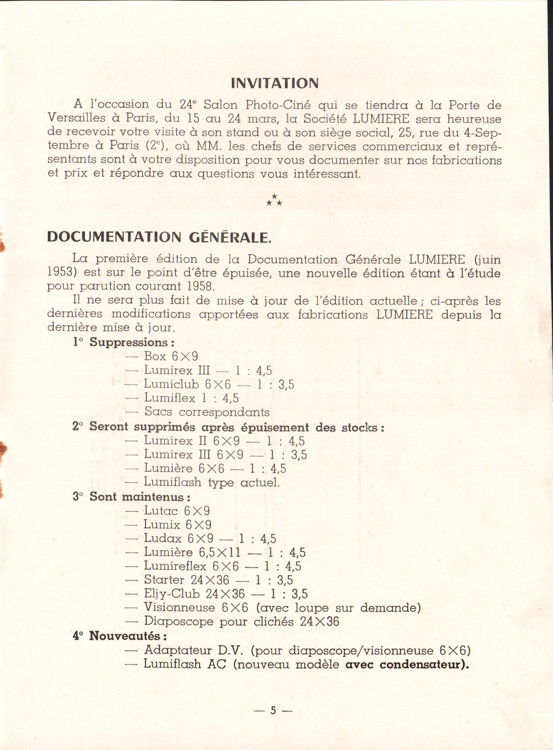 En mars 1958, la revue Lumière Informations est relancée sous un autre format.
